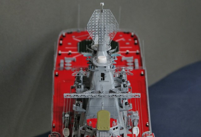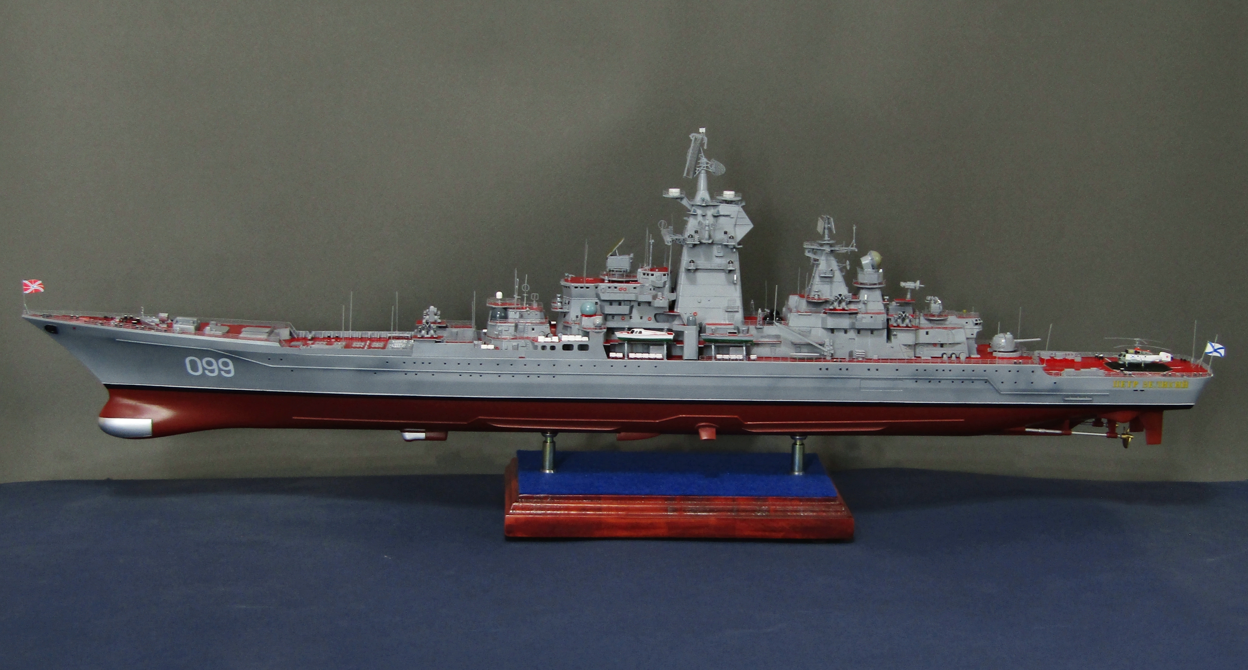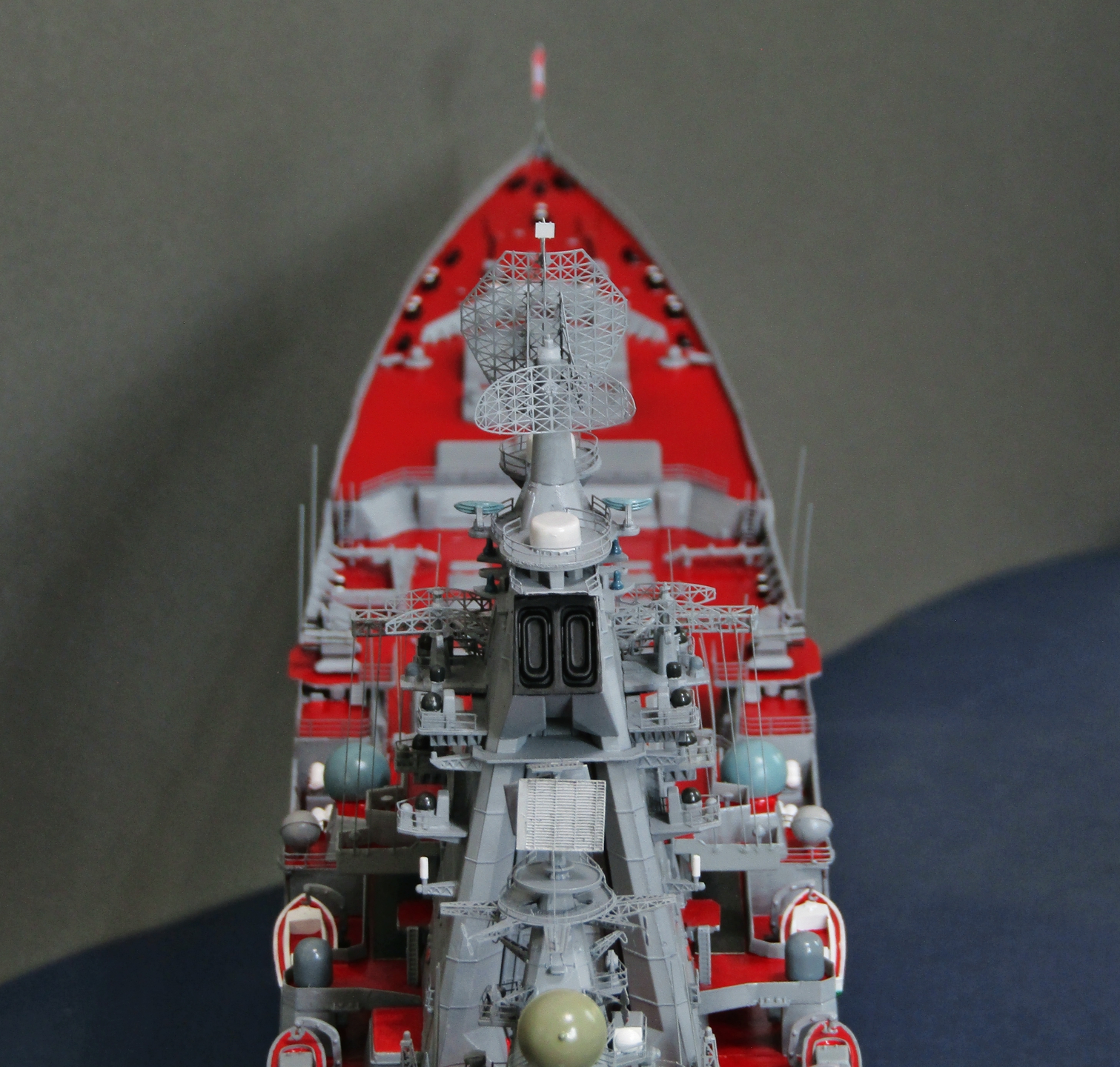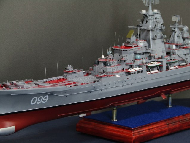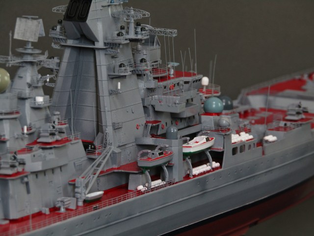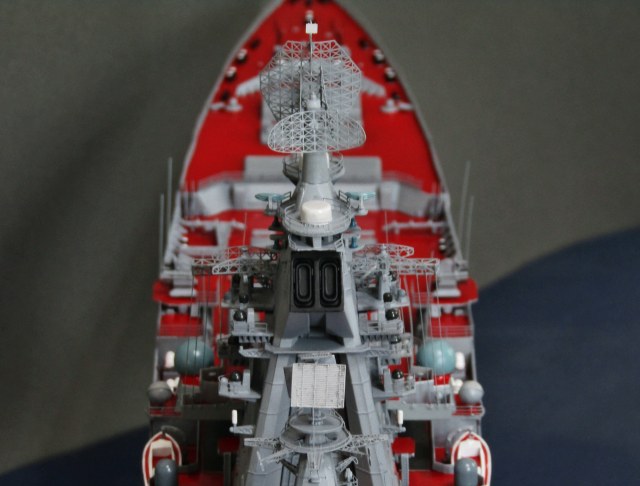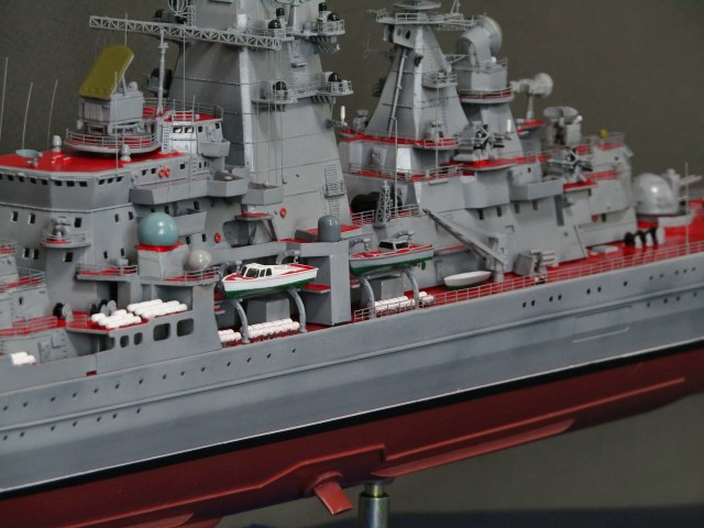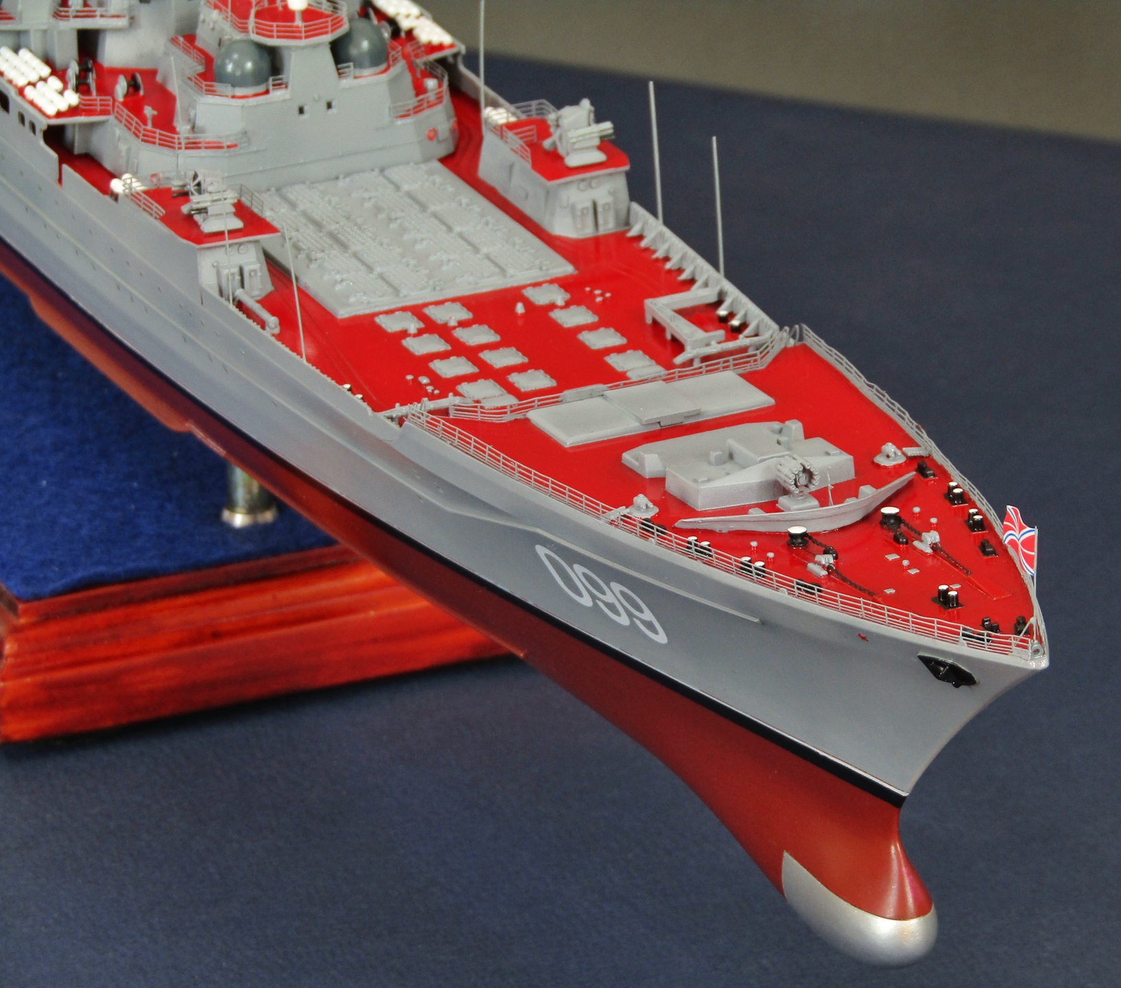 Андрей, палубу спасать надо срочно, а именно фильтром глушить малиновый цвет, борта тоже у же сказано, то что не видно в натуральную величину то видно на модели, кранцы матовый цвет а не глянец должен быть, есть не большая небрежность при сборке, а именно не проклеянные стыки, газоотбойники на РБУ установлены не совсем верно, дальше не буду продолжать, указал на то что на мой взгляд можно исправить, а общее впечатление для первого флотского опыта, модель, довольно таки хорошо выполнена, палуба своей ярко-малиновостью портит все впечатление, мне в общем модель нравится, Андрей желаю в дальнейшем успехов в нашем не легком творчестве и флот не оставляйте, в следуещей модели ждем стройку, которая пойдет всем на пользу, с уважением Павел.