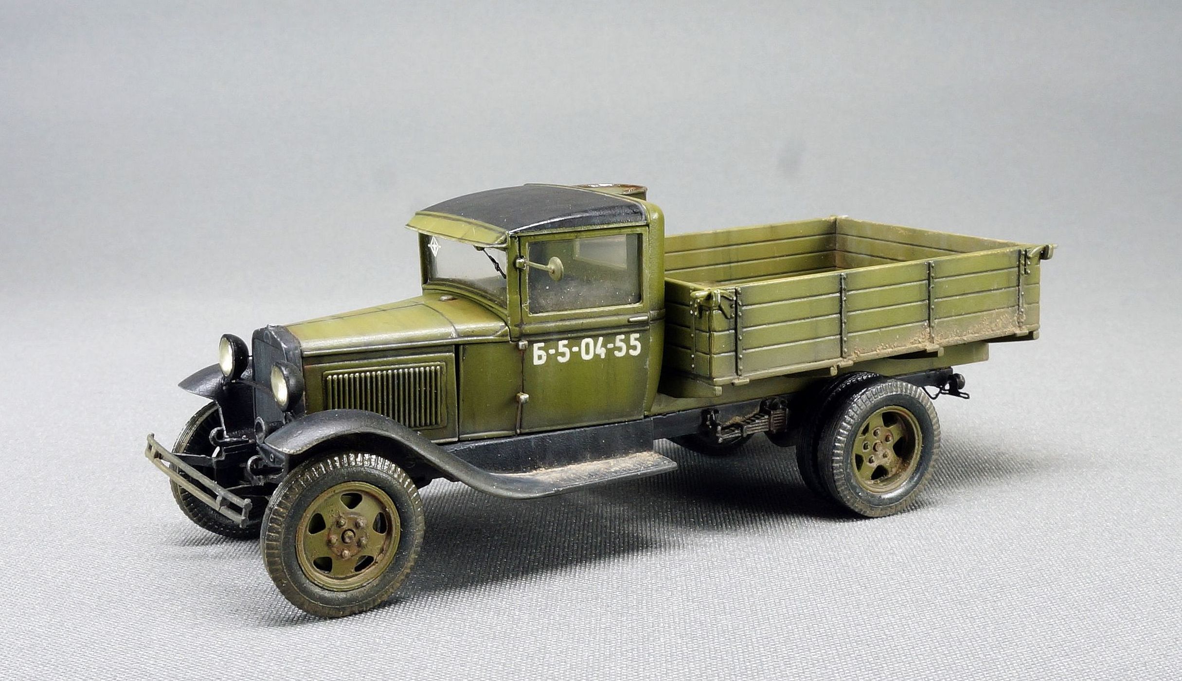 Красивая получилась полуторка! Из придиризмов - избыточная толщина бортов кузова, блеск на колесах (особенно запаска), задний фонарь сверху был синий, снизу - красный. Для 48-го работа отличная, сперва думал 35-й. С уважением.