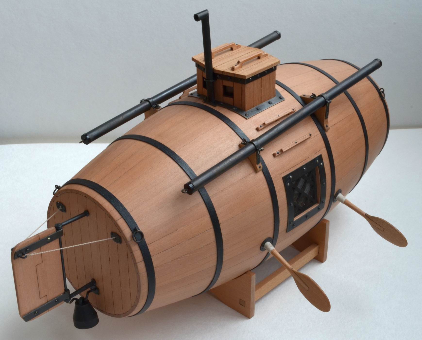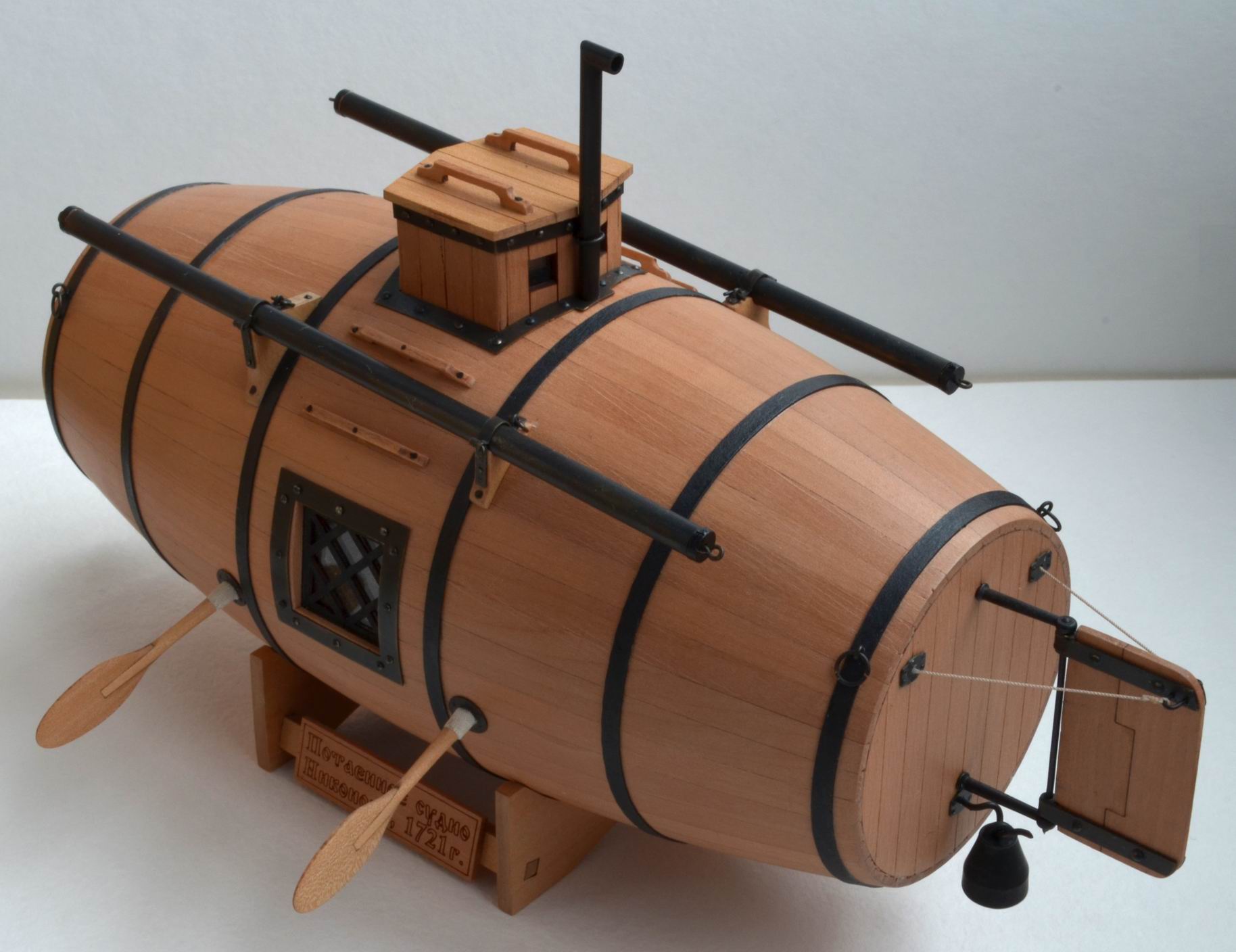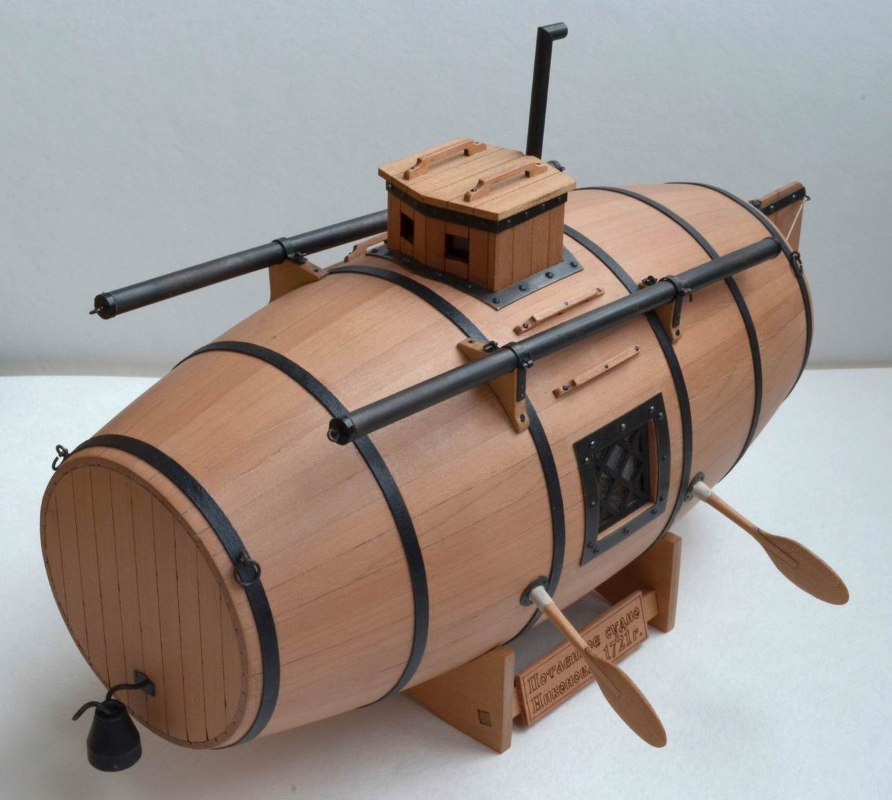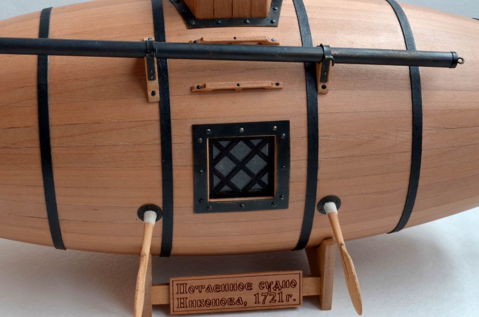 Разрешите представить модель первой русской подводной лодки "Потаенное судно Ефима Никонова". Модель выпускается недавно (вышла в продажу под Новый 2020 год). Я собирался сделать её в рождественские каникулы, но не случилось. "Вовремя подоспевшая" самоизоляция, объявленная нашей властью, высвободила несколько часов на модели, и "бочка" была закончена ко Дню Победы.