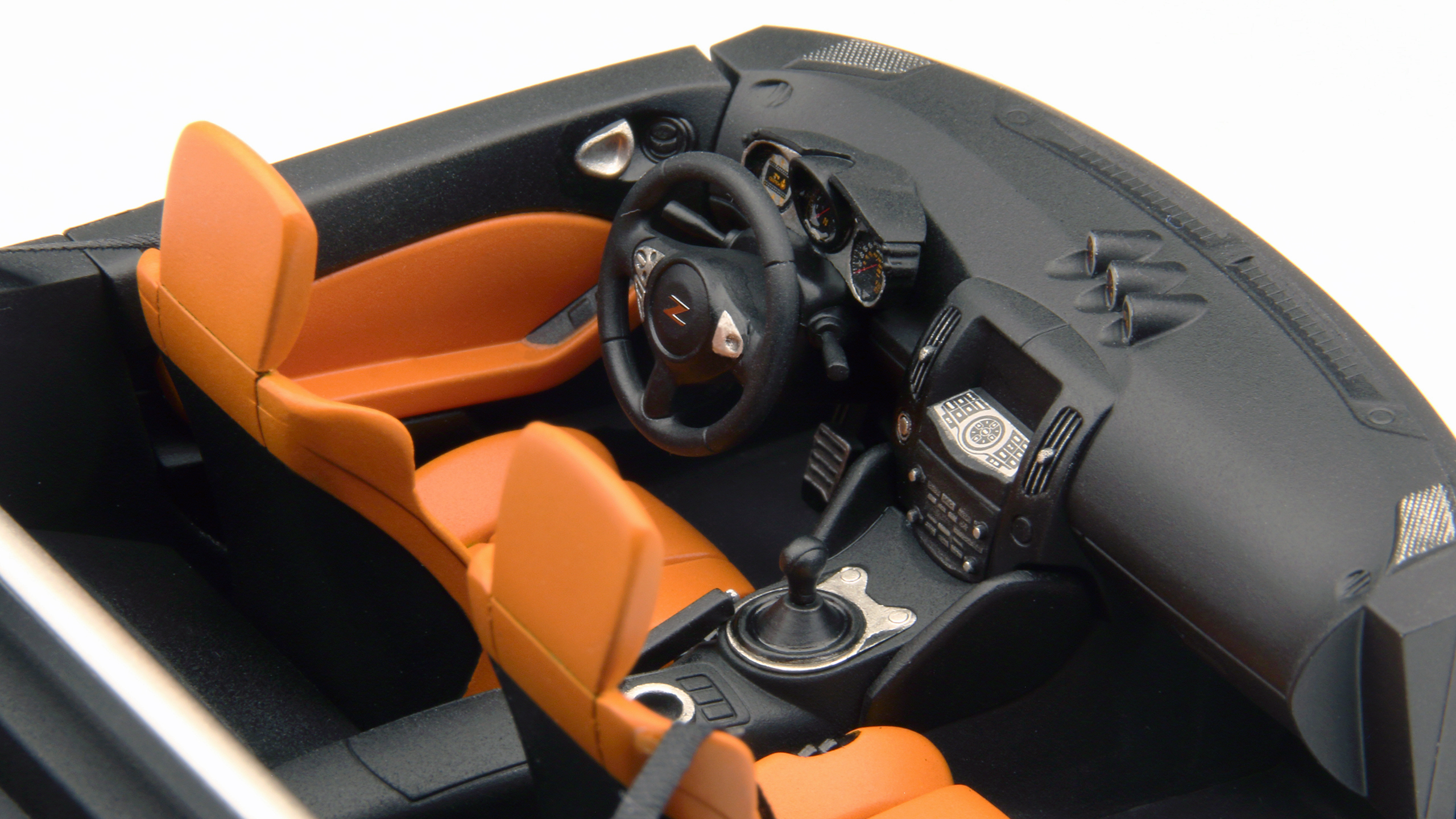 Представляю спортивный автомобиль, выпускаемый компанией Nissan Motors серии Z, известной под именем Fairlady Z в масштабе 1:24 от компании Tamiya. Автомобиль оснащён двигателем V6 серии VQ объёмом 3,7 литров с системой изменения фаз газораспределения, системой изменения высоты подъёма клапанов и ограничителем числа максимальных оборотов на отметке 7500 об./мин, который выдаёт 336 л.с. при 7000 об./мин и 366 Н·м крутящего момента (при 5200 об./мин). Поставляется с двумя вариантами коробки передач: 7-ступенчатая автоматическая и 6-ступенчатая механическая. 100 км/ч автомобиль набирает за 5,3 с.