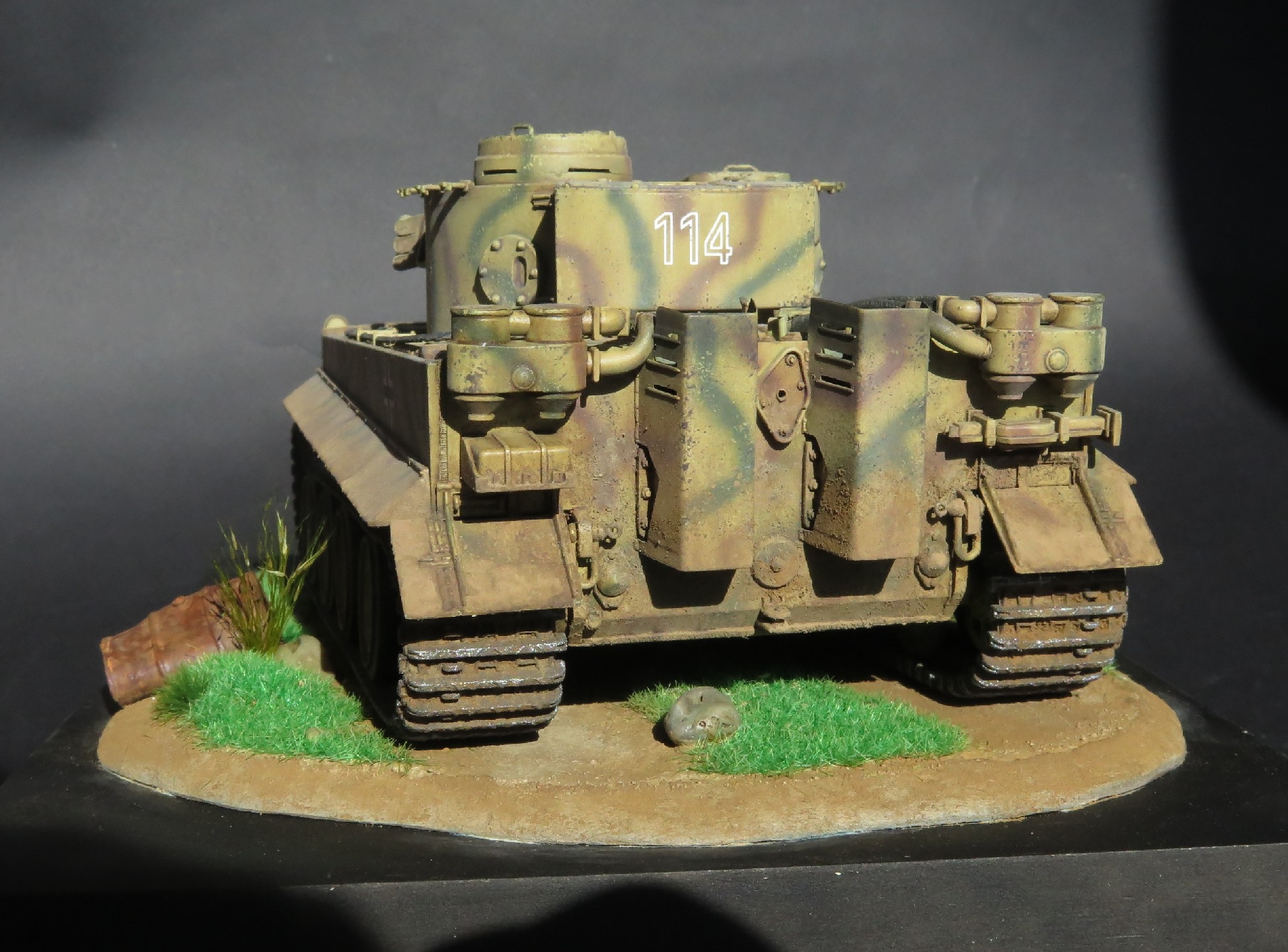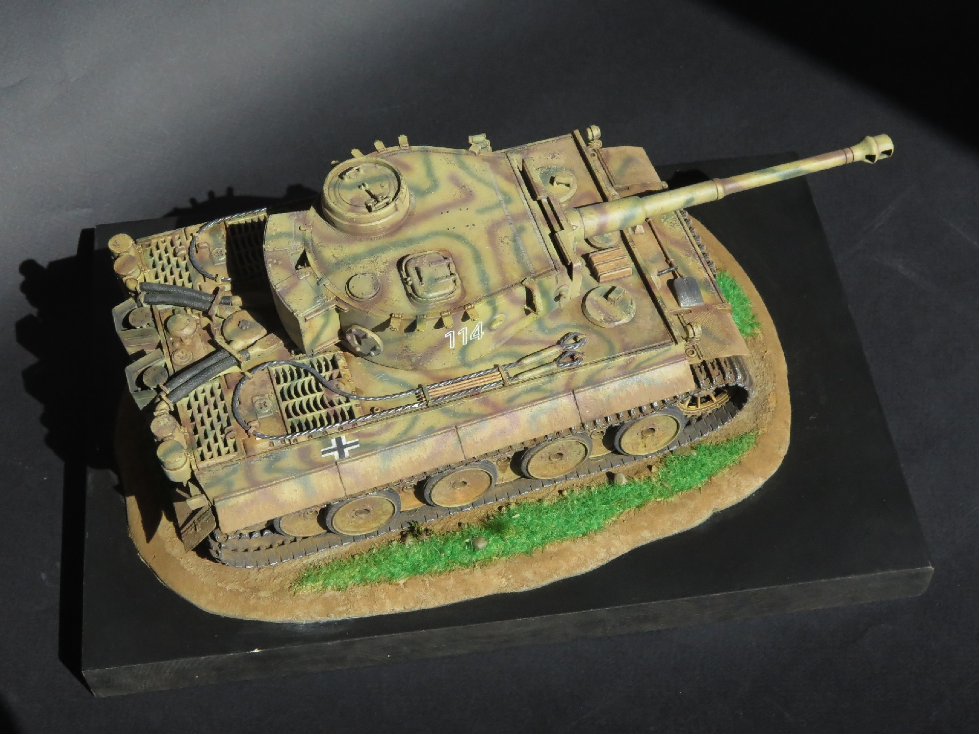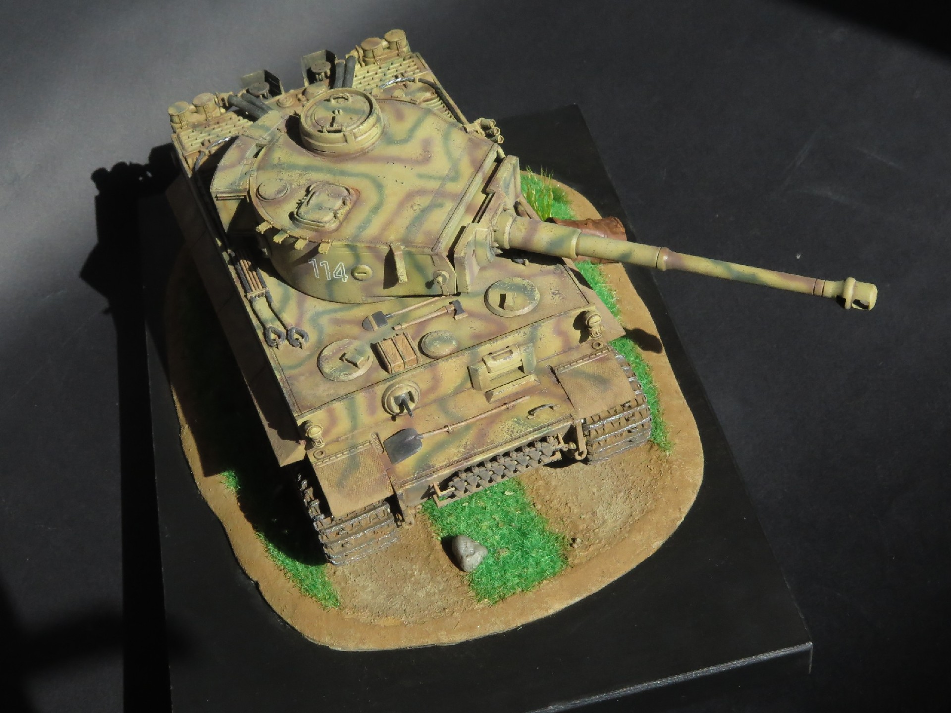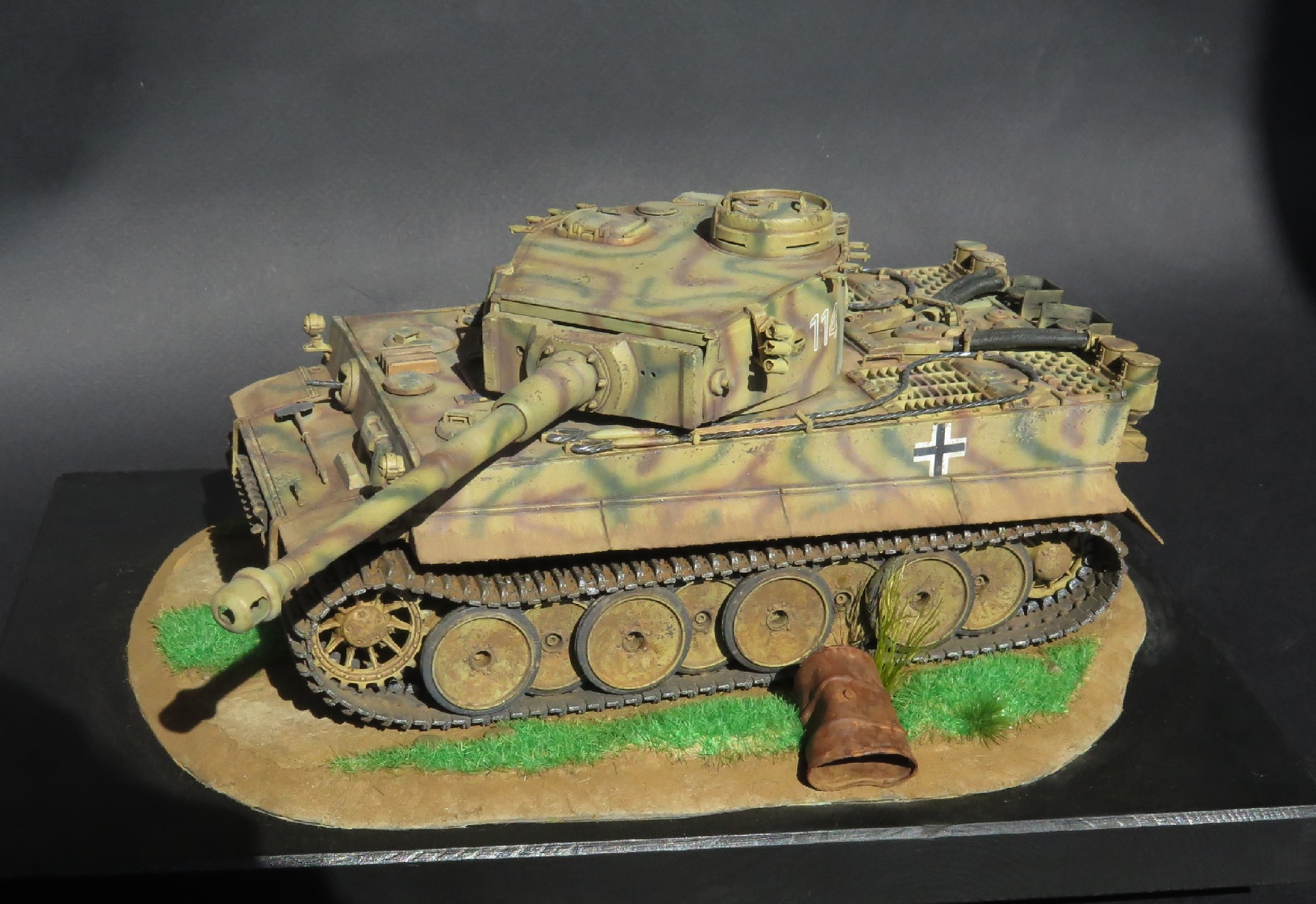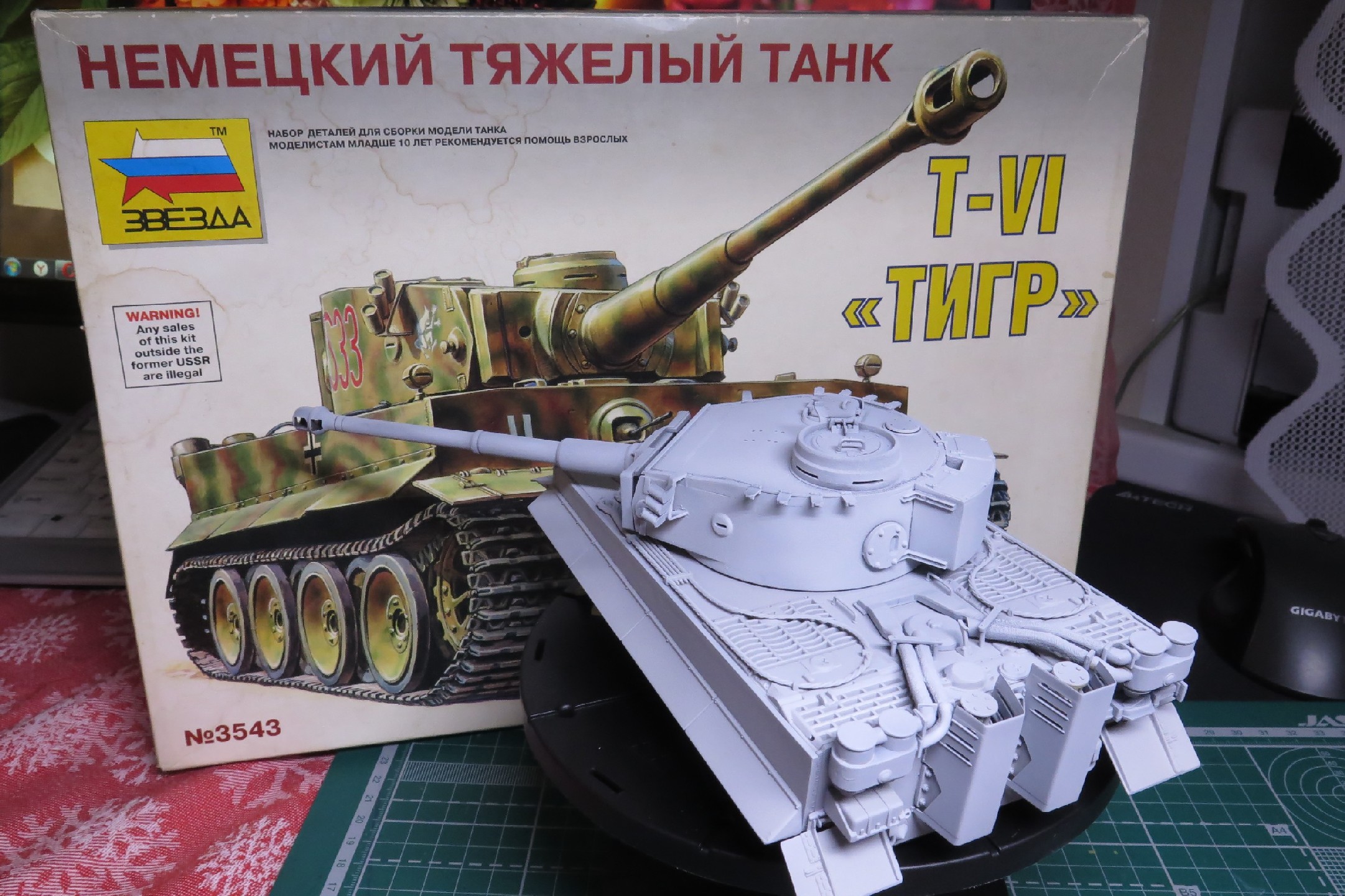 Один добрый человек отдал мне несколько моделей, в основном начатые. Сегодня покажу вам древнюю модель от Звезды. Немецкий тяжелый танк Т-VI "Тигр", артикул 3543. Достался мне в начатом виде, немного некомплектный, что-то было склеено, башня даже загрунтована. Не стал сильно улучшать, но и отправить в ведро было жалко. Решил использовать как кошку для тренировки в покраске. Поэтому матчасть в танке не ищите. ) Нанес неисторические камуфляжные линии без масок, от руки. Сперва не понравилось, но после визеринга камуфляж стал смотреться намного лучше. Заменил гусеницы на драгоновский розовый винил (DS). Лежит же у меня Драгон, ждет своего часа года, и в нем наборные гусеницы и DS на выбор. Грунтовка Kudo и краска держится на этом виниле плохо, чуть тронешь - слетает, приходилось подкрашивать. Зря не заменил тросы, но такова была цель - не вкладываться в сборку. Окраска намешанной Тамией, что-то Пацификом. Визеринг жидкостями от Ammo Mig и АК. Все время боюсь испортить модель грязью, но тут действовал более решительно, хотя кому-то может показаться что грязи и пыли все равно мало.