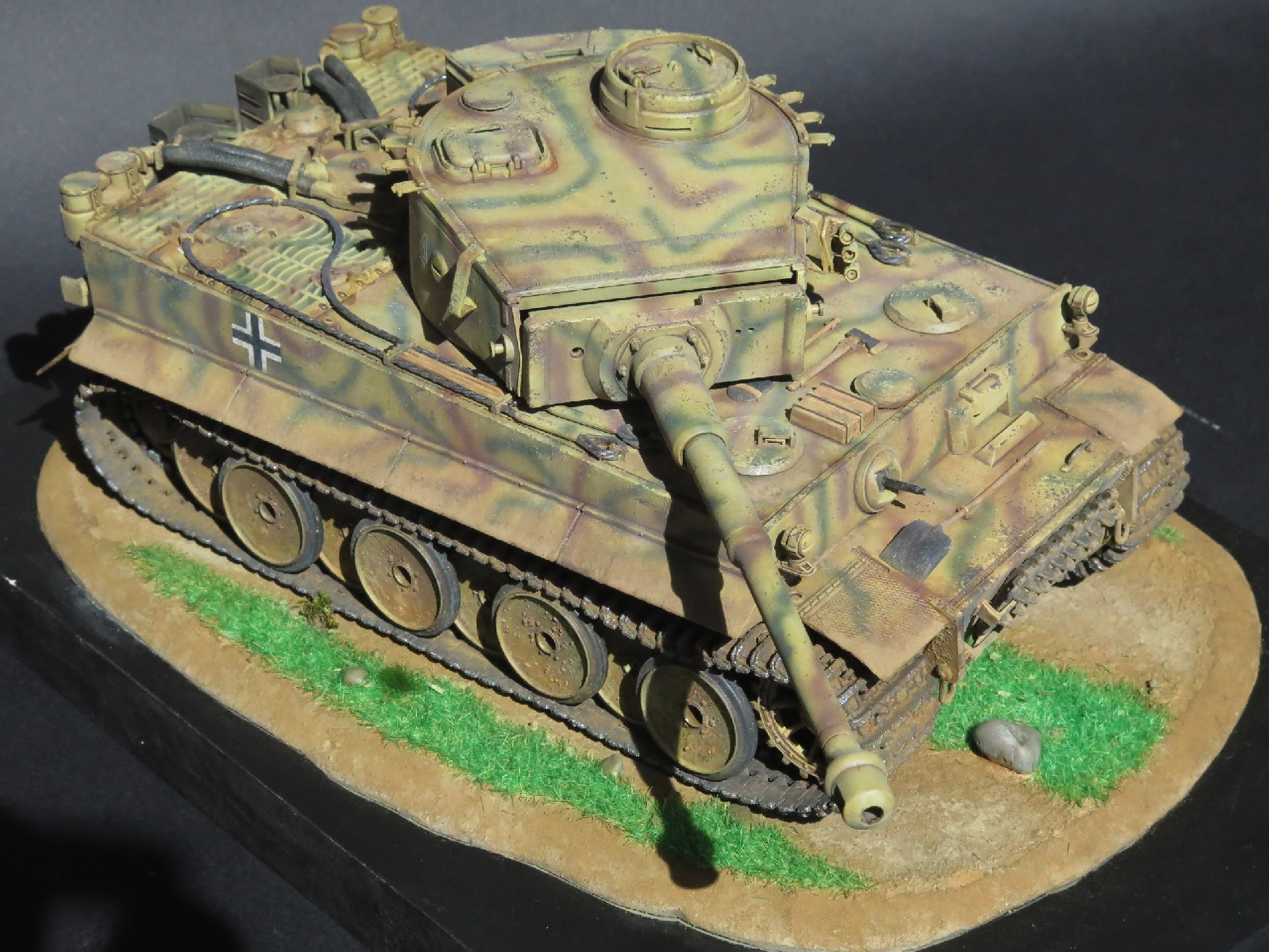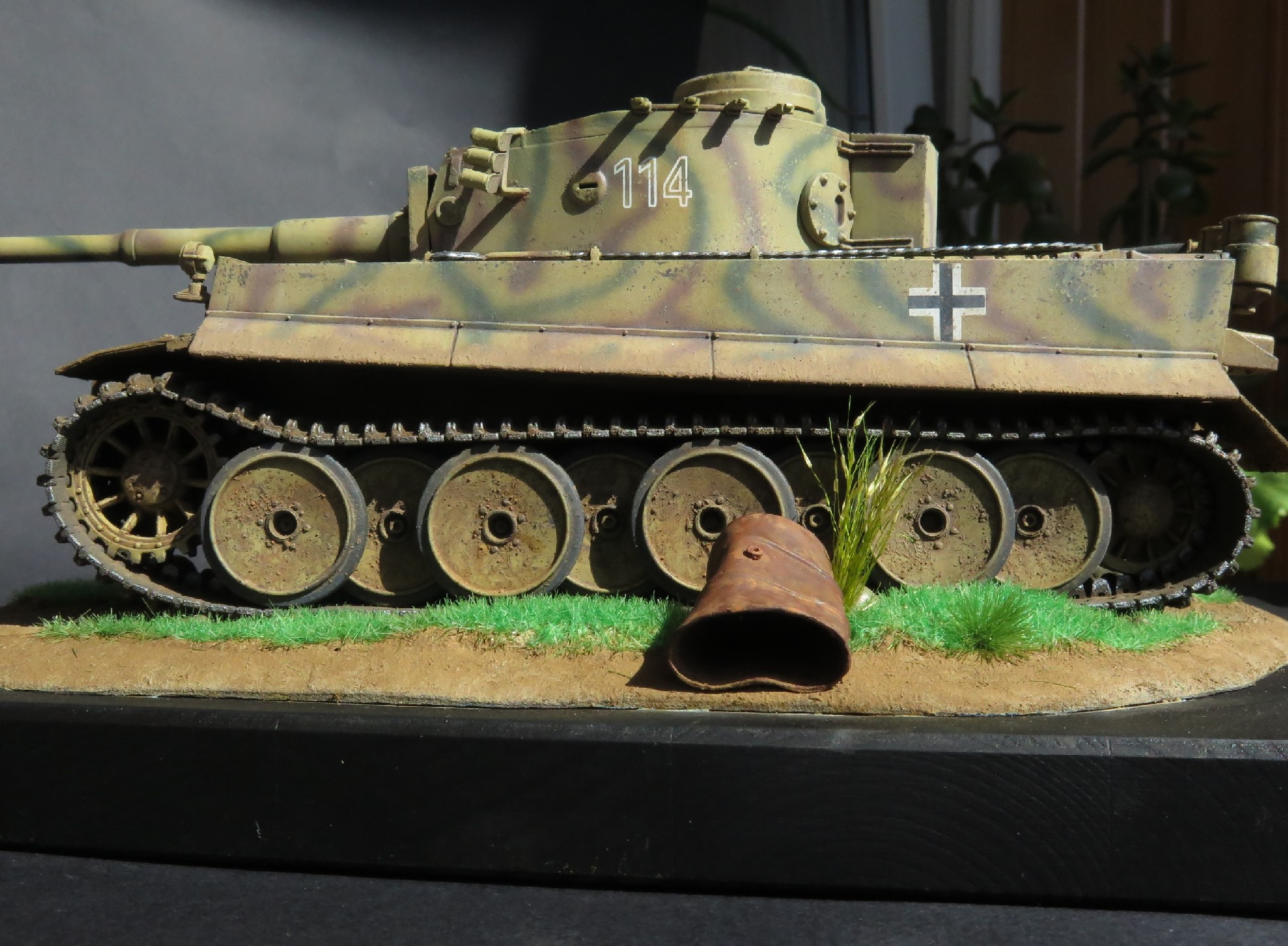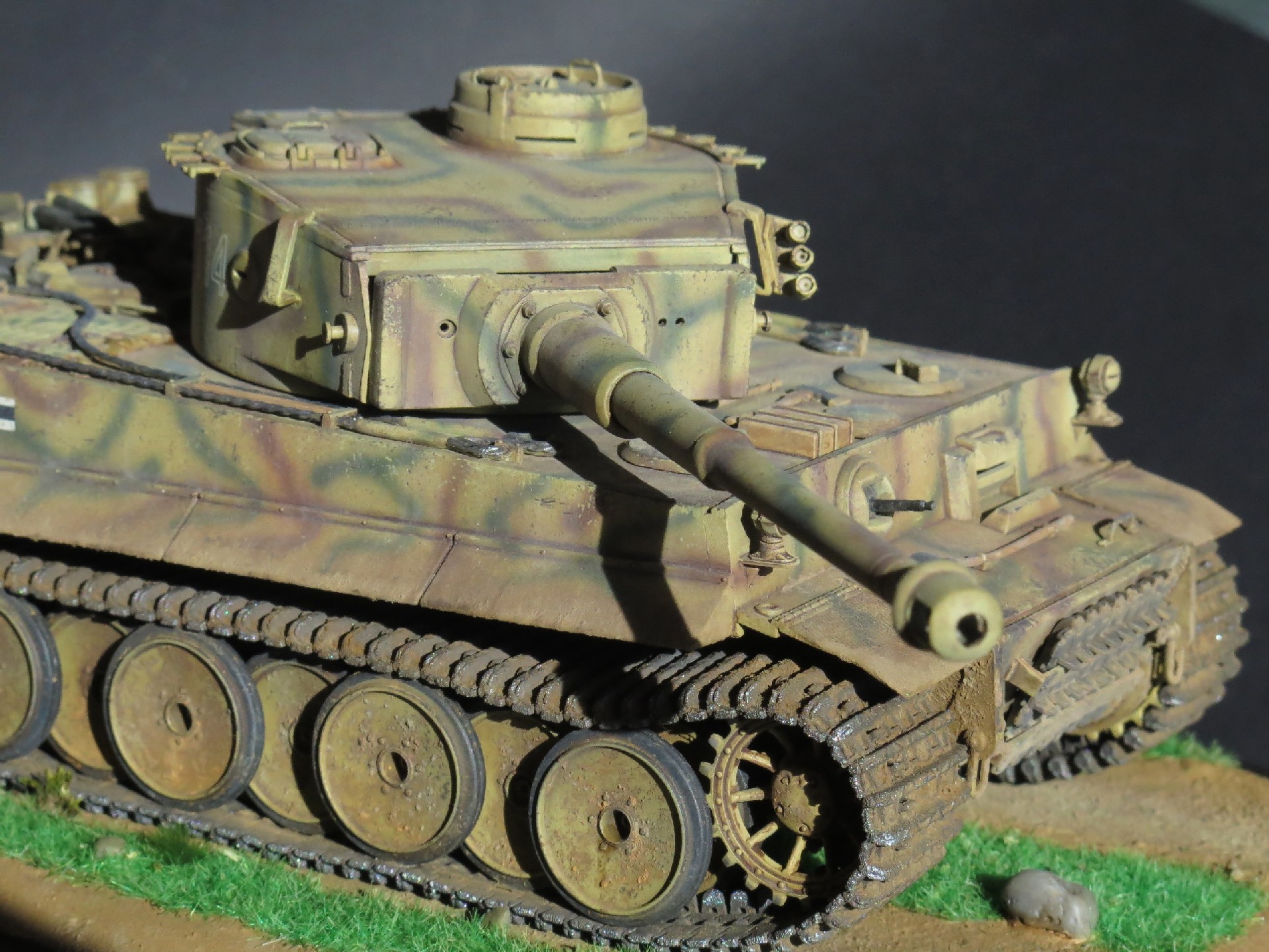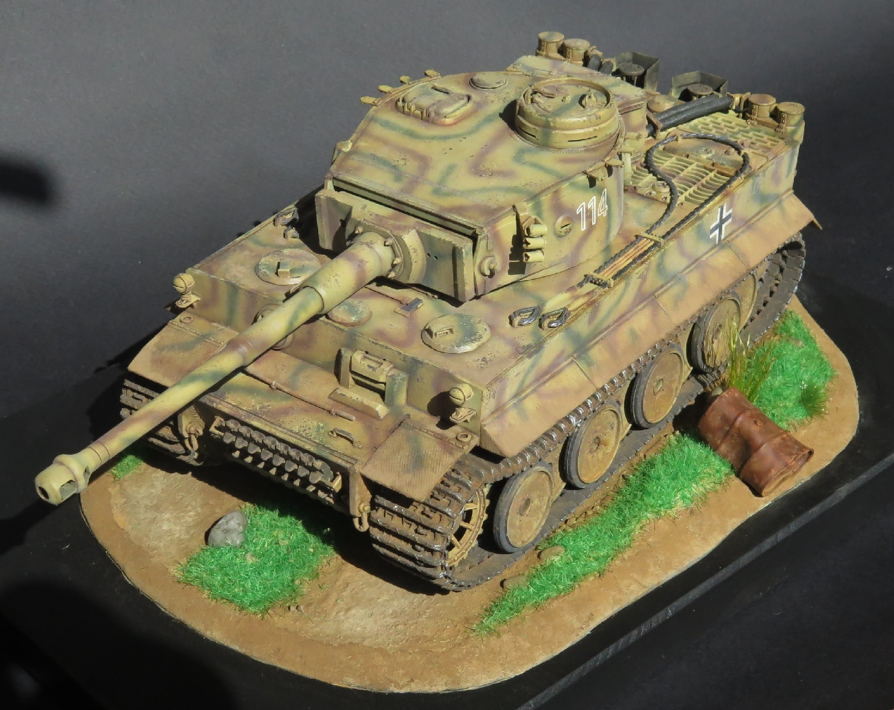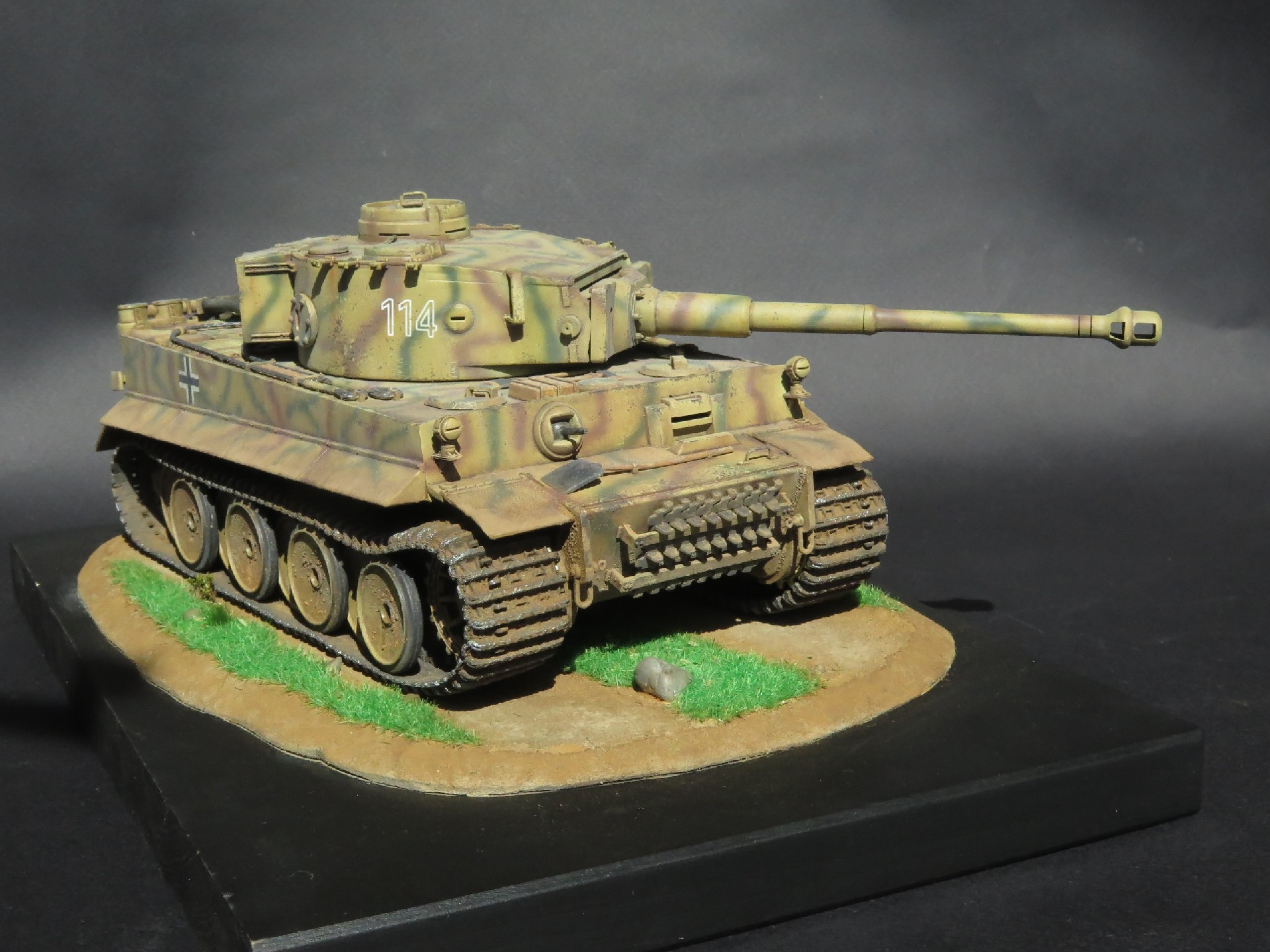 Один добрый человек отдал мне несколько моделей, в основном начатые. Сегодня покажу вам древнюю модель от Звезды. Немецкий тяжелый танк Т-VI "Тигр", артикул 3543. Достался мне в начатом виде, немного некомплектный, что-то было склеено, башня даже загрунтована. Не стал сильно улучшать, но и отправить в ведро было жалко. Решил использовать как кошку для тренировки в покраске. Поэтому матчасть в танке не ищите. ) Нанес неисторические камуфляжные линии без масок, от руки. Сперва не понравилось, но после визеринга камуфляж стал смотреться намного лучше. Заменил гусеницы на драгоновский розовый винил (DS). Лежит же у меня Драгон, ждет своего часа года, и в нем наборные гусеницы и DS на выбор. Грунтовка Kudo и краска держится на этом виниле плохо, чуть тронешь - слетает, приходилось подкрашивать. Зря не заменил тросы, но такова была цель - не вкладываться в сборку. Окраска намешанной Тамией, что-то Пацификом. Визеринг жидкостями от Ammo Mig и АК. Все время боюсь испортить модель грязью, но тут действовал более решительно, хотя кому-то может показаться что грязи и пыли все равно мало.