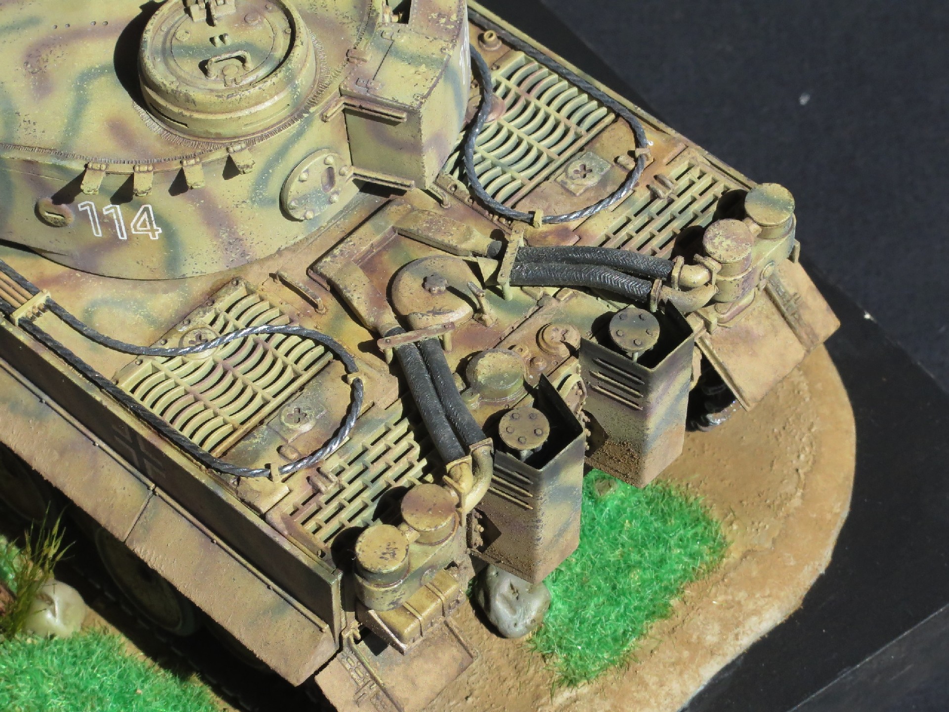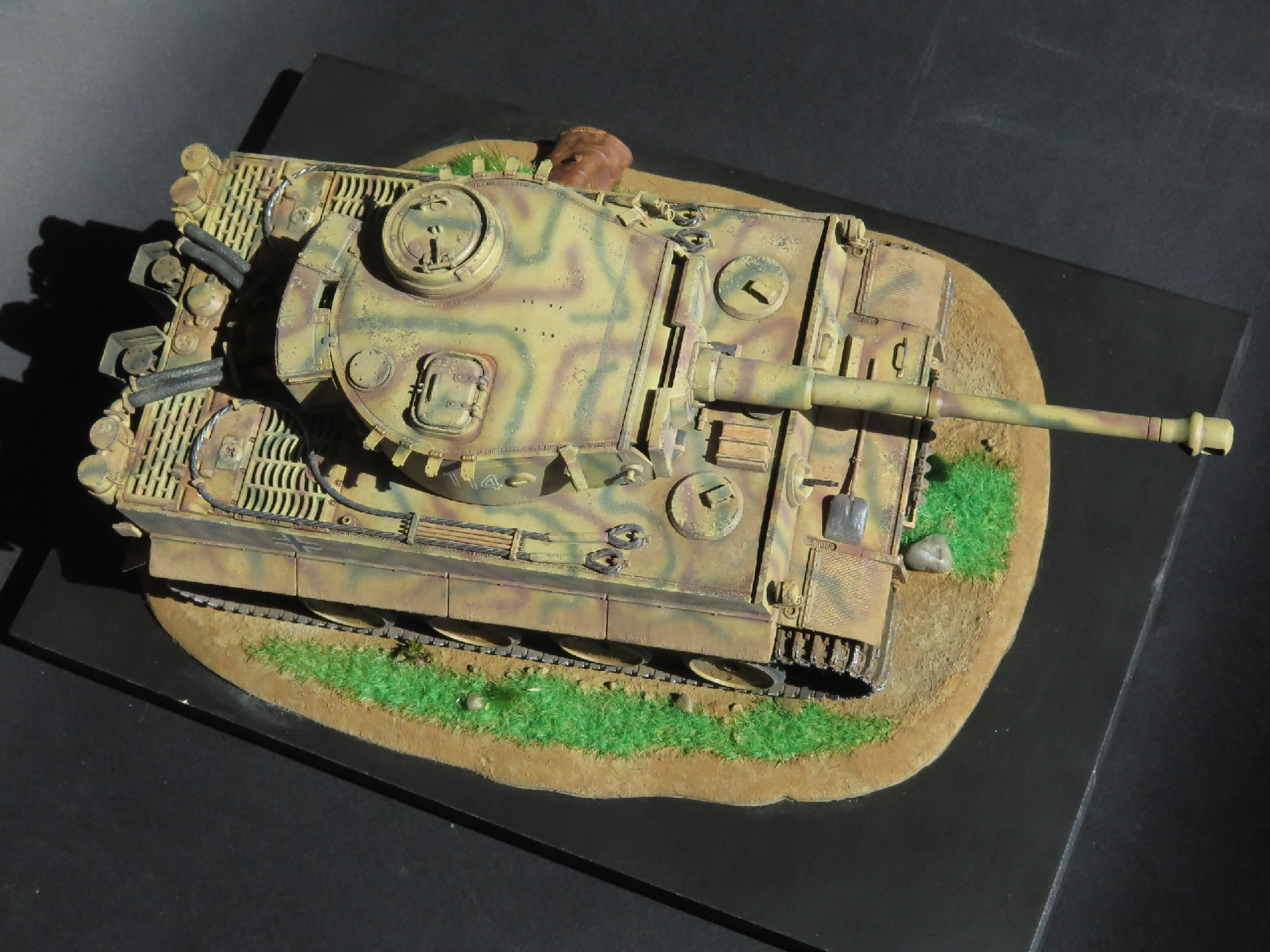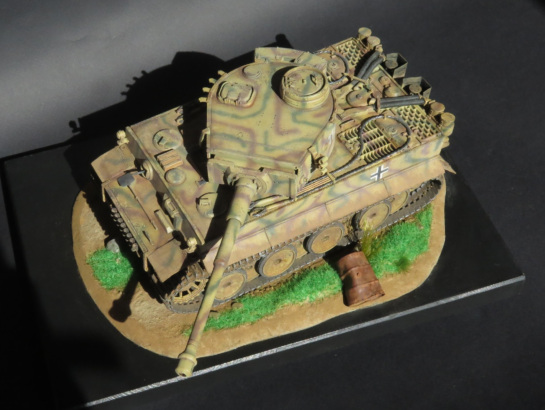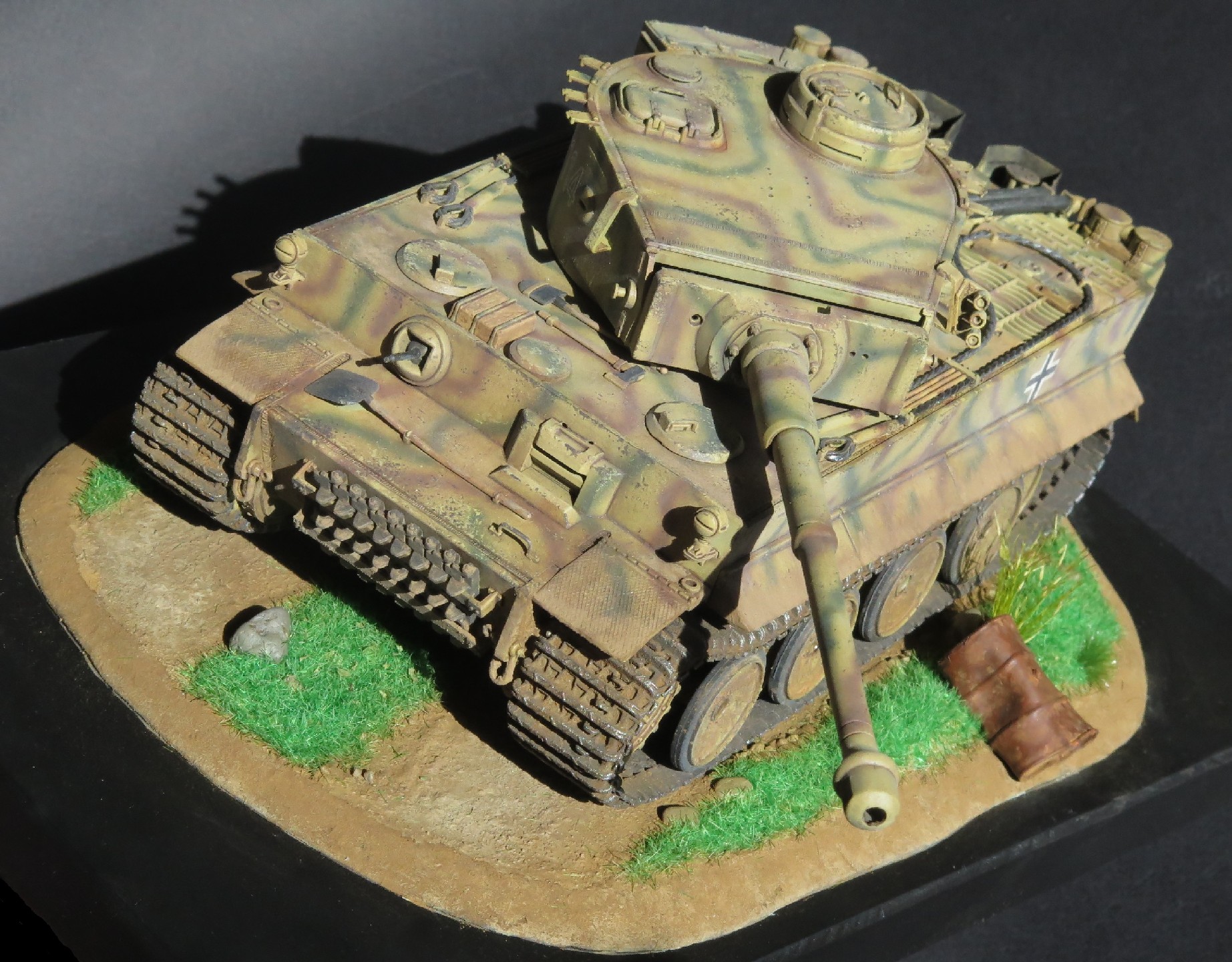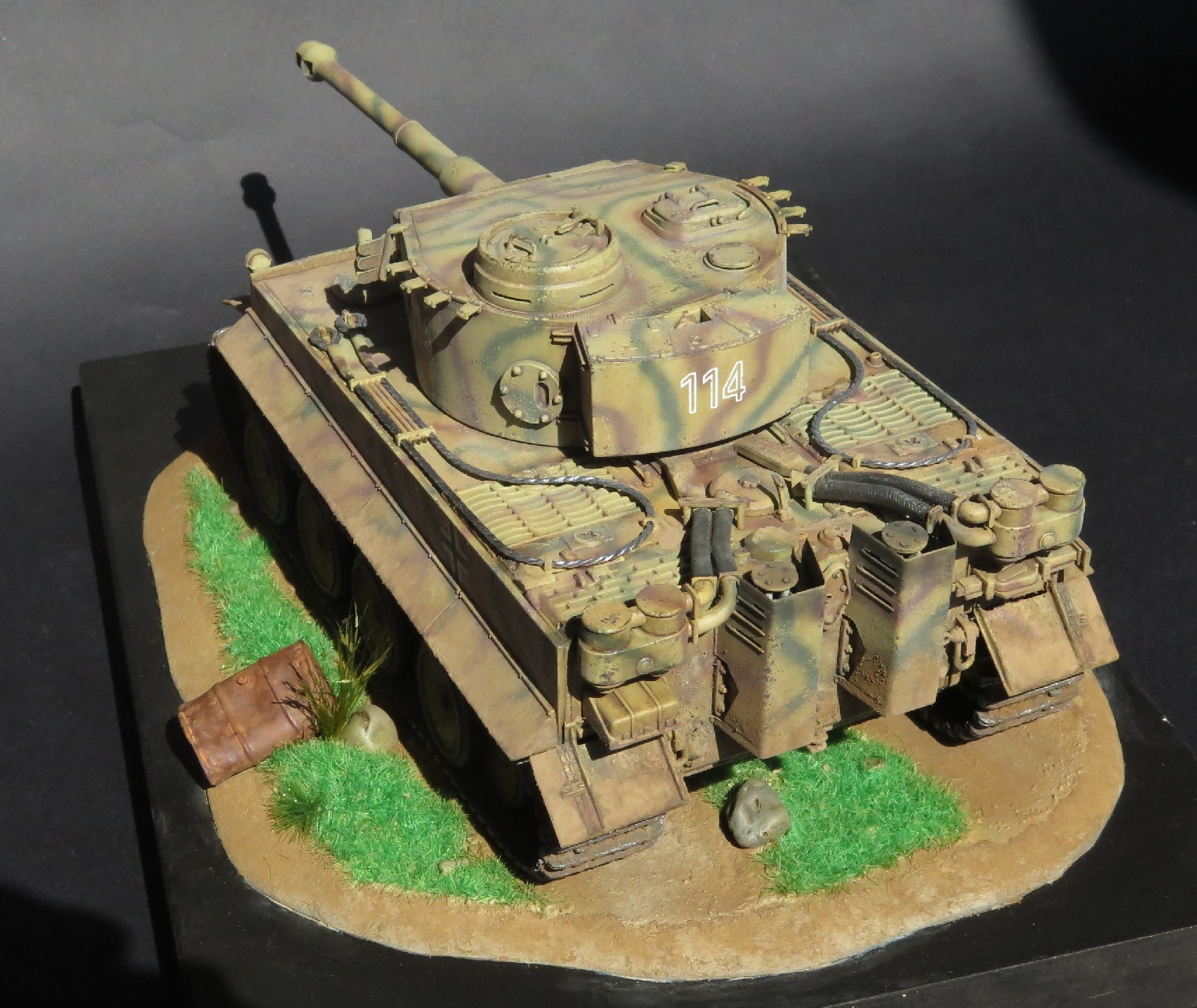 Один добрый человек отдал мне несколько моделей, в основном начатые. Сегодня покажу вам древнюю модель от Звезды. Немецкий тяжелый танк Т-VI "Тигр", артикул 3543. Достался мне в начатом виде, немного некомплектный, что-то было склеено, башня даже загрунтована. Не стал сильно улучшать, но и отправить в ведро было жалко. Решил использовать как кошку для тренировки в покраске. Поэтому матчасть в танке не ищите. ) Нанес неисторические камуфляжные линии без масок, от руки. Сперва не понравилось, но после визеринга камуфляж стал смотреться намного лучше. Заменил гусеницы на драгоновский розовый винил (DS). Лежит же у меня Драгон, ждет своего часа года, и в нем наборные гусеницы и DS на выбор. Грунтовка Kudo и краска держится на этом виниле плохо, чуть тронешь - слетает, приходилось подкрашивать. Зря не заменил тросы, но такова была цель - не вкладываться в сборку. Окраска намешанной Тамией, что-то Пацификом. Визеринг жидкостями от Ammo Mig и АК. Все время боюсь испортить модель грязью, но тут действовал более решительно, хотя кому-то может показаться что грязи и пыли все равно мало.