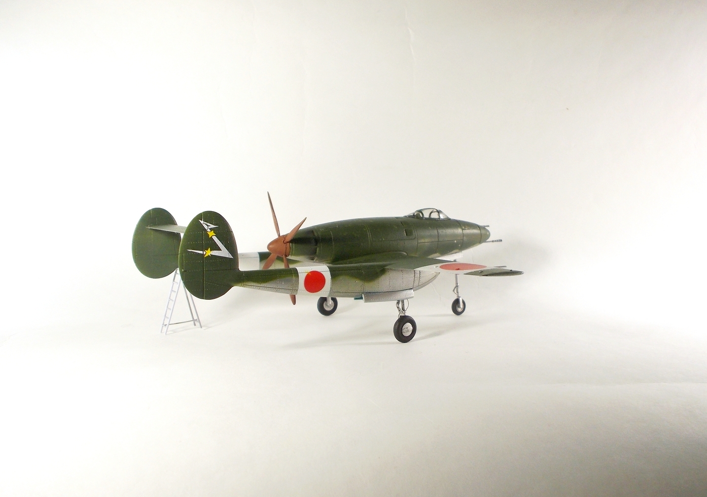 Непритязательная стройка . Опробовал кое-какие методики - клёпка там , солевой метод, панельный эффект и т. д. Удалось не всё, зато получил полезный опыт . Немного модифицировал модель - вставил компрессор , но не более. Окрашено хамброловскими металликами и Мr.Color 129 (основной камуфляжный цвет). Декали не очень понравились - немного дубоваты , поэтому из набора использовал только хиномару . Да , ещё один момент , модель падает на хвост , в нос надо было положить свинец , производитель этот нюанс не указывает , поэтому модель стремянки занимает в экспозиции почётное и важное место )))