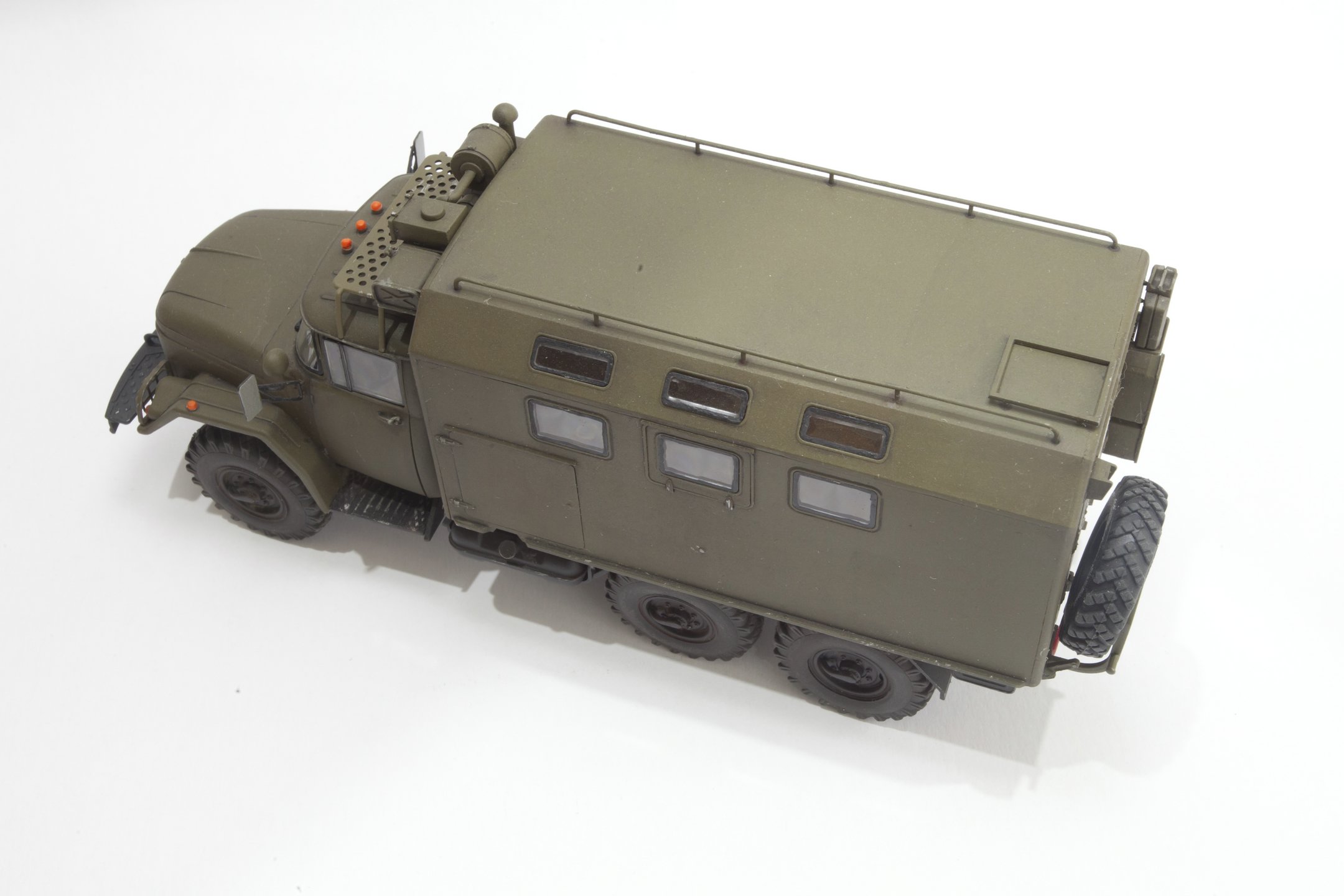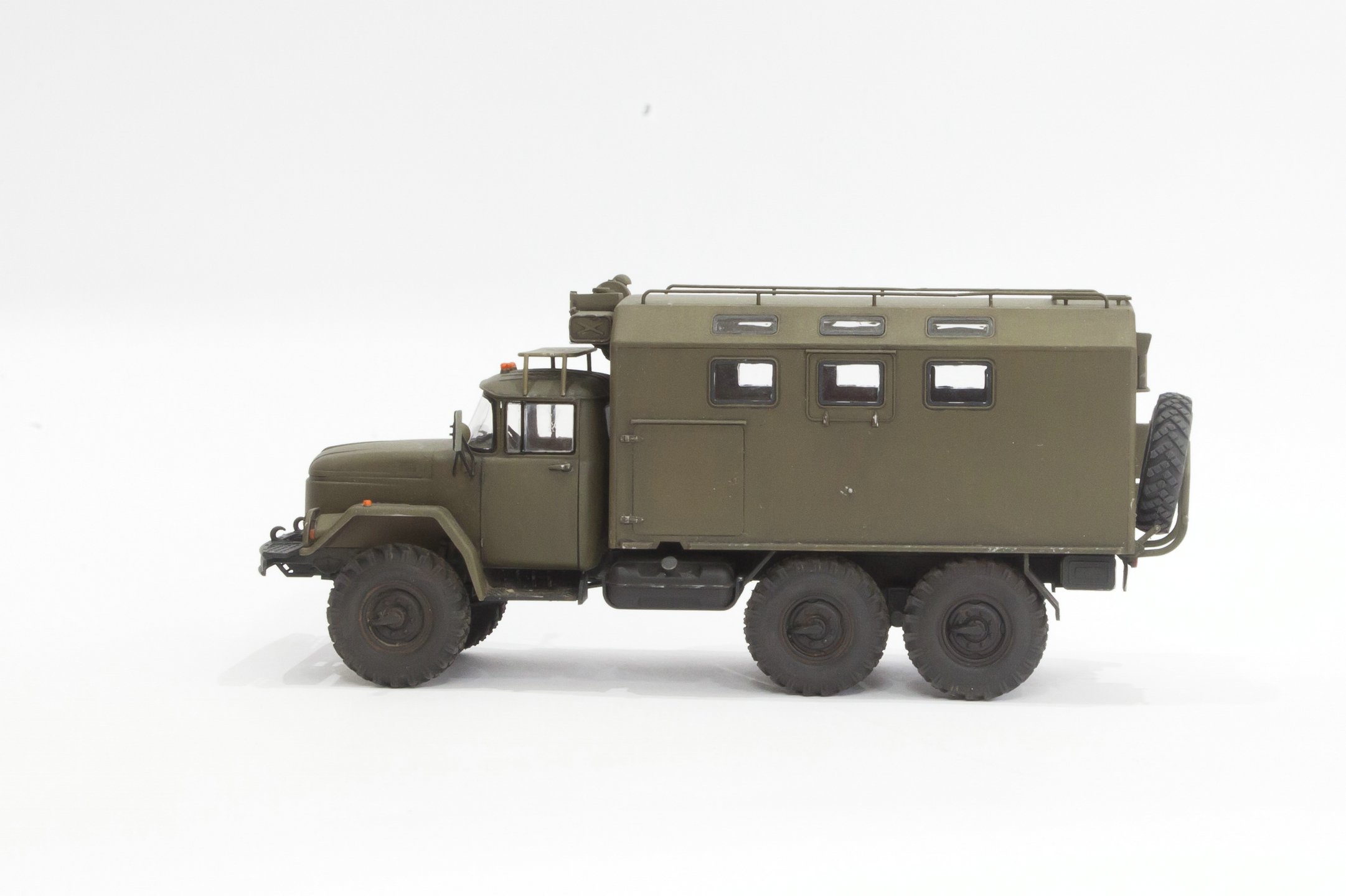 Сегодня представляю вам мою более свежую модель, прошлогоднюю - ЗИЛ-131 КШМ от ICM в 35 масштабе. Напомню, что я собираю только нашу бронетехнику и военные грузовики, но показываю здесь только наиболее удачные и окрашенные аэрографом. Более старые модели красил еще кистью, да и собирал более просто.