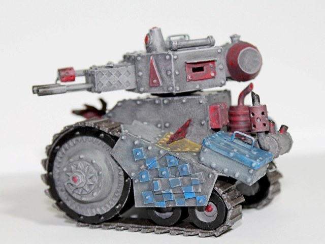 Если говорить о исходном варианте, то грот-танки — это небольшие ветхие гусеничные боевые машины орков, которыми управляют их младшие родичи гретчины.