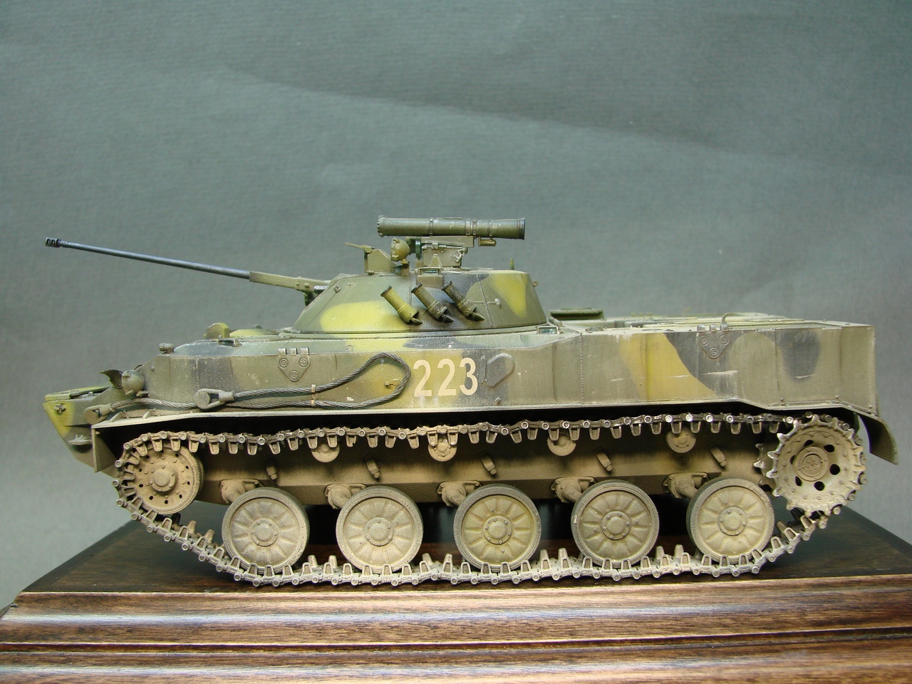 Доброго времени суток! Завершил сборку и покраску БМД-3. Дополнений в виде травления особо на БМД-3 и БМД-4 нет,так как модели свежие. По сборке так же как и БМД-4 ни каких проблем не возникало.Когда фотографировал модель ,увы не расправил гусеничную ленту с одной стороны,некоторые траки не много закусились(( Заменены были Тучи на Воеджер,ствол от RB,ну и антенный вод так же от вояджера , в остальном все из коробки, Химию использовал МиГовскую,пылил пигментами от АКа