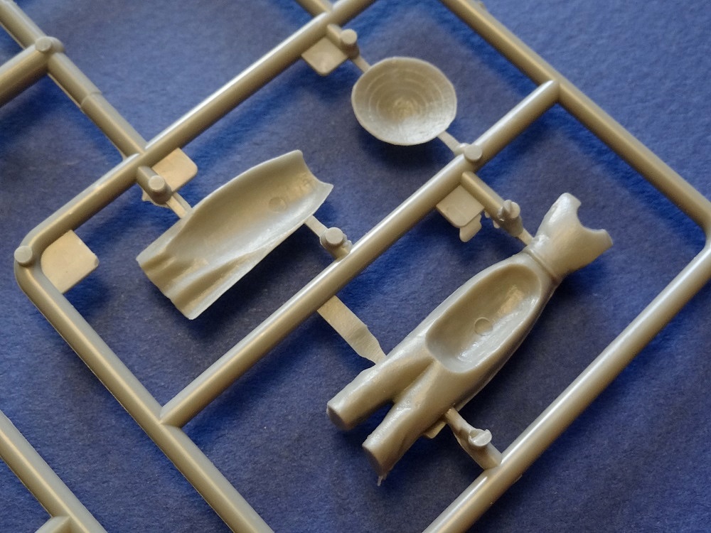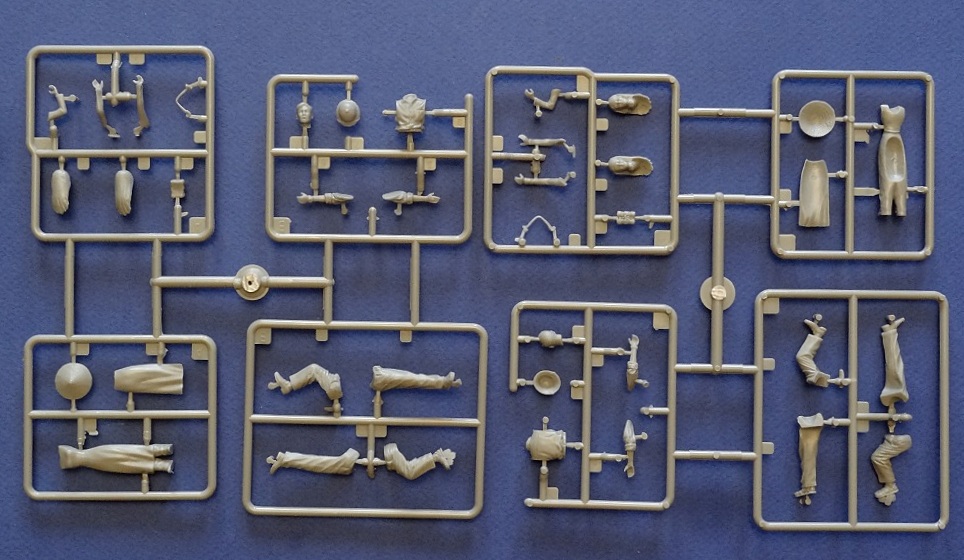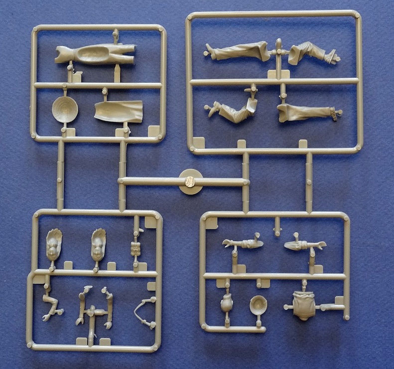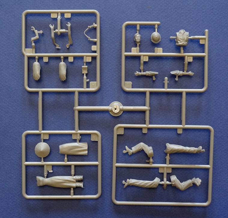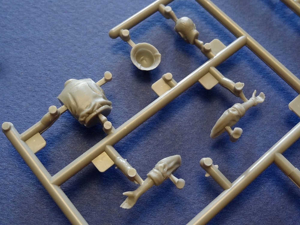 Всего в наборе представлено четыре фигуры размещённых на двух литниках светло серого цвета. Общее количество деталей - 38. На деталях есть облой, но явного брака, каких либо искривлений/недоливов деталей не обнаружено.