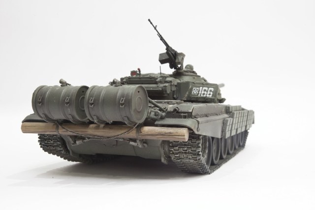 У менговских Т-72/90 такая особенность подвески, что лучше всего заранее жестко вклеивать первую и последнюю пару торсионов, чтобы не вылазили сюрпризы как тут, или когда танк проседает под своим весом.