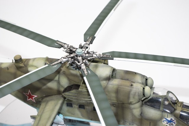 Неплохо. Все портит тонировка как на танке (шейдинг или прешейдинг, слово не русское - смысл непонятен). Вертушки гладенькие да чистенькие почти всегда. Износ выражается в протертости краски почти до дюраля в самом критичном случае, но никак не ржавчина и вот такие разводы. Просто на будущее для информации, такого качества подтеки могут образоваться только в небольшой зоне в районе выхлопных газов при неоднократных помытиях и снова загрязнениях. Отличительная черта "афганцев", при долгой эксплуатации в ДРА, это выгоревший камуфляж и полная матовость окраски, песок работал подобно абразиву.
