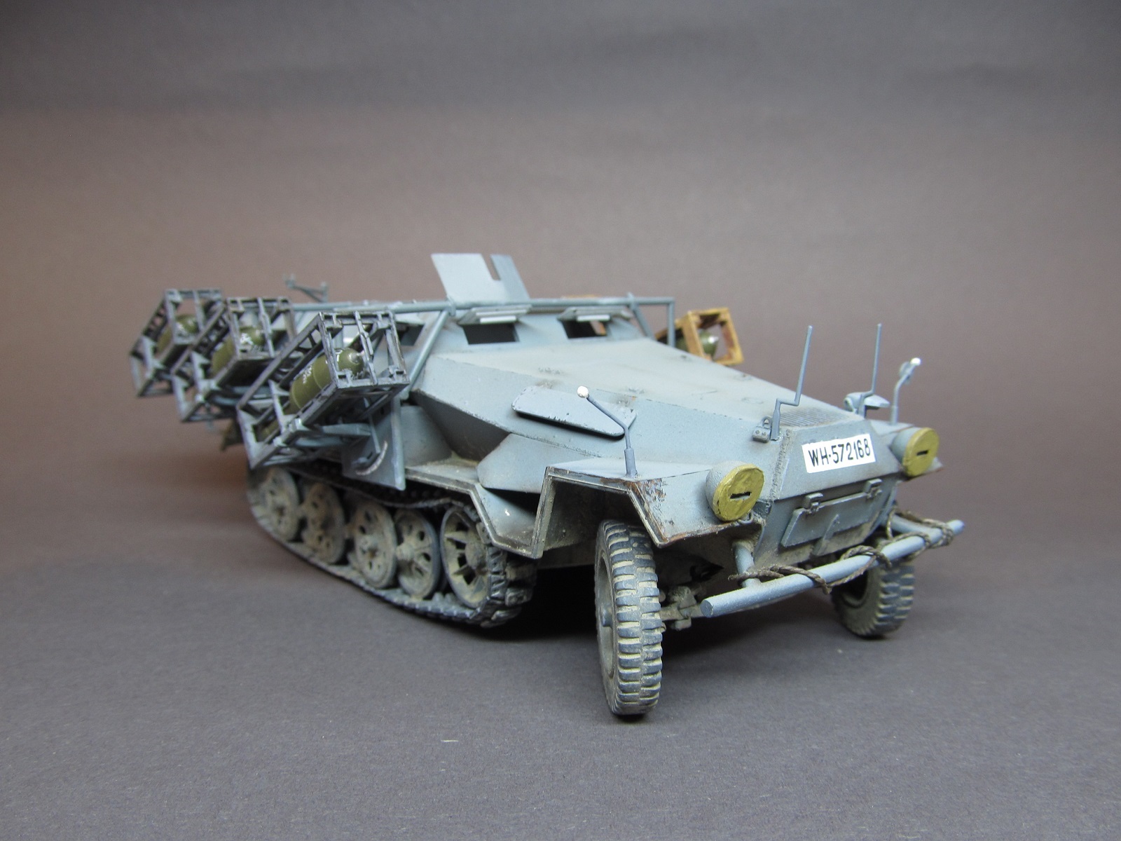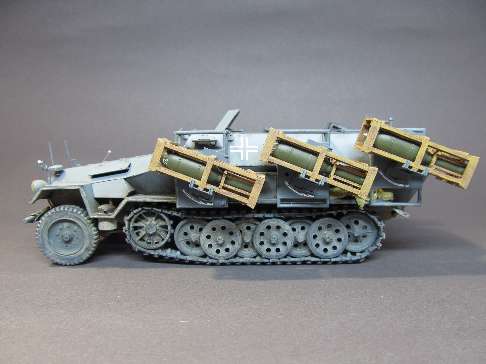 Доброго времени суток, уважаемые коллеги-моделисты! Хочу представить Вам свою работу- модель немецкой тяжелой самоходной реактивной системы залпового огня Wurfrahmen 40 на базе бронетранспортера Sd. Kfz. 251/1 ausf. B "Stuka zu fuss" (или, как ее еще называли- "Heulende Kuh") от фирмы "Звезда".