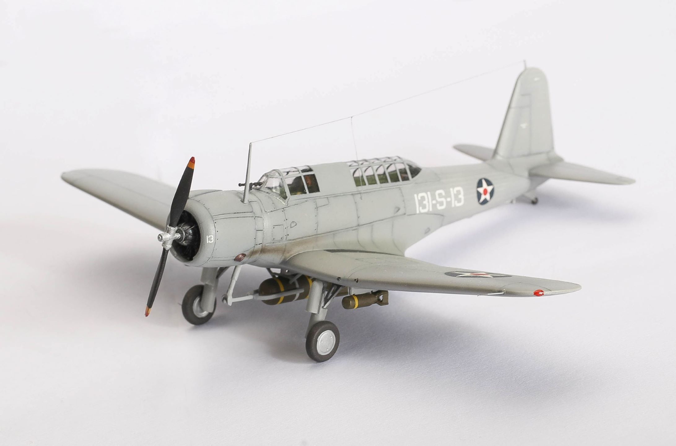 Классно выполнено. Виндикейтор имеет одну оригинальную особенность. Это пикирующий бомбардировщик без тормозных решеток. Их роль играл пропеллер, который при пикировании ставился на реверс. Но эта система оказалась ненадежной. Всего было построено около 170 экземпляров и служили они в первой линии не особо долго.