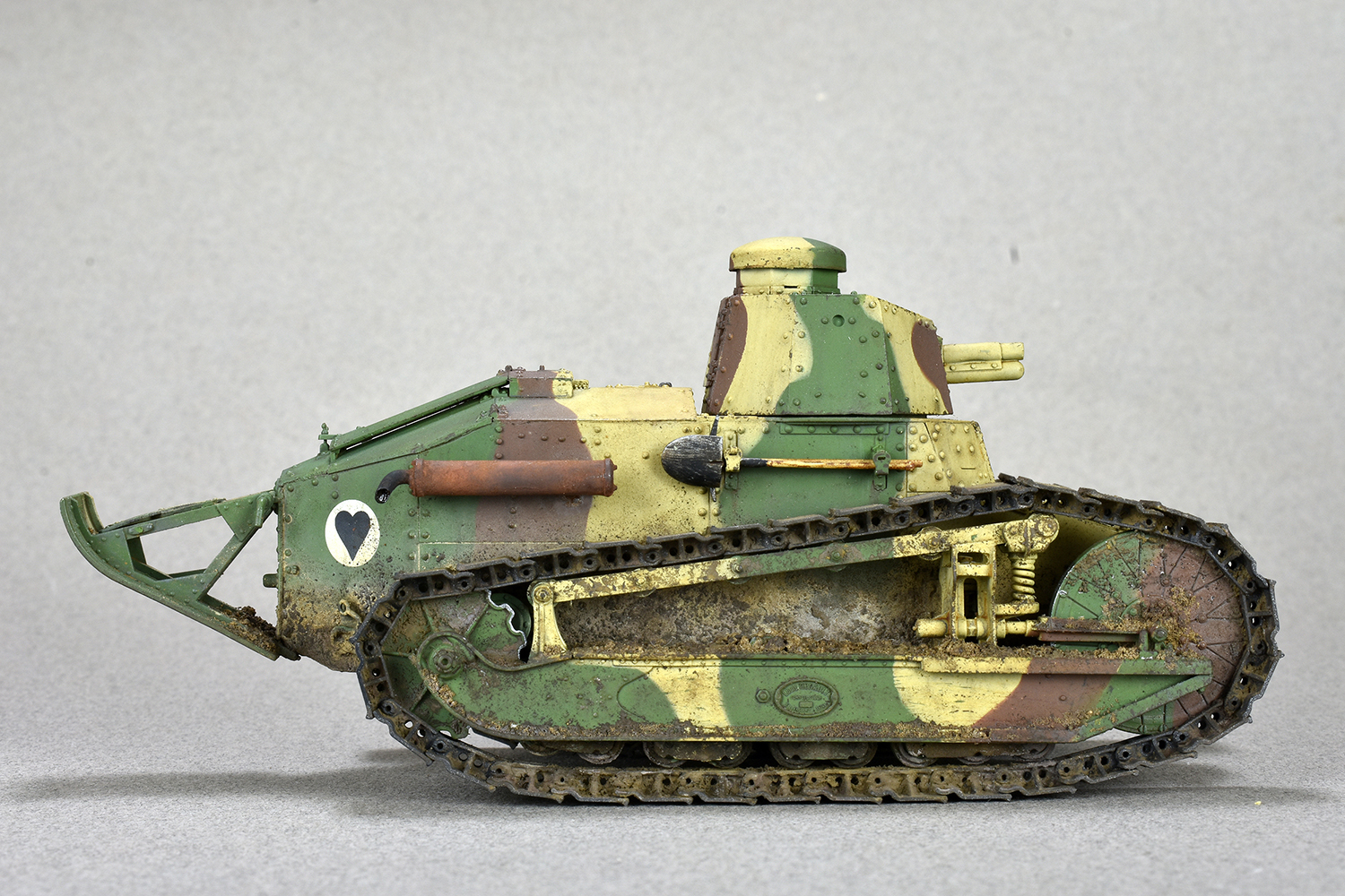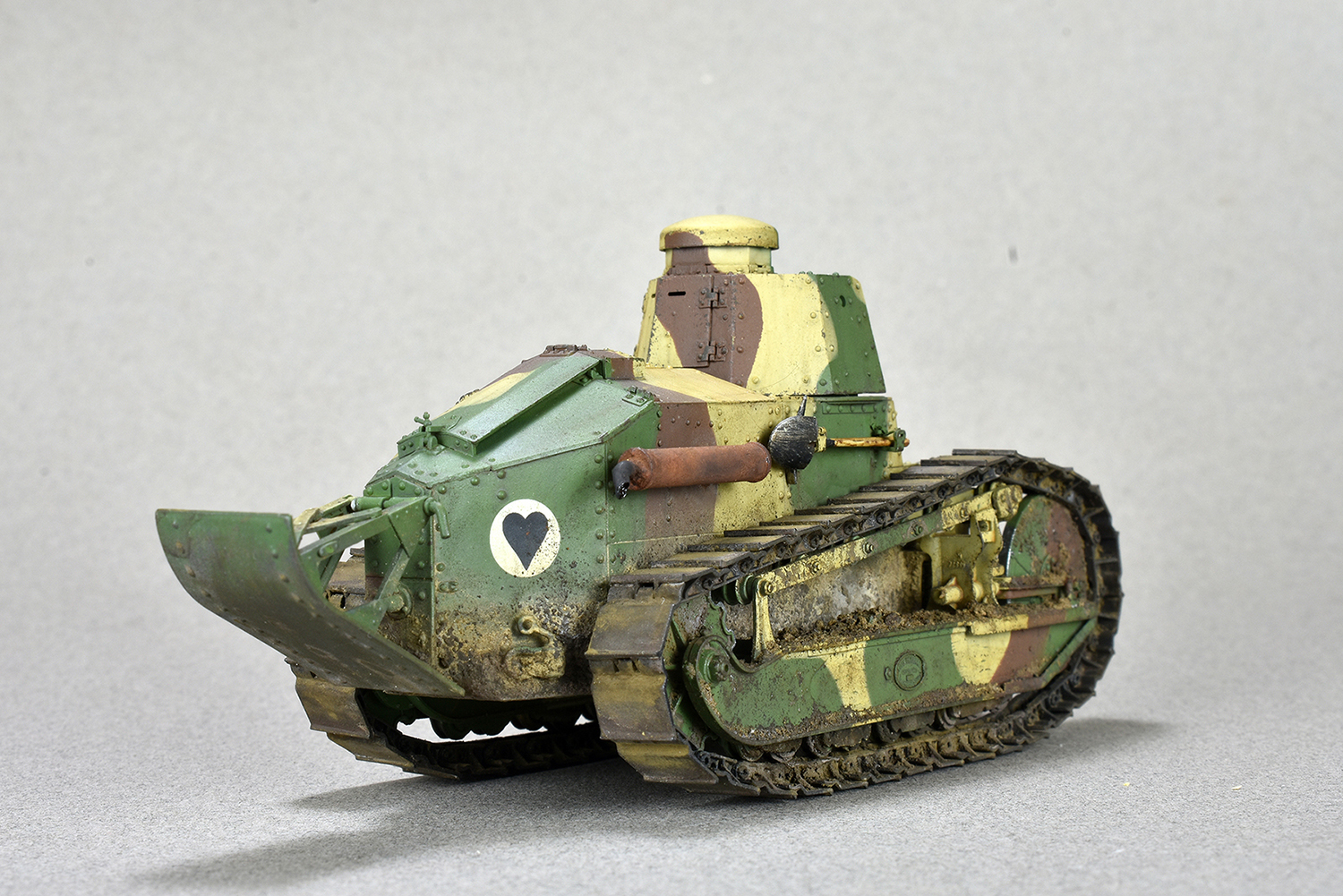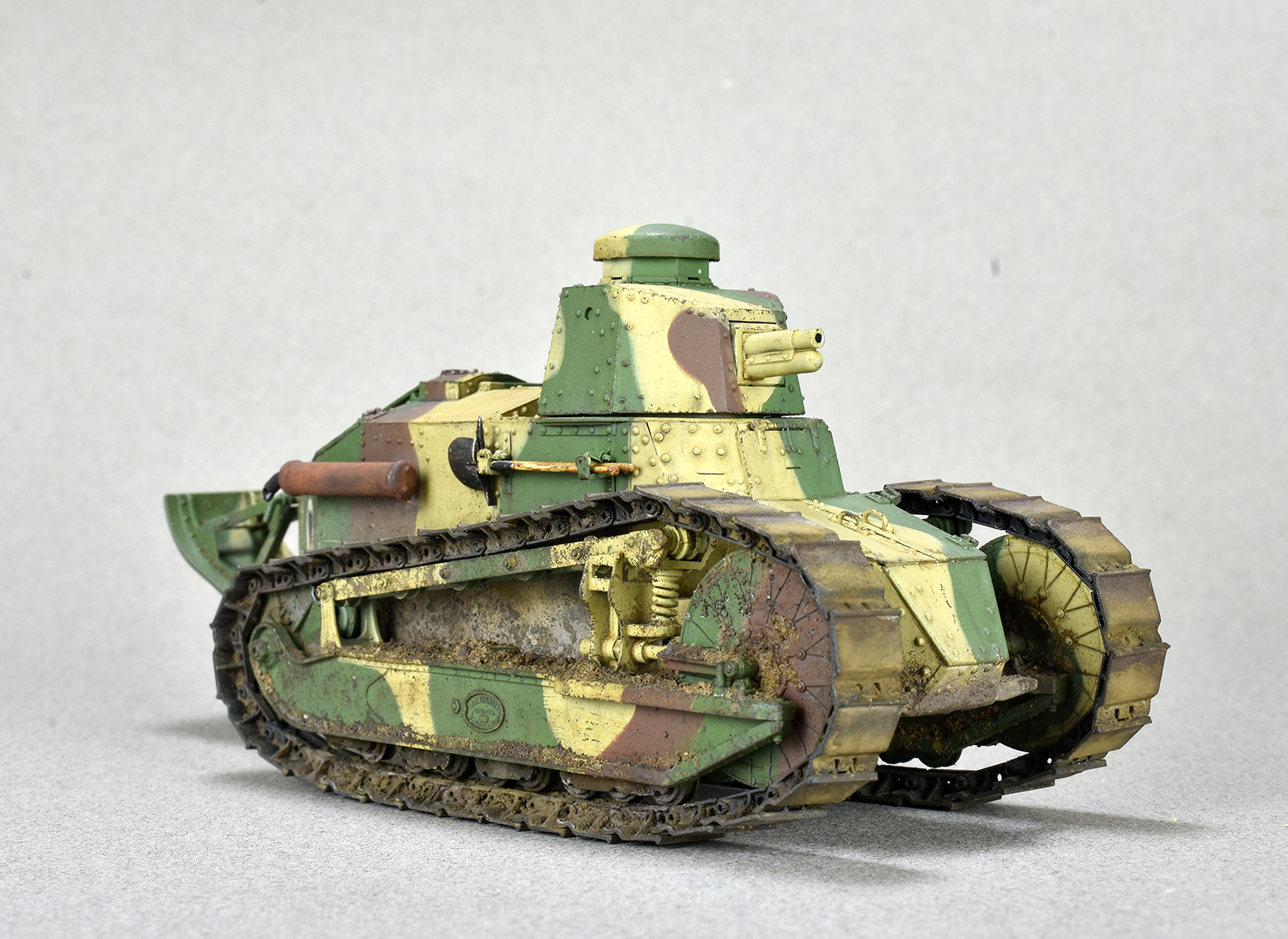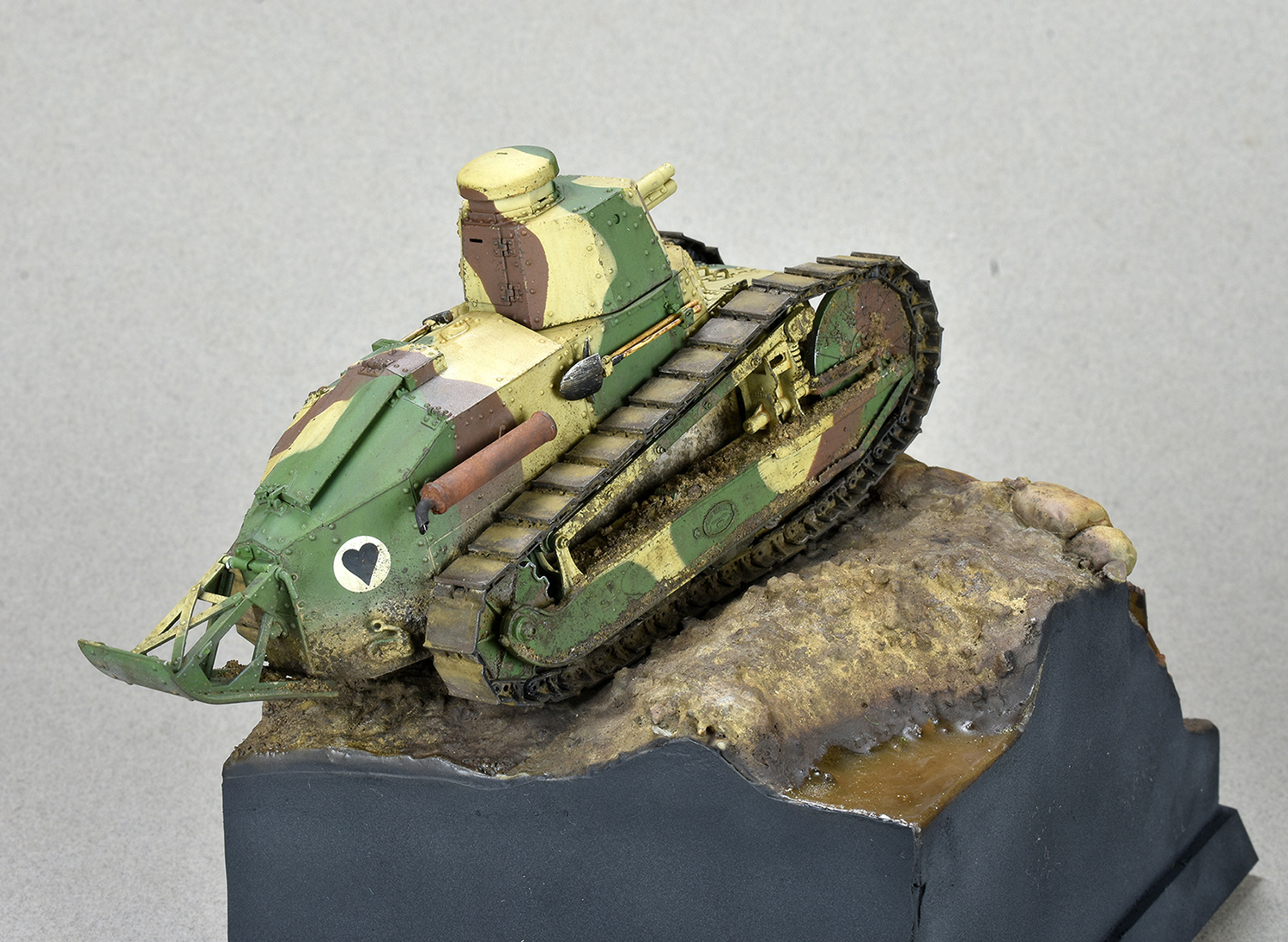 Добрый день. Представляю на ваш суд модель Renault FT-17 Meng. Всё полностью из коробки. За исключением пружин. Родные показались уж очень тонкие. Подставки и диорамы я не делаю( ну не умею)) ,но раз в коробке уже присутствовала основа то решил не выбрасывать) Покраска тамия . Загрязнение химией АММО. Объёмная грязь на ходовой из обычной земли и немного пигмента дя цвета.