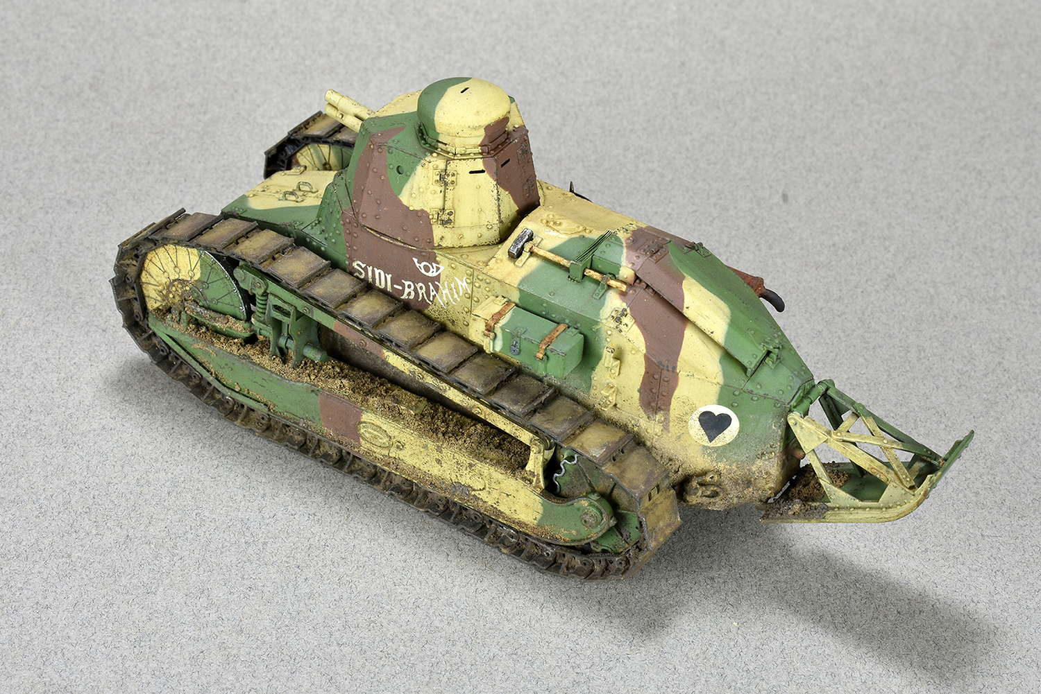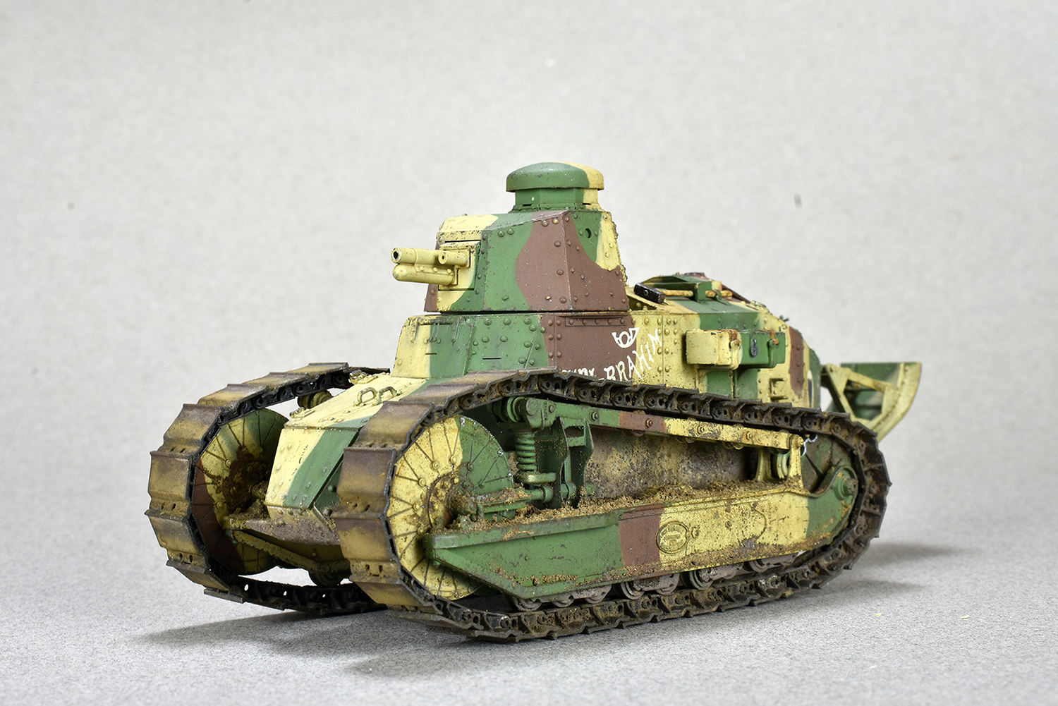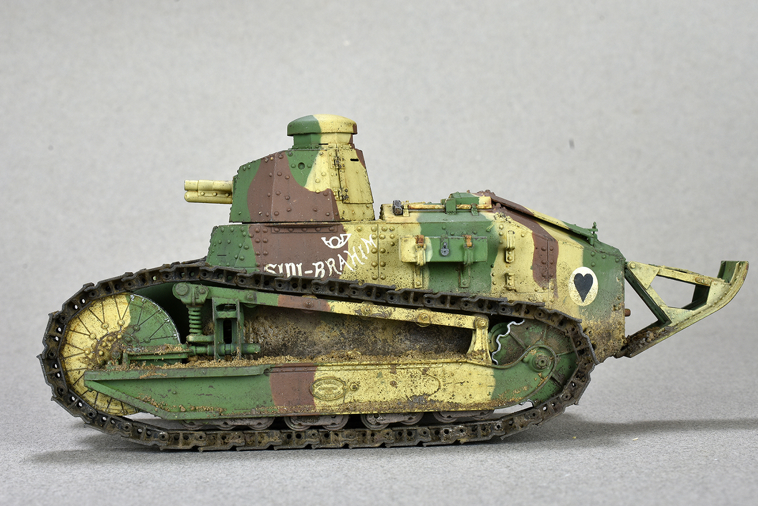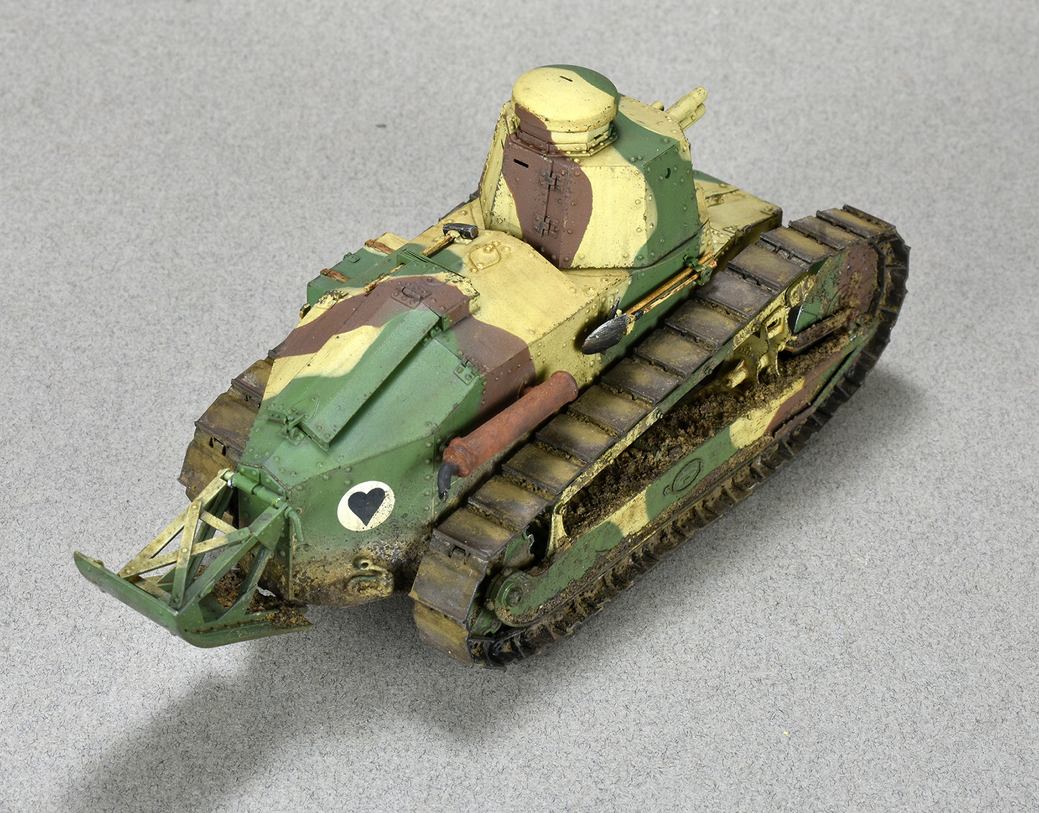 Добрый день. Представляю на ваш суд модель Renault FT-17 Meng. Всё полностью из коробки. За исключением пружин. Родные показались уж очень тонкие. Подставки и диорамы я не делаю( ну не умею)) ,но раз в коробке уже присутствовала основа то решил не выбрасывать) Покраска тамия . Загрязнение химией АММО. Объёмная грязь на ходовой из обычной земли и немного пигмента дя цвета.