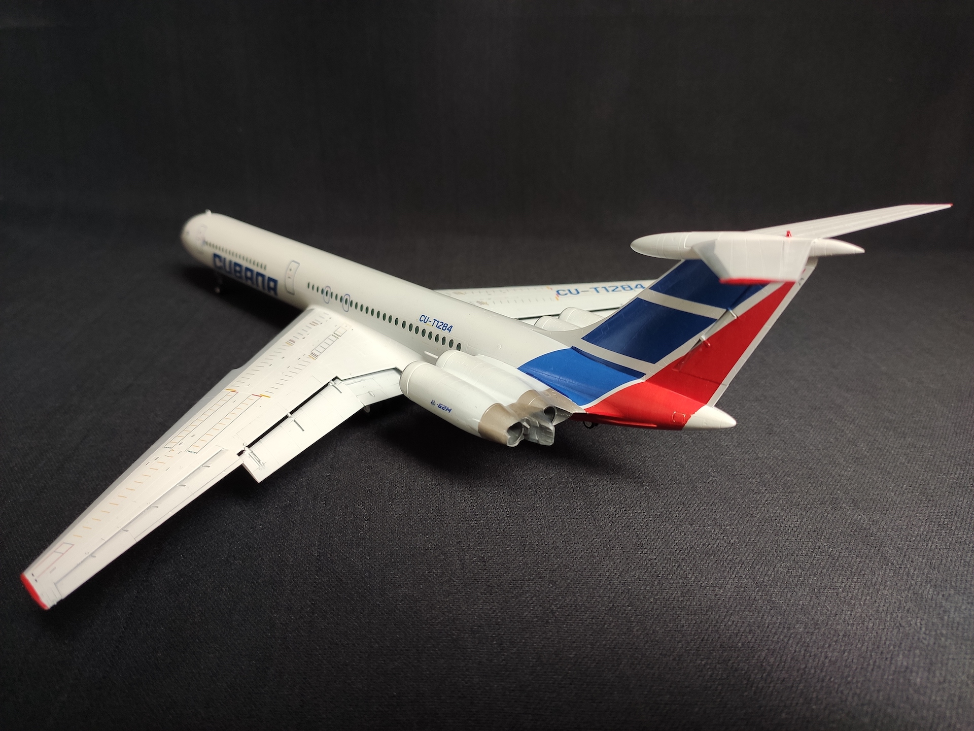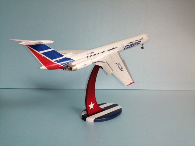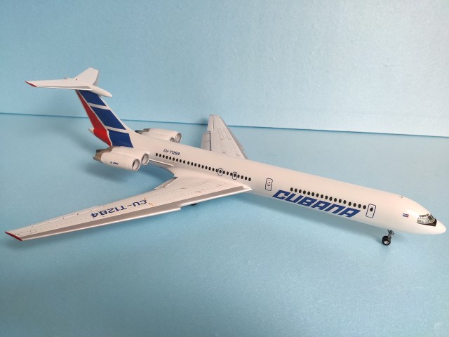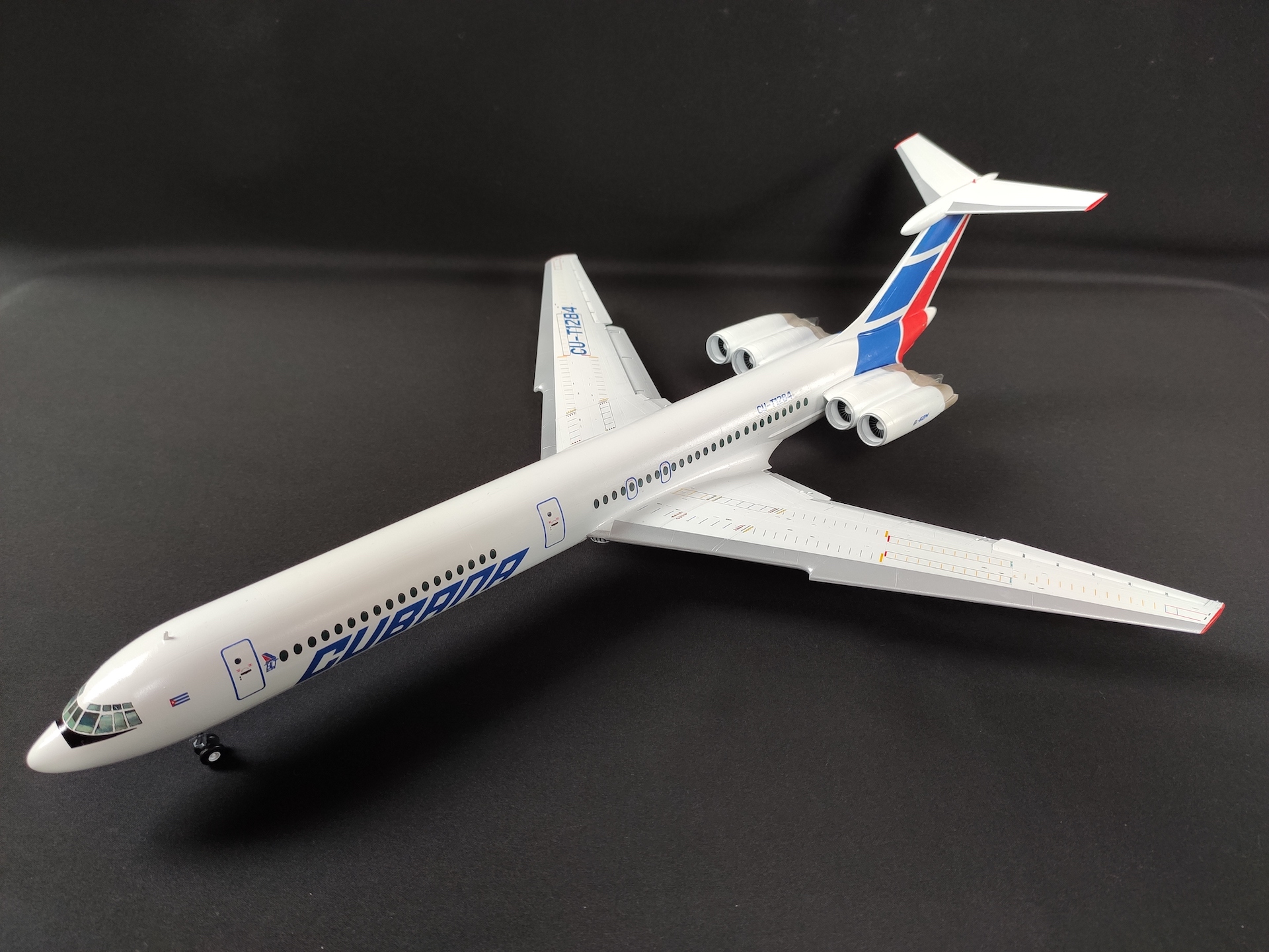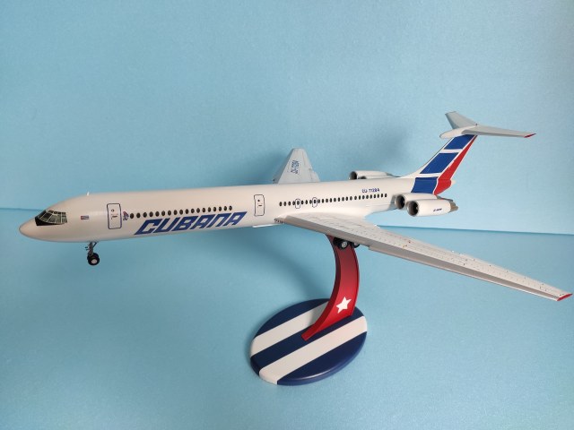На КАРОПКЕ я зависаю уже много лет, но вот решил что пора и мне немного поделиться своими моделями. Начну с гражданского борта ИЛ-62М, который совсем недавно закончил. Каропка от Звезды, но решил что ливрея должна быть оригинальной. Выбор пал на борт CU-T1284 авиакомпании CUBANA. В свое время СССР поставил на Кубу порядка 10 бортов ИЛ-62. Побывав на Кубе 16 лет назад, один из этих бортов я сам видел в аэропорту Гаваны. Уже тогда этот красавец Советской инженерной мысли в красивой ливрее запал мне в душу. Делал его с удовольствием. Кто был на Кубе меня поймет - это любовь на всю жизнь! Помимо самой модели в голову пришла идея сделать оригинальную окраску подставки - в виде кубинского флага.