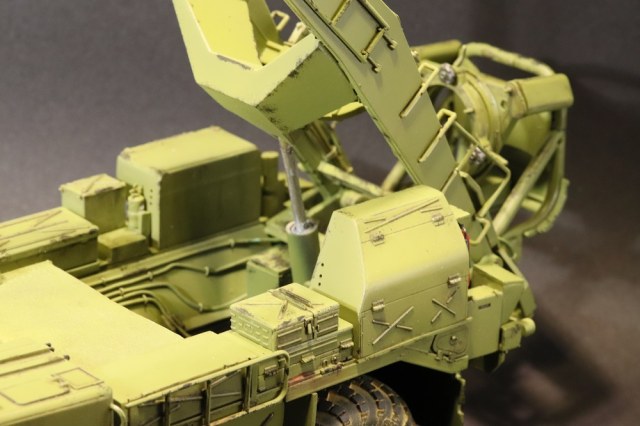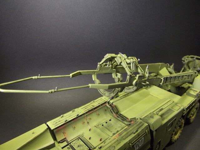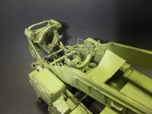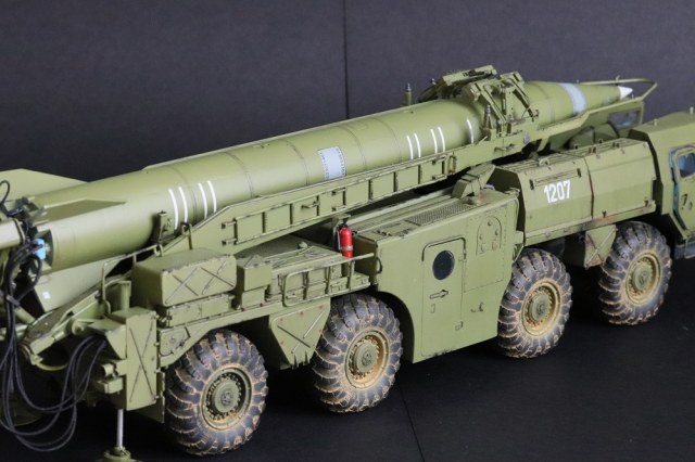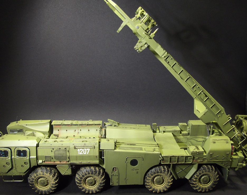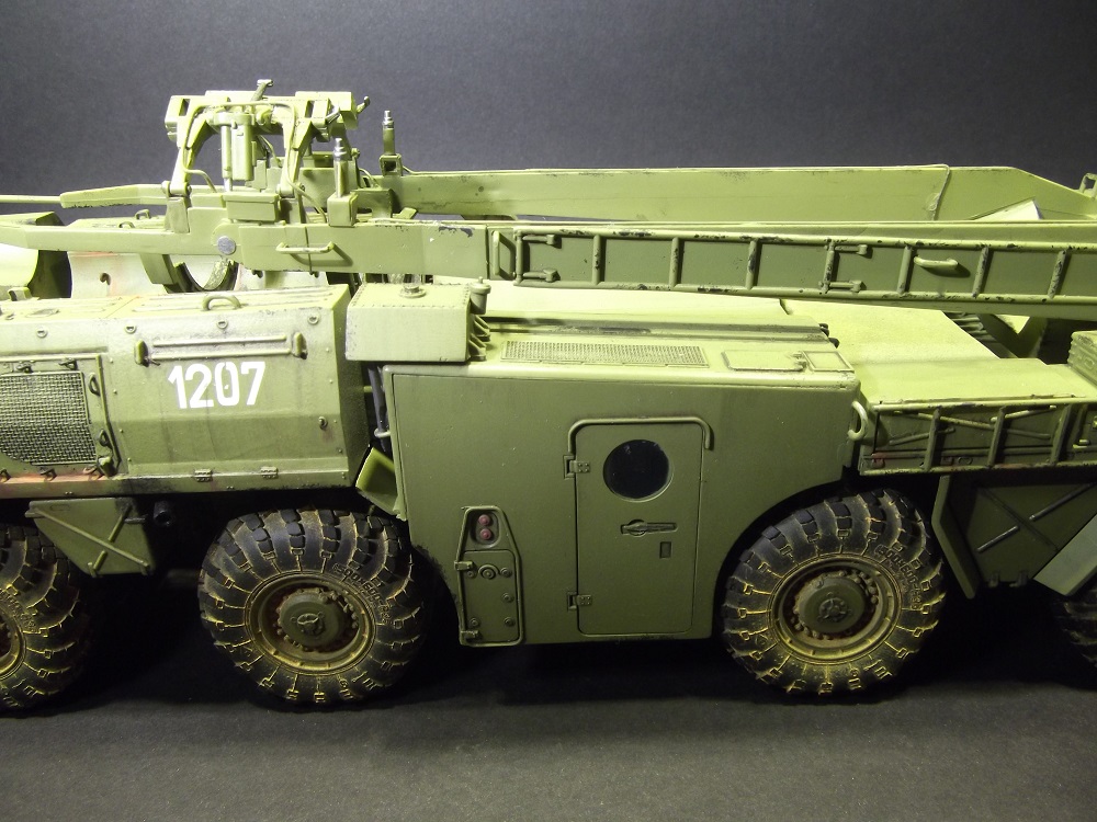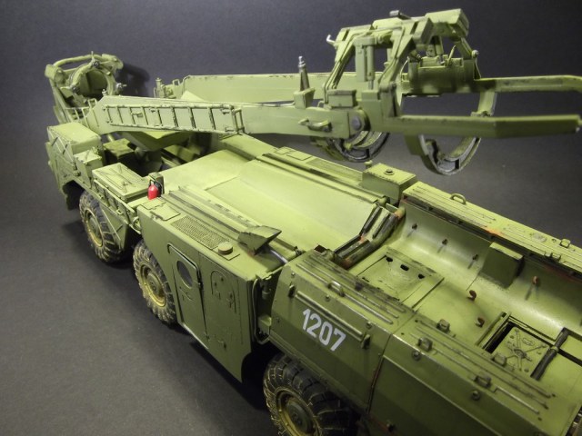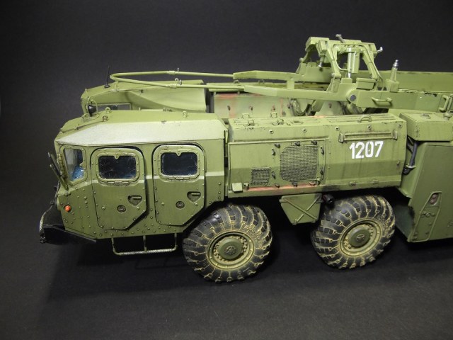 Серьезная работа, Владимир, поздравляю с завершением! Понравилась окраска модели, по мне так очень по-настоящему. Теперь что заметил: совет по поводу Уралов 4320 КС 2573 для подстраховки, надеюсь шутка. Такого не было и не надо лепить))). Пульты, что Вы упоминаете в описании, где они? Большой треугольный - это пульт СПО. Система предстартового обслуживания (СПО) предназначена для подготовки топливных и пневматических систем ракеты к пуску и обеспечения их работоспособности при пуске ракеты. И он, кстати, не правильный. В рубке АПД, что Вы открываете, сиденье должно быть с другоы стороны. Если Вы ставите ракету в вертикальное положение, то башмаки под колеса надо подкладывать и упоры под стол выдвигать, и провода ракреплять и расправлять. Также у Дрэгона даны неправильные передние рубки (кабины). Там и баллоны для пневмопуска должны быть и радиостанция. Вы также днище шасси не показываете, что там? Под передними рубками много чего упрощено производителем. Нет предпускового подогревателя, например, и т.д. Не припоминаю на ракете никаких серых табличек с номерами. Если планируете дальше до диорамы дорабатывать, то кран 9Т31М1 использовался только для перегрузки ракет на стартовый агрегат. Прошу это учесть и не делать ошибок, как Вам уже выше посоветовали. Лучше спросите лишний раз, всегда рад буду помочь, чем смогу.