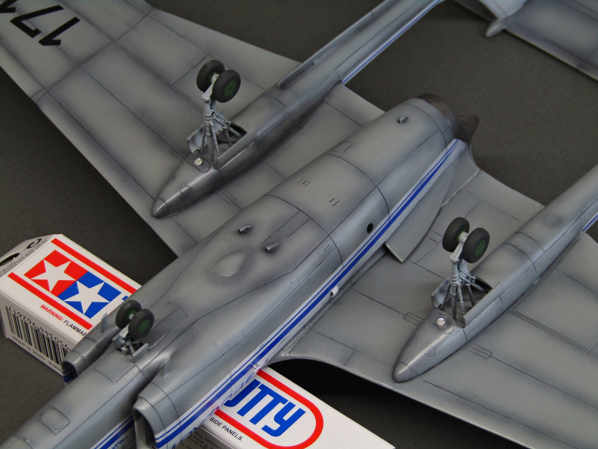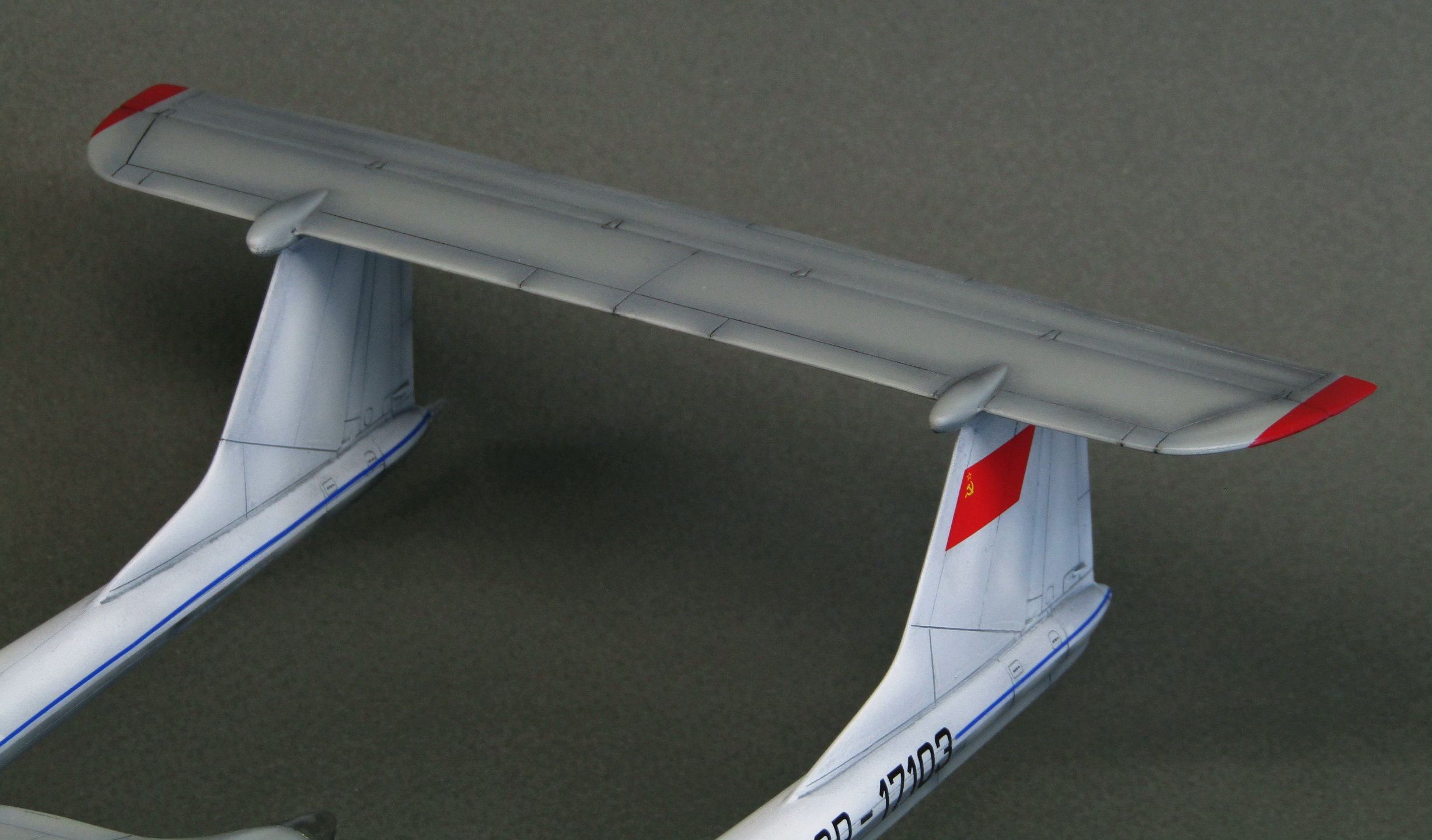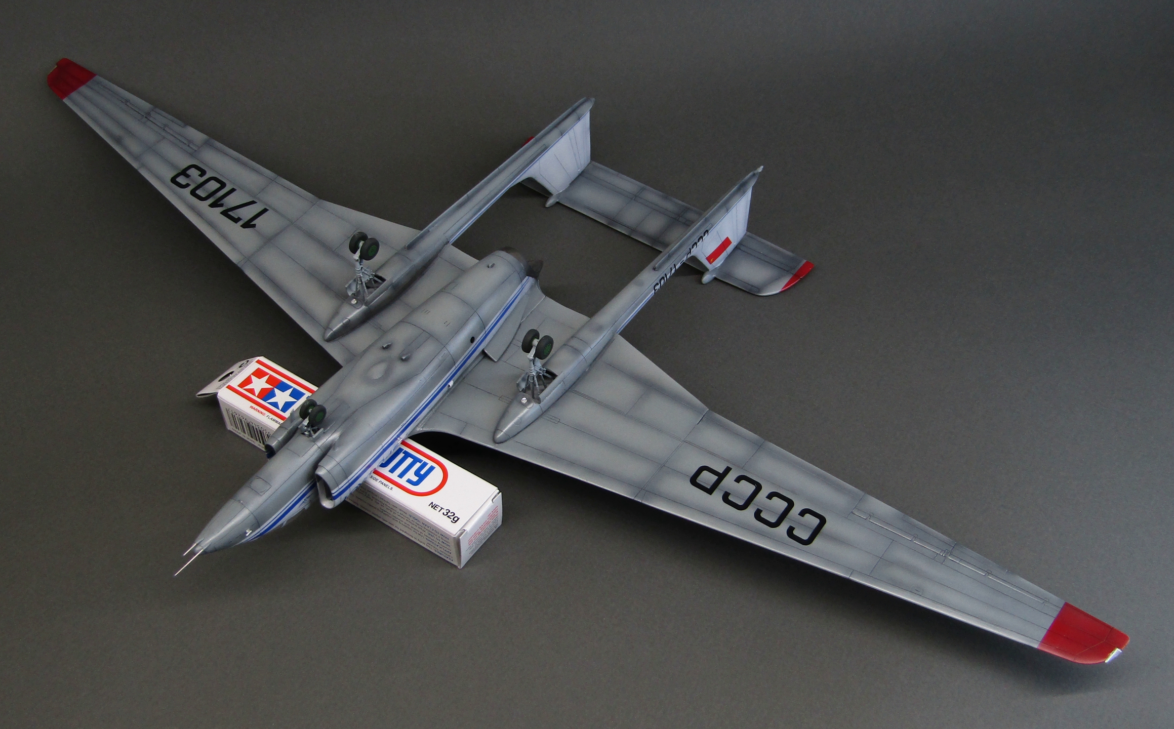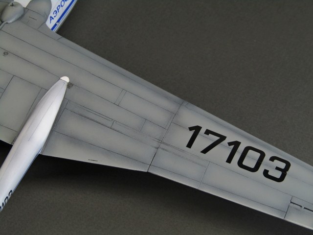 Приветствую коллеги! Представляю очередную работу в 72-м. Как и все остальные киты от Modelsvit'а собирать данную модель очень сложно. Производитель даёт на мой взгляд совершенно безграмотное членение частей фюзеляжа и крыла, вследствие чего требуется очень много подгонок и шпаклевания с восстановлением большого количества расшивки. К примеру чтобы соединить две балки с крылом пришлось вставлять внутрь каждой по трубке и клеить всё на толстый слой Поксипола. Работа заняла месяца 1,5 одновременно с другими проектами. Грунтовал Ганзой 1200, прешейдинг чёрным акрилом от Тамии, серый низ и белый верх также акрилами от Тамии, красные законцовки акрилом от Акана. Глянцевал модель Lp-9 от Тамии, смывки серая и чёрная от Тамии, финишное покрытие полуглянцевым лаком от той-же линейки Lp от Тамии. Собственно и всё, что хотел рассказать товарищи, приятного просмотра...