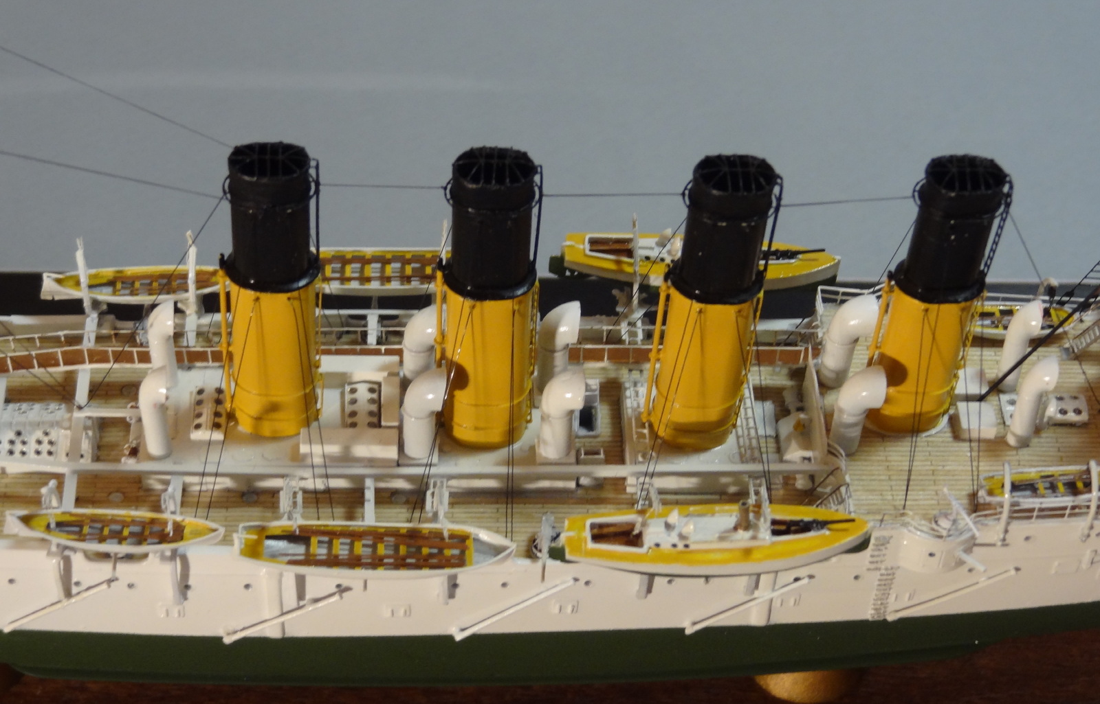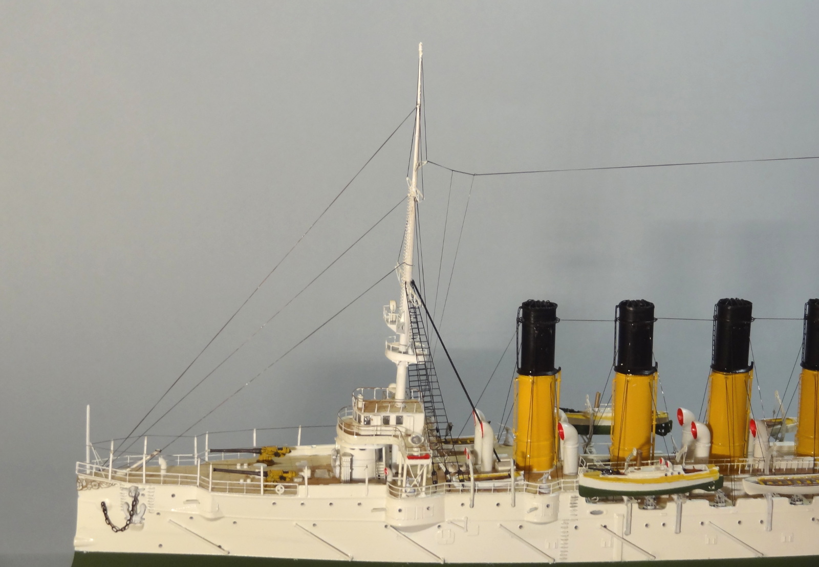 Еще хотелось бы посложнее такелаж, хотя бы флаг-фалы натянуть, лодки там обвязать, но этот момент - как вишенка на торте: торт и без нее вкусный. А ваш варяг - торт.