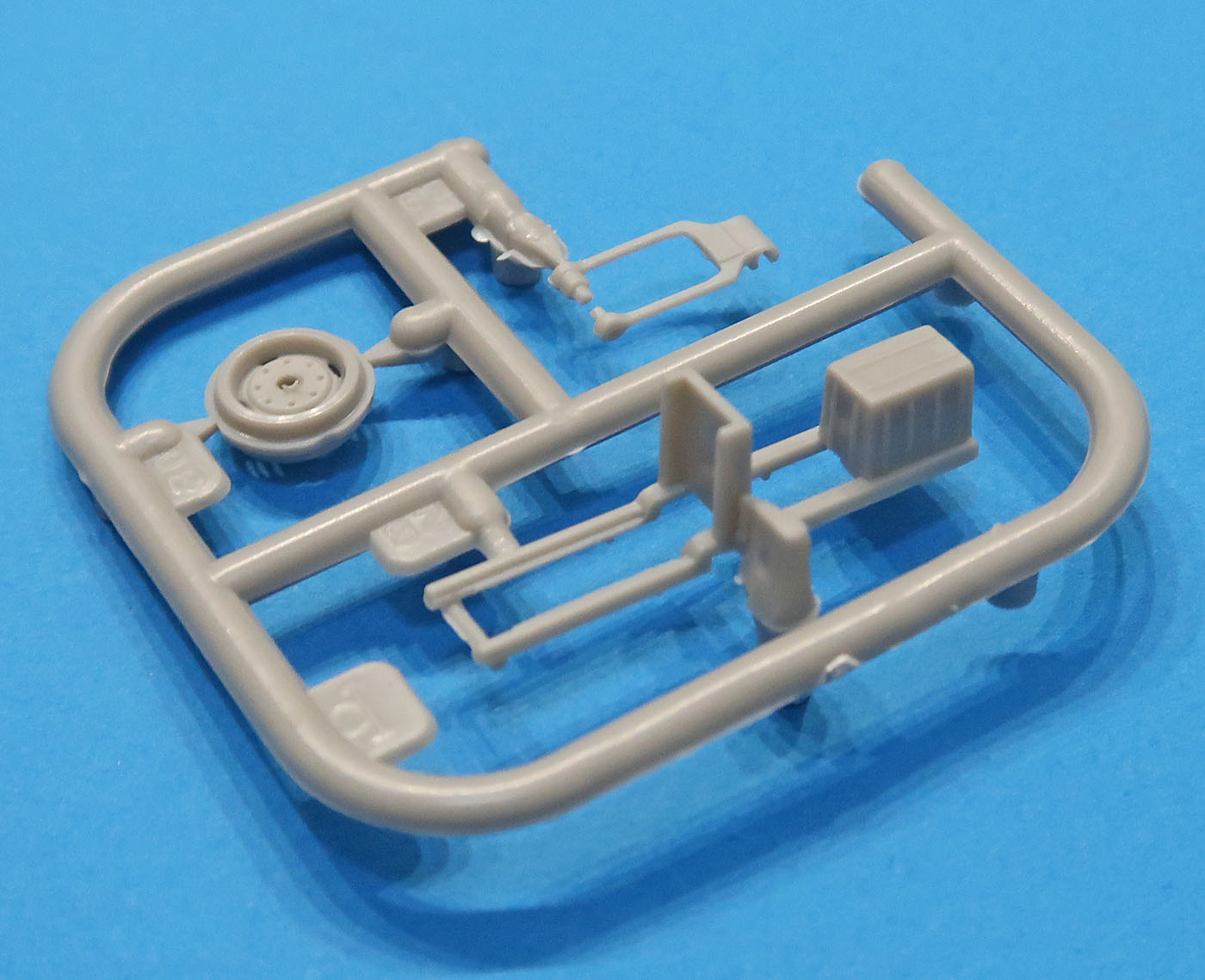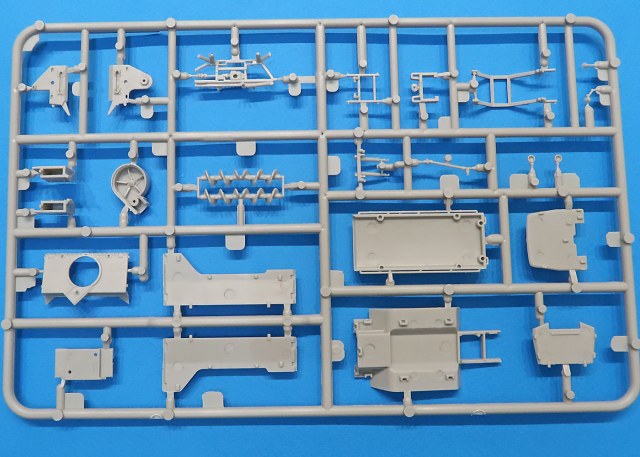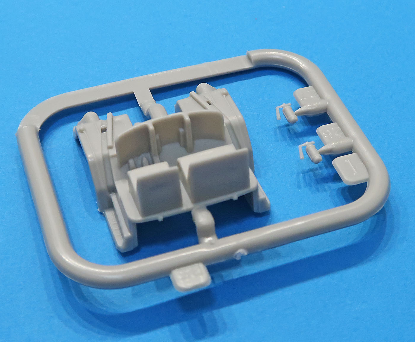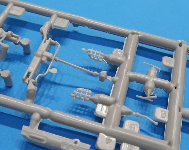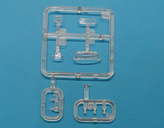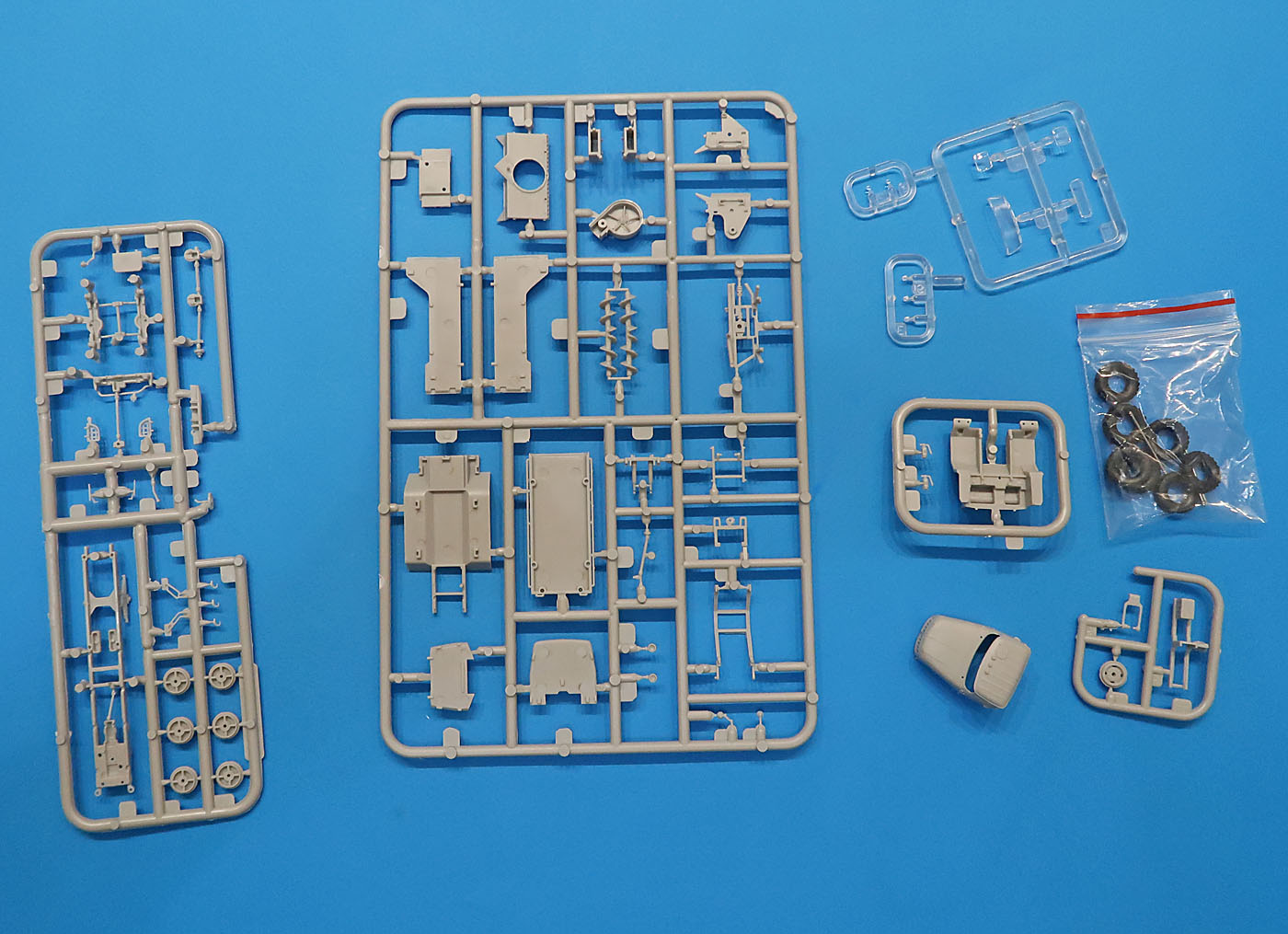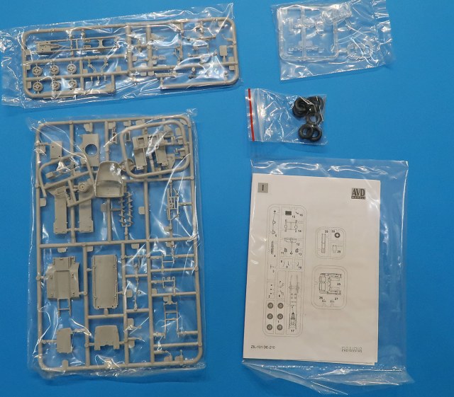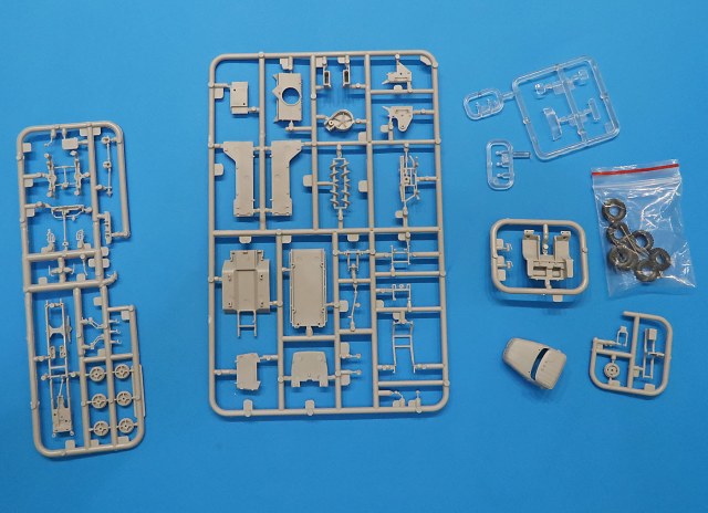 В трех пакетиках литники - большие, маленькие, прозрачный и отдельно отлитая кабина.