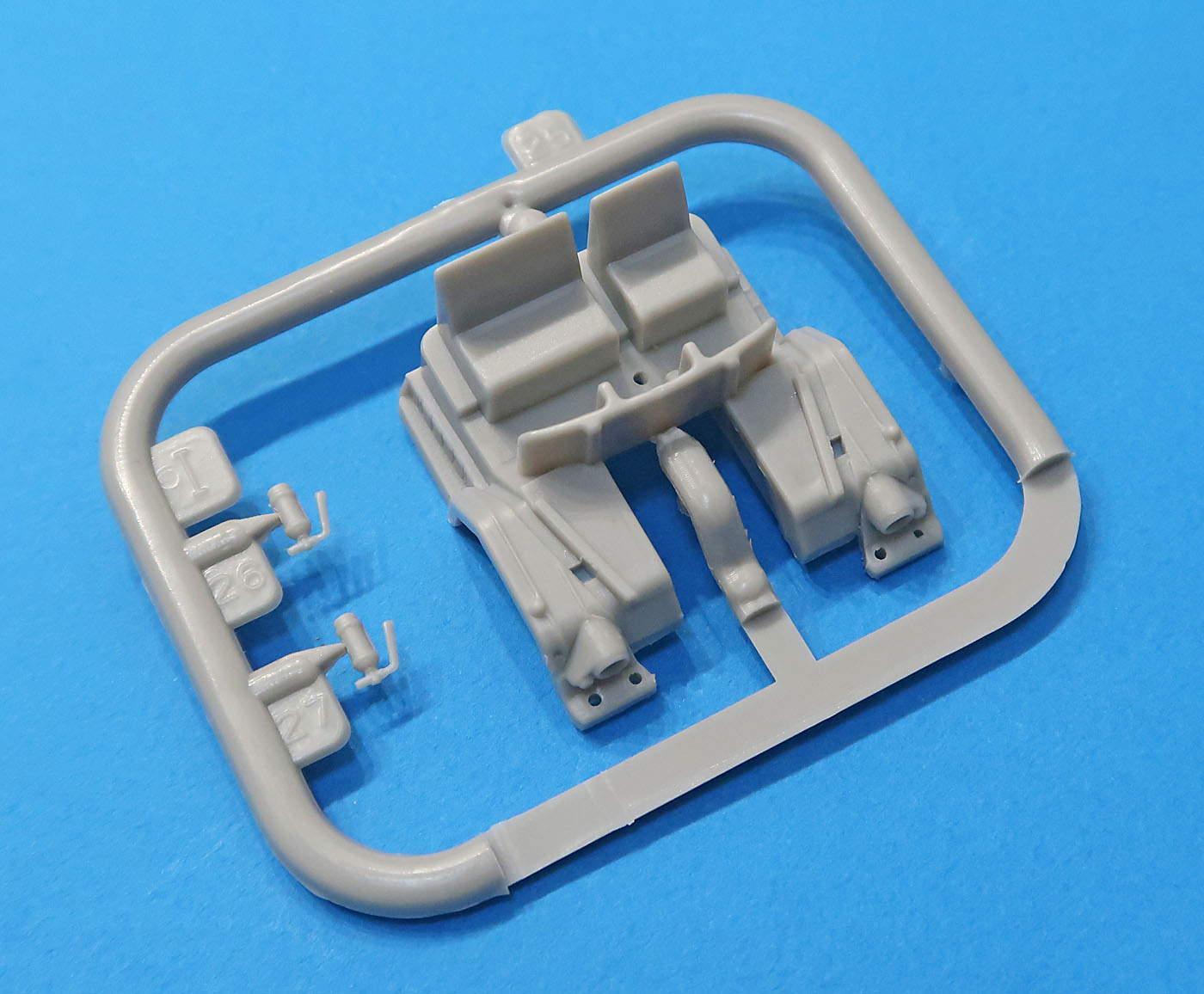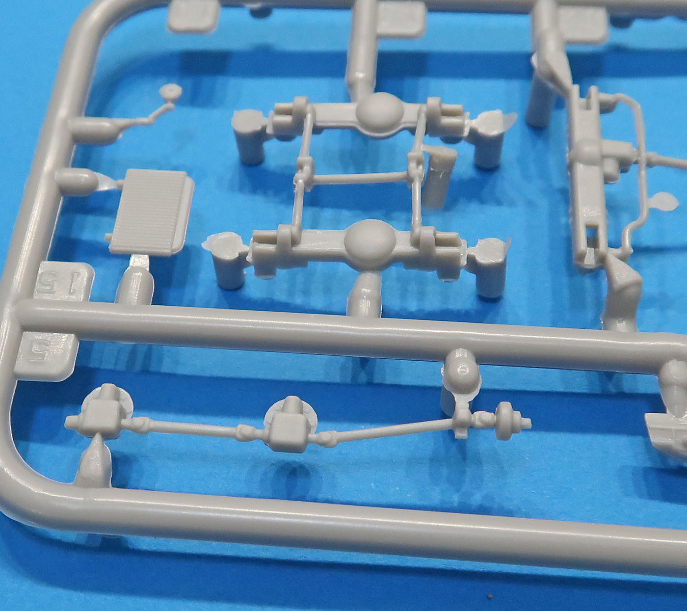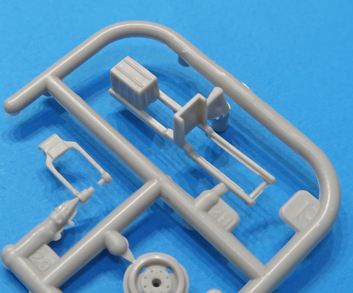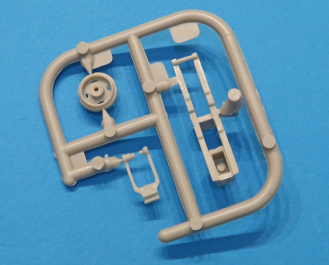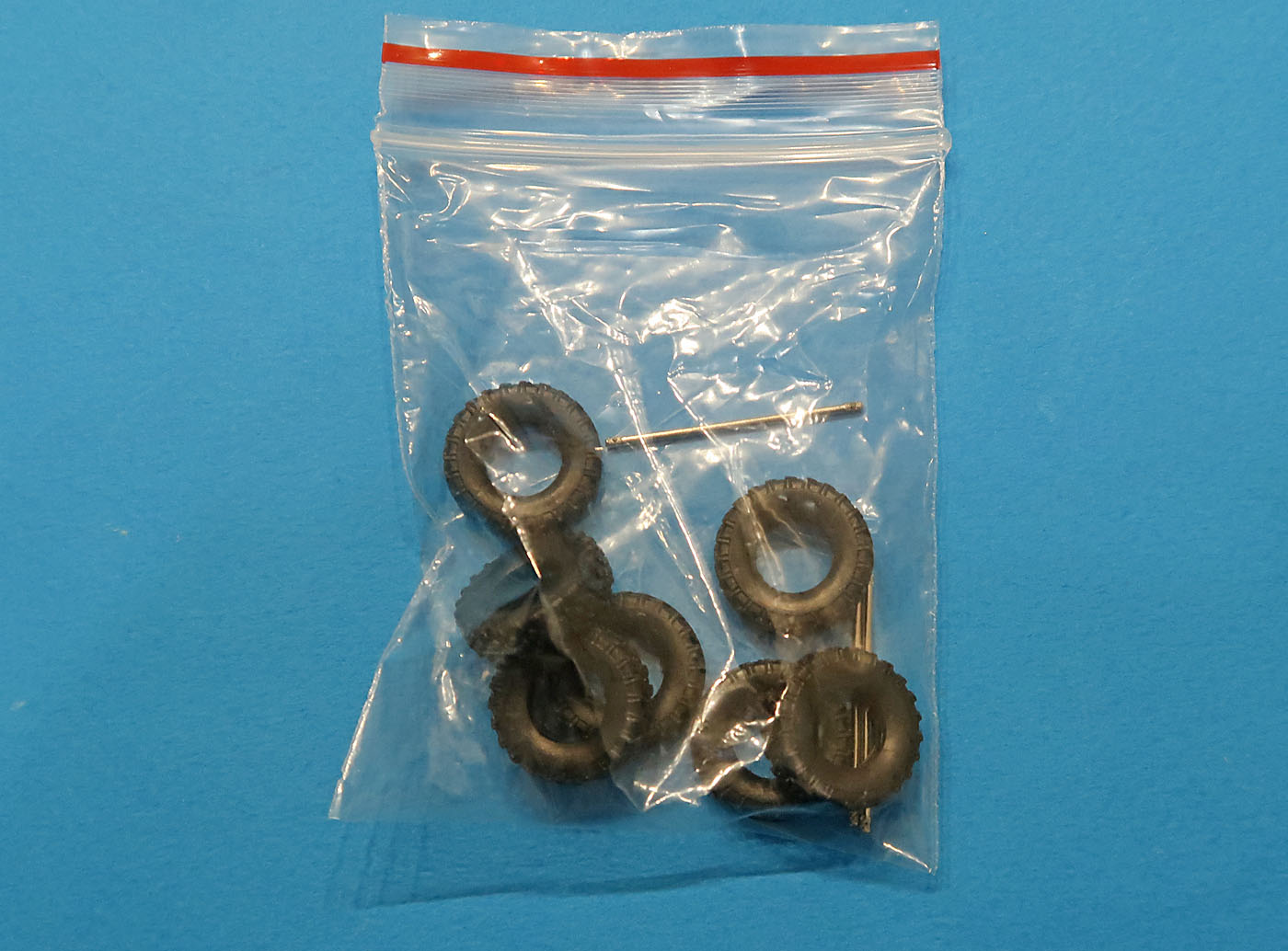 В трех пакетиках литники - большие, маленькие, прозрачный и отдельно отлитая кабина.