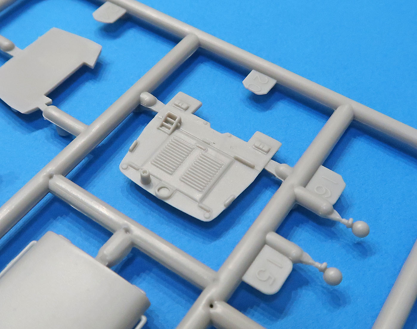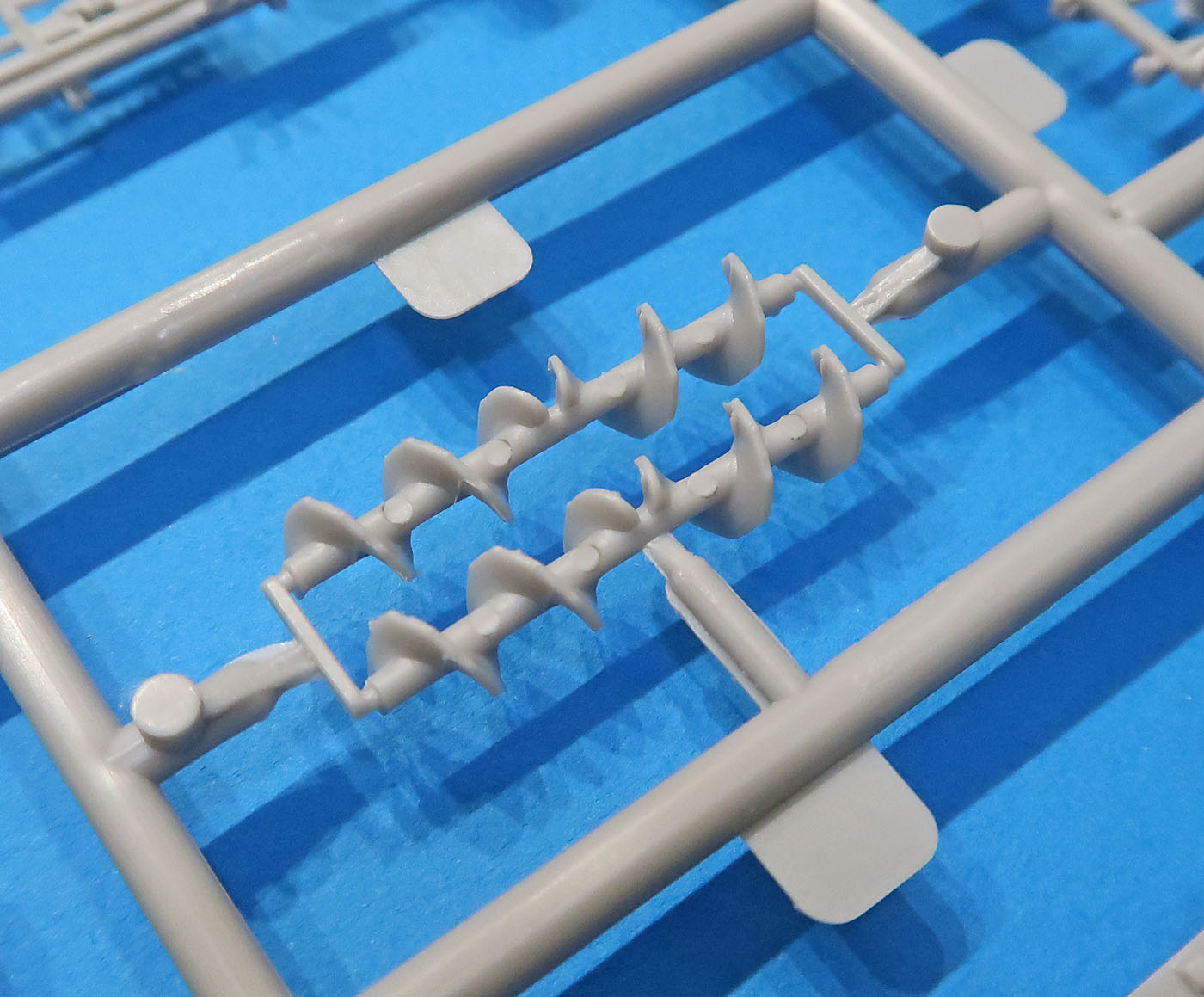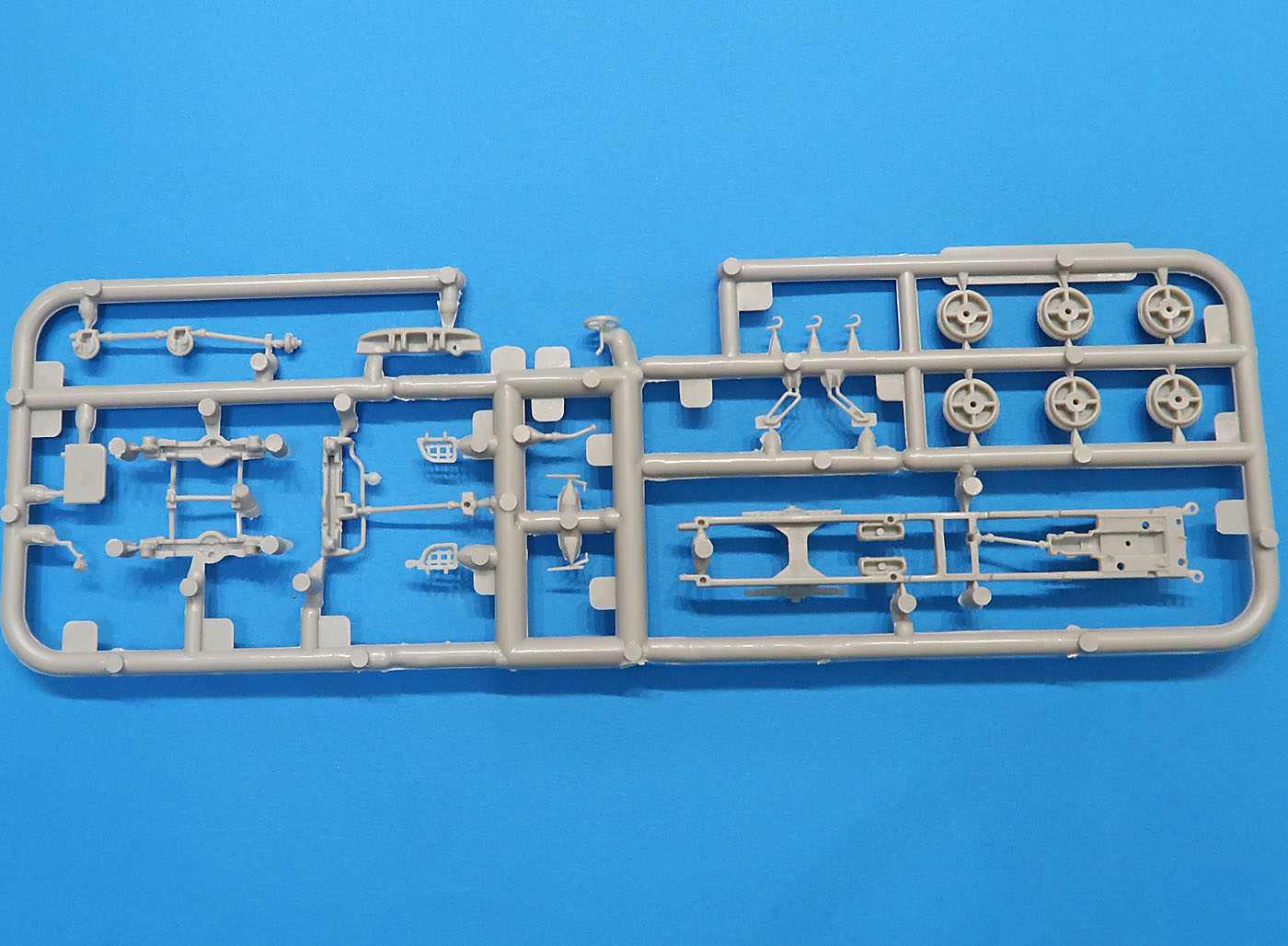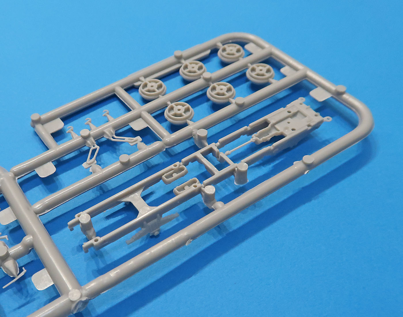 В трех пакетиках литники - большие, маленькие, прозрачный и отдельно отлитая кабина.