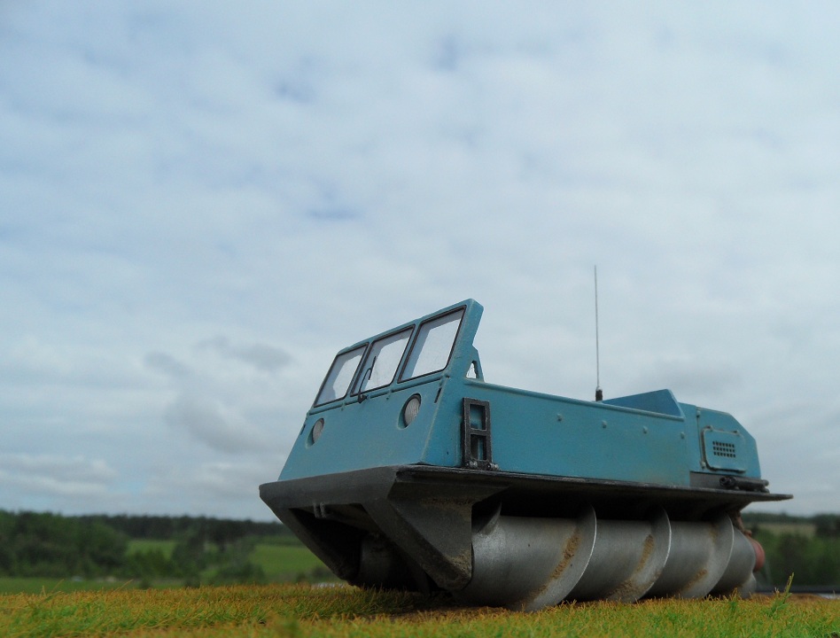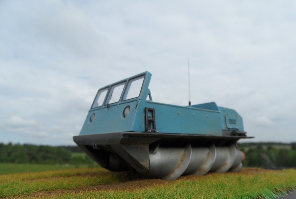Всем привет! Еще одна новинка из смоляной серии , шнекоход Зил -2906. Модель выполнена полность из смолы, за исключением небольшого литника из пластика с мелкими деталями. Стекла на этой модели сделаны так же из прозрачного пластика, а не из пленки, что радует. Сборка простая, облоя почти нет, отлито все на 5. В общем модель понравилась. Приятного просмотра!