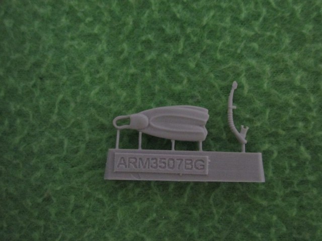 Качество литья традиционно на высоком уровне, утяжин нет, облоя почти нет, стыкуемость деталей покажет сборка. Общее впечатление весьма положительно. Из минусов, не хватает ножа и грузового пояса, придётся мастерить самому. На дыхательной трубке нагубник слегка переразмерен, но это чисто моё субъективное мнение.