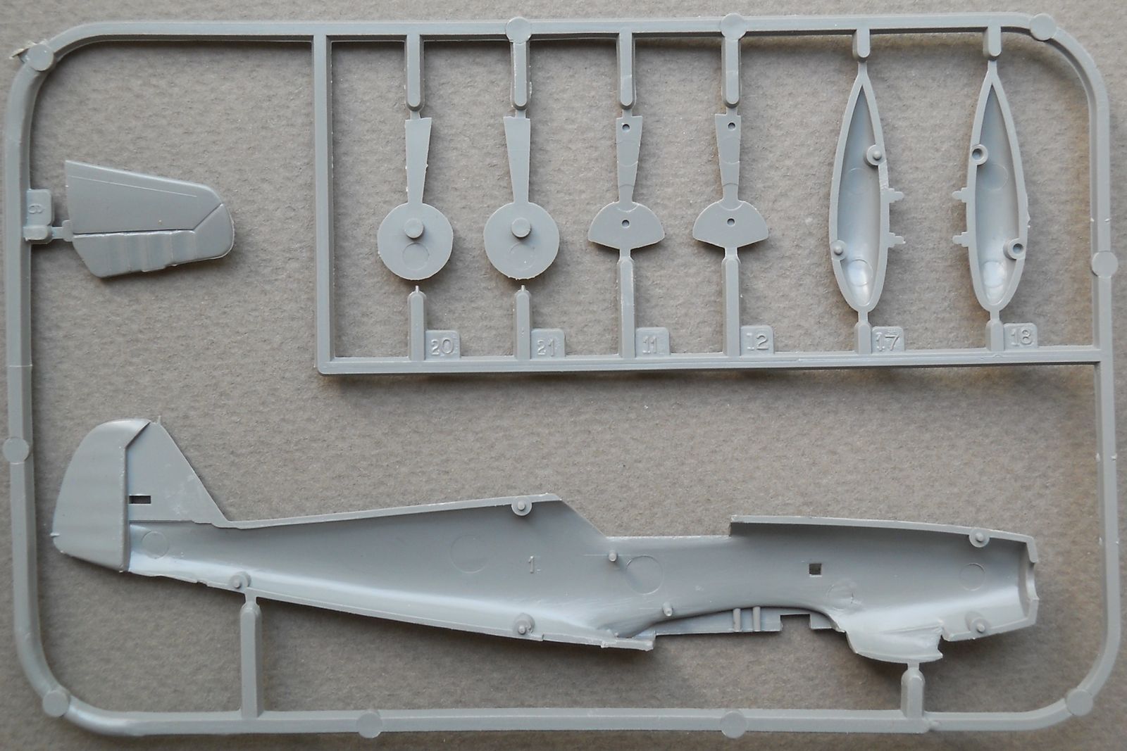 Надо сказать, что по технологическому делению французская модель практически соответствовала разработке от FROG, отличаясь лишь в мелких деталях. А вот уровень общей копийности оказался не так хорош, как у FROG — при верном размахе крыла была допущена ошибка в расчете длины фюзеляжа для масштаба 1/72, в результате чего на “эйлеровской” модели он оказался на 6 мм короче — для столь небольшой модель это был существенный недостаток."
