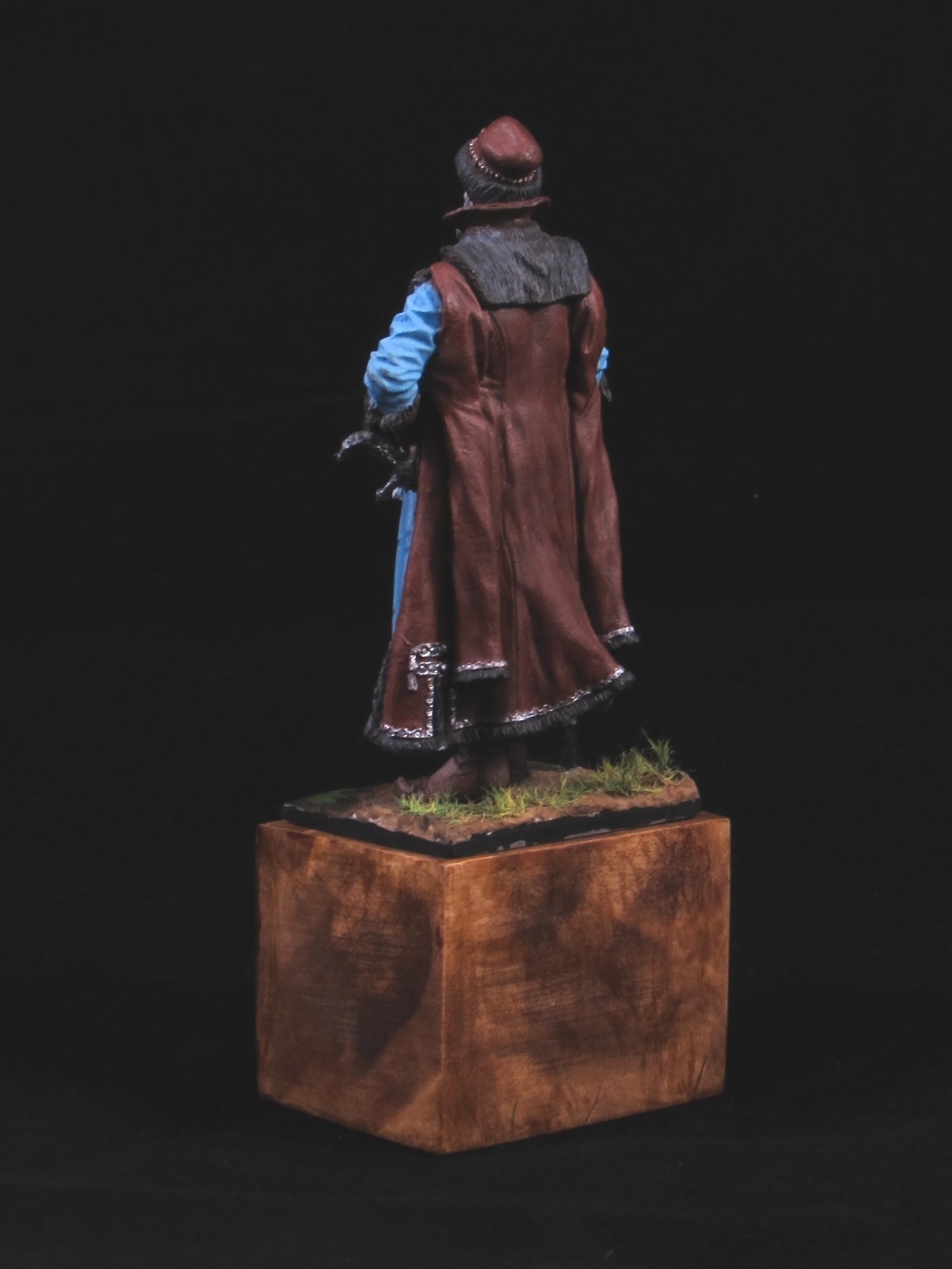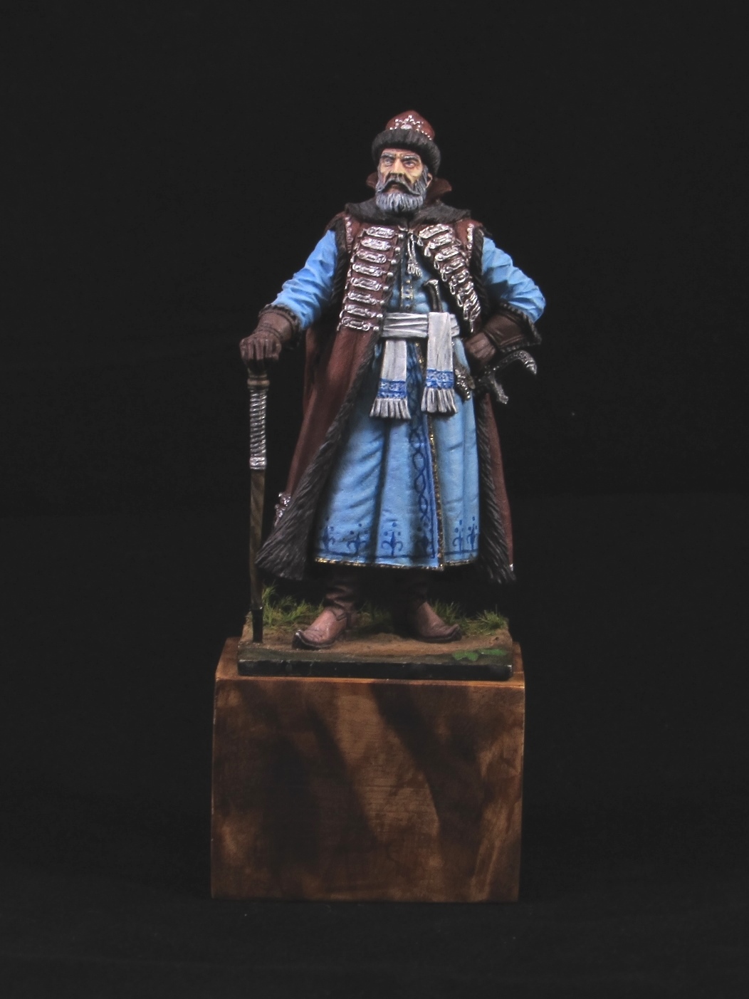 Для первой попытки так и неплохо совсем. Аккуратненько Вот по матчасти вопросов больше. Одежда XVI-XVII в у воинских начальников такого ранга исключительно яркая, броская. Это как погоны сейчас, как малиновый пиджак в 90-е - маркер принадлежности к высшему сословию. Иными словами - кафтан поярче бы. В целом - хороший голова.