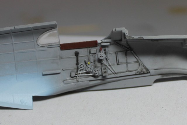 Начал сборку с кабины. Травление очень оживило модель. Его тоже слегка доработал, добавил тросики.Заменил кресло из набора на звездовское от ла-5. Изготовил заслонку аккумулятора за кабиной. Так-же привел прицел в порядок согласно прототипу. После окраски кабины и склейки фюзеляжа, приступил к маскированию фонаря кабины. Обнаружил что мне носовая часть досталась с дефектом. Прямо по середине детали был стык пластика отсвечивающей полоской , если глянуть сбоку. На сдвижной части это тоже есть, но не так заметно. Пришлось изготовить ее самому . Делал по технологии бумажного моделизма, давил из пластика от прозрачной упаковки. После перепелет приклеил на секунду. его сделал из тянутого литника. Таким же образом пришлось поступить и с фара в крыле. Соединив крыло с фюзеляжем, приступил к шпаклеванию. Как видно на фото это место очень проблемное) Капоты пулеметов удалось устоновить без этого прекрасного процесса. Подгонял долго и муторно. Для начало сделал внутреннею фаску для того чтобы оно лучше село. После чуток подгибал по форме. Заменил стволы на иглы подходящего диаметра.