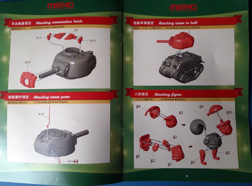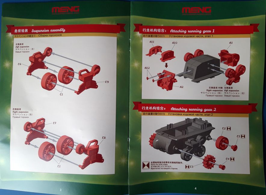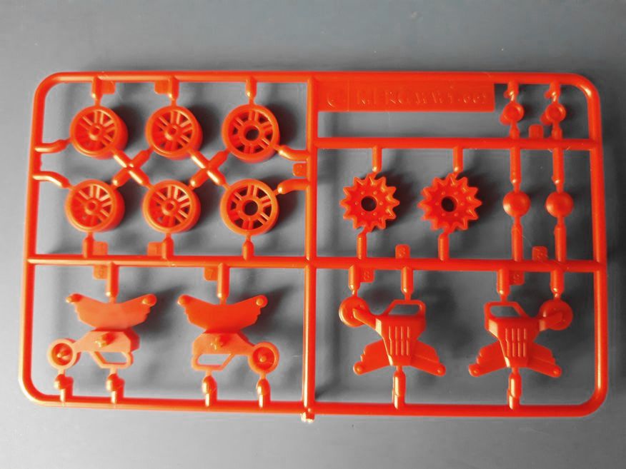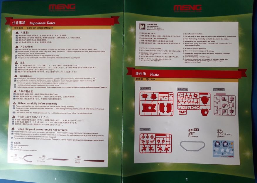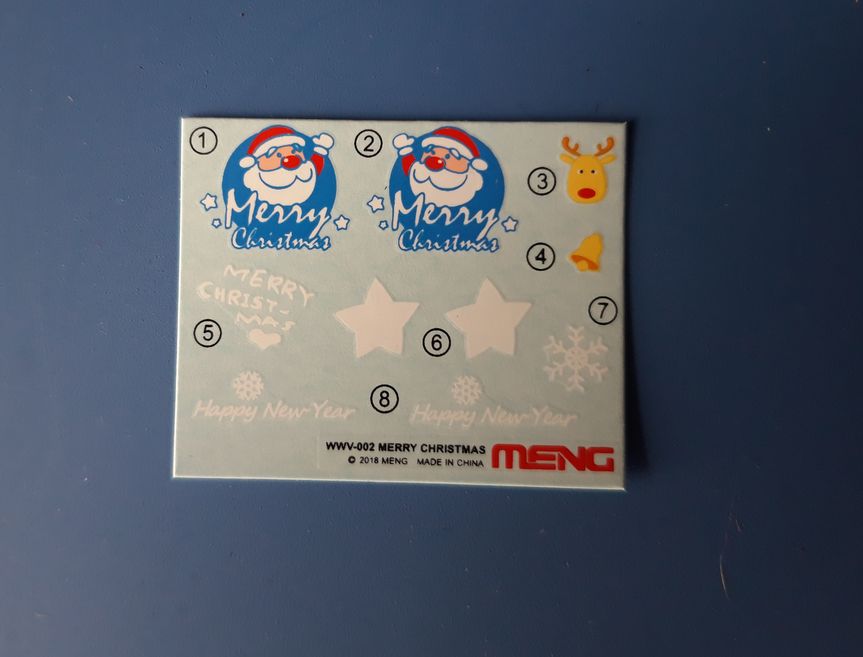 Упаковка стандартная для данной серии, отличного качества пластик ядовито красного цвета,модель для сборки без клея,виниловые гусеницы празднично белого цвета,небольшая новогодняя декаль,фигурка Санты Клауса.