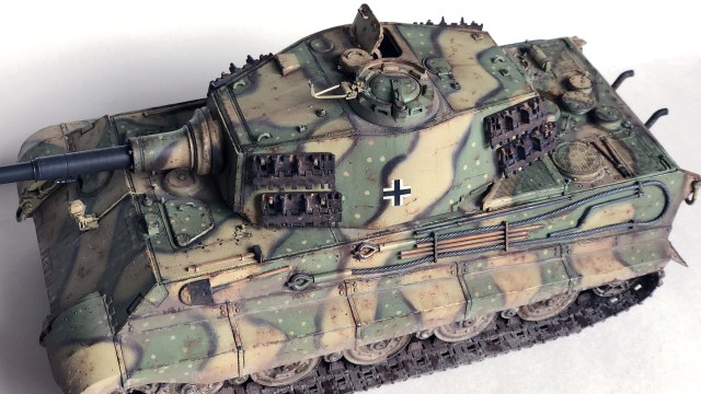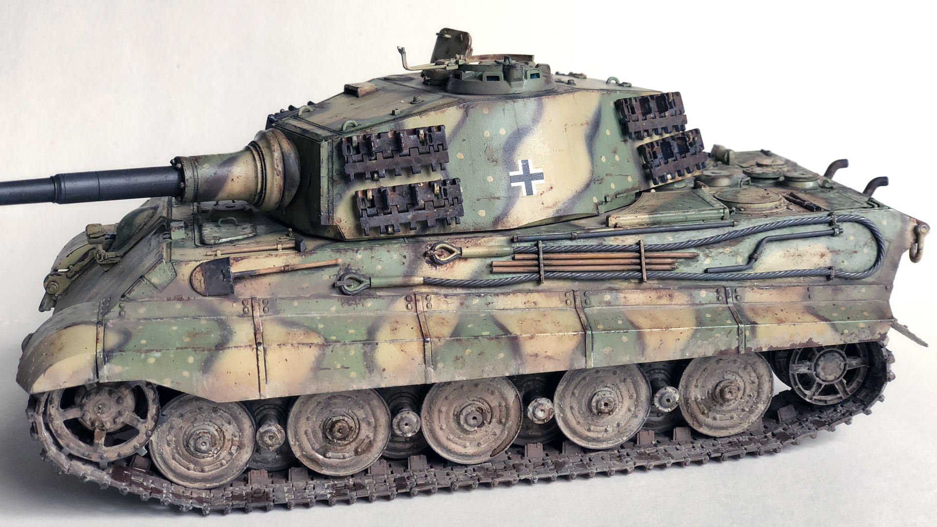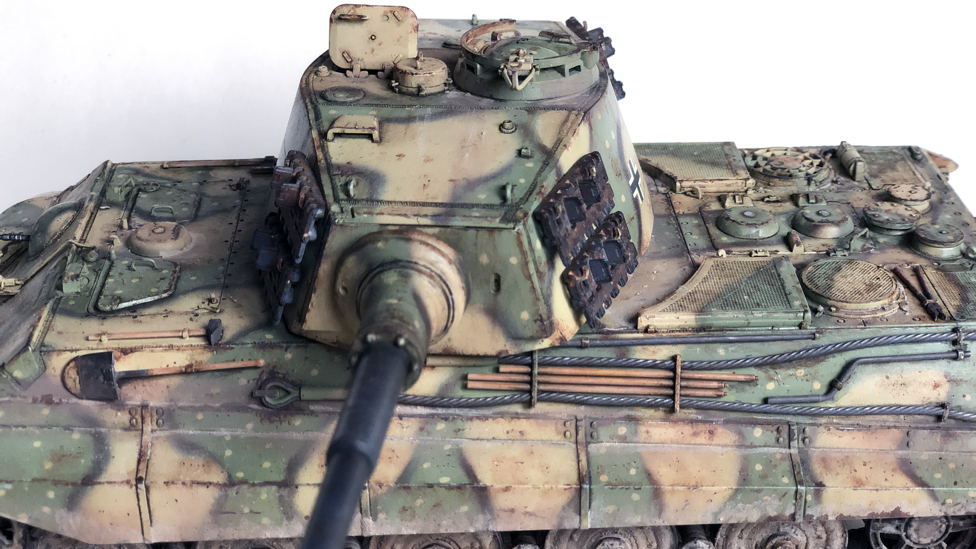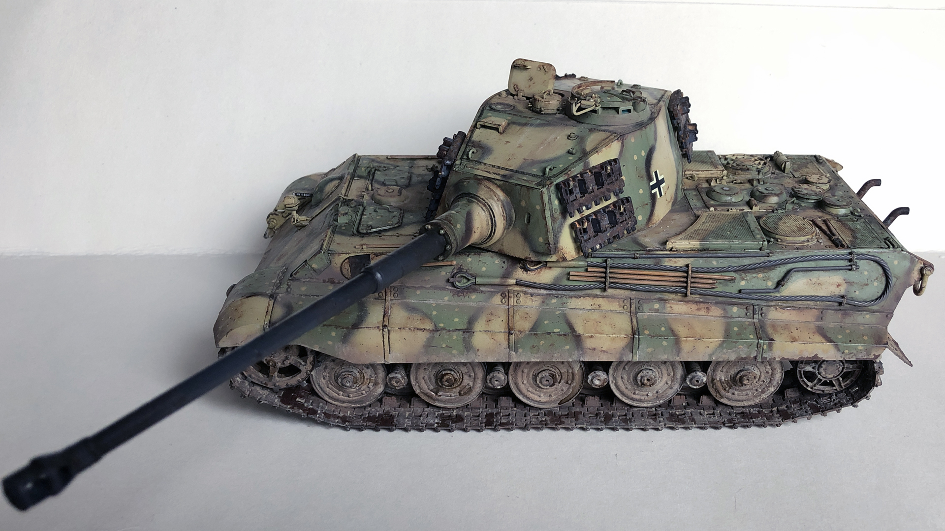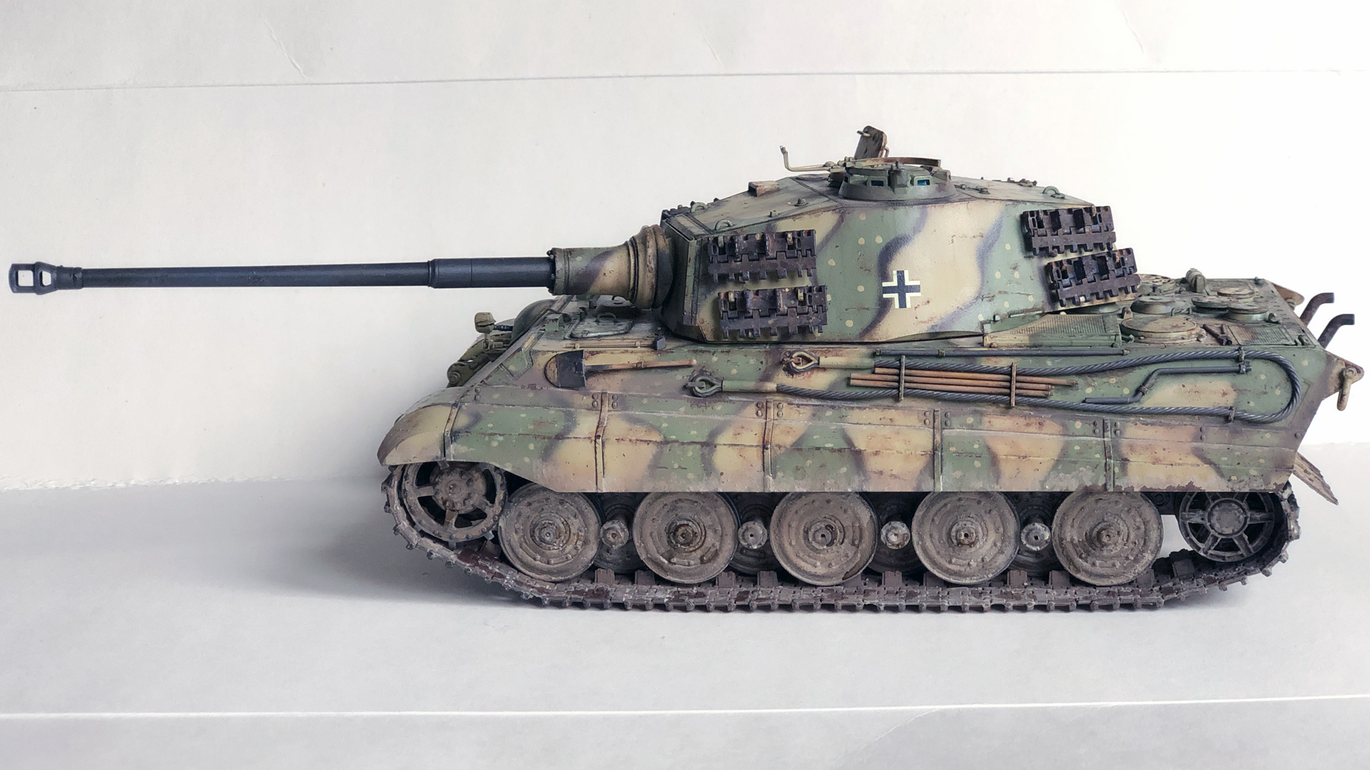 Всем добрый день.Модель фирмы ICM Pz. Kpfw. VI Ausf.B King Tiger (late production). Собиралась "из коробки". Металлический ствол из набора прокачки от Arma Models. От себя добавил провод к передней фаре.Рисунок камуфляжа взят с картинки из просторов интернета (ниже в комментариях она есть) с обложки модели от Таком.Краски Ammo MIG. Тонировка - масло. Эффекты: химия от Ammo MIG и AK.