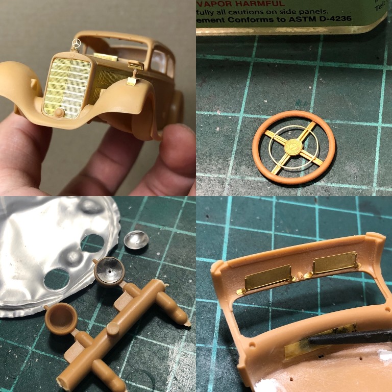 Сам набор весьма интересен, детализация на хорошем уровне. Тем не менее решил его оживить травлением от микродизайна мд035249 и мд035250. Вариант сборки и окраса-собирательный образ, привязки к конкретному варианту нет. Для более удобного просмотра внутренности салона мягкий верх выбрал в открытом положении "открыл" передние окна. Для большей зрелищности лобовое стекло сделал в открытом положении. Окрашивал акрилом тамия немецким серым, фильтры от миг Р-421 и Р-240, масляные точки и смывка от тамии.