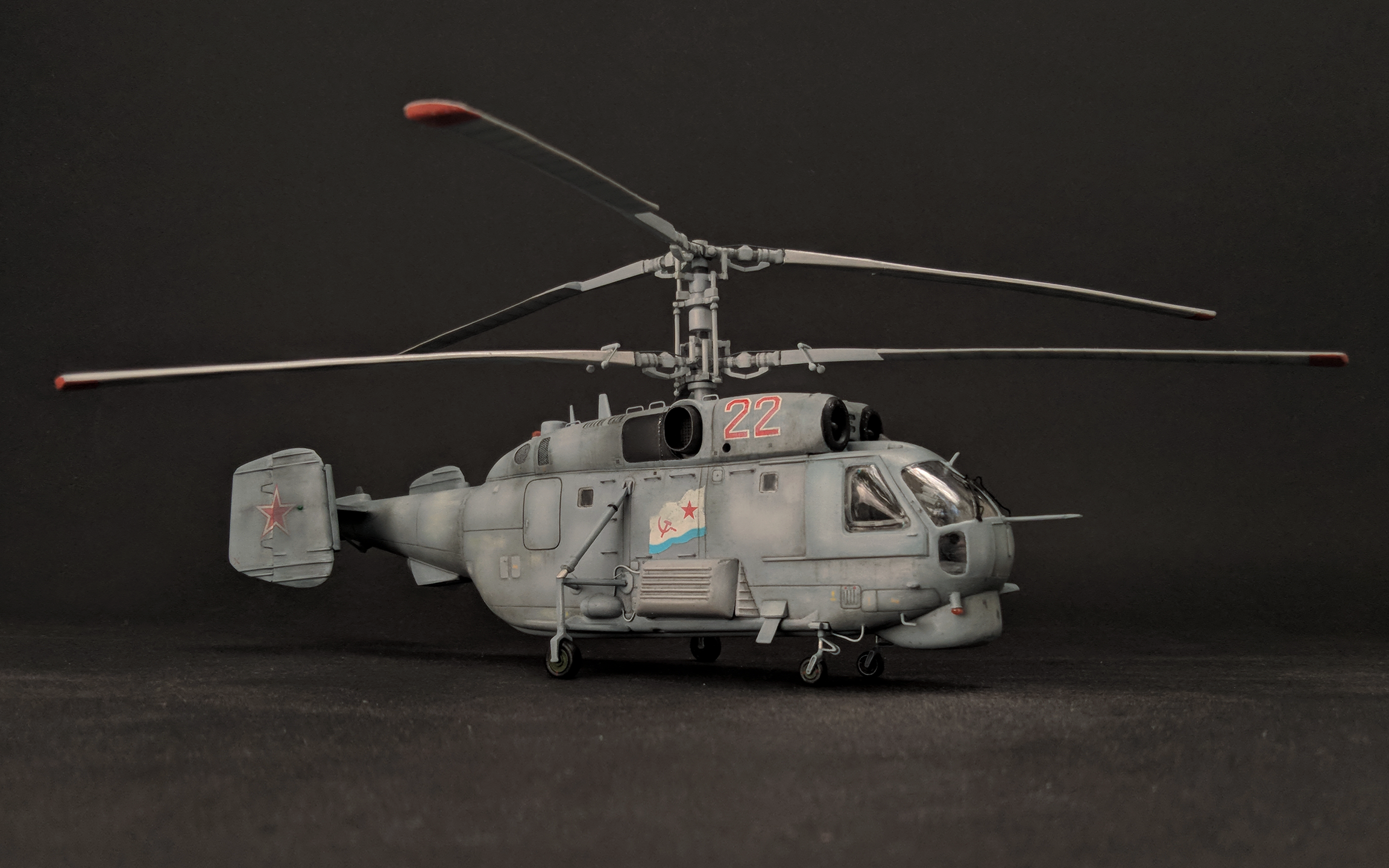 Ненадолго вернулся к вертолётам, и построил это чудо :) Конечно, это не совсем ПЛ, ибо для переделки того, что лежит в коробке Звезды в Ка-27ПЛ нужно приложить куда больше усилий и сделать намного больше доработок. Такой задачи не стояло, поэтому нужно было просто построить модель, разве что с упором на "художку".