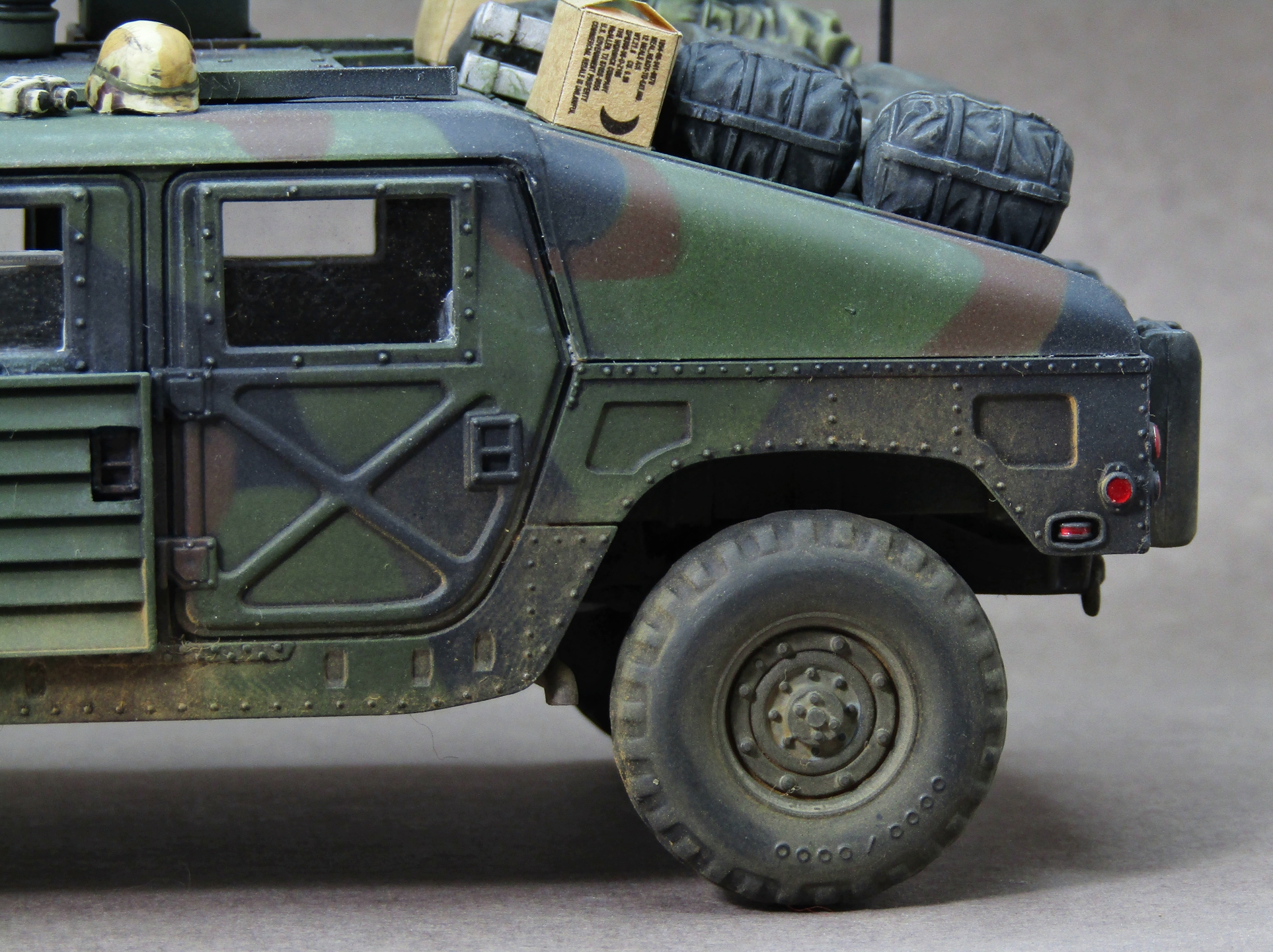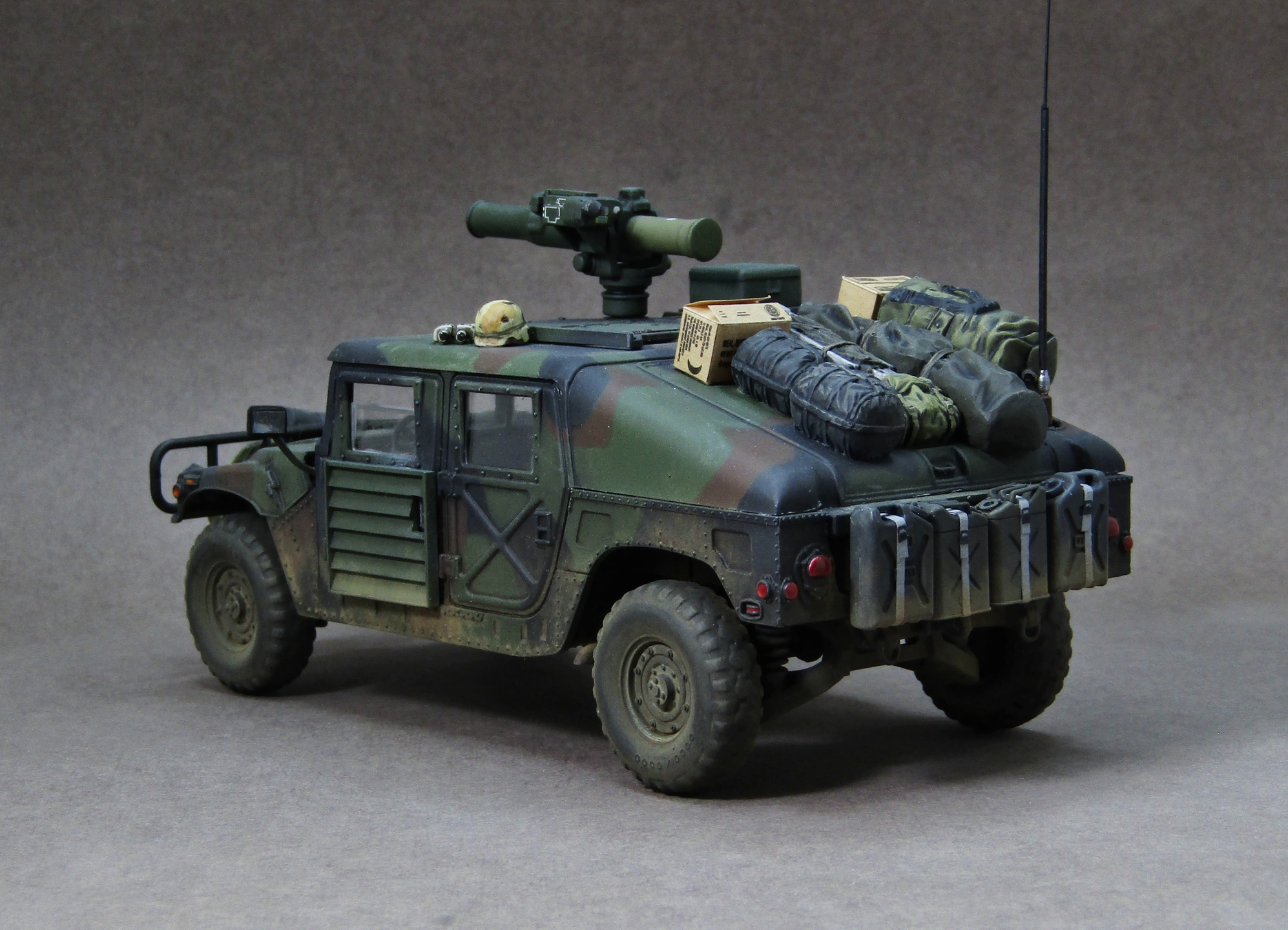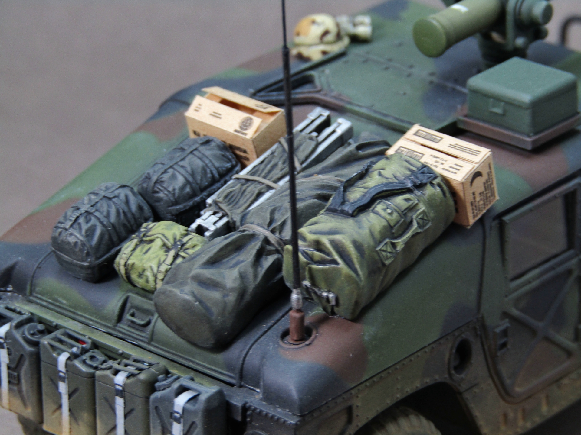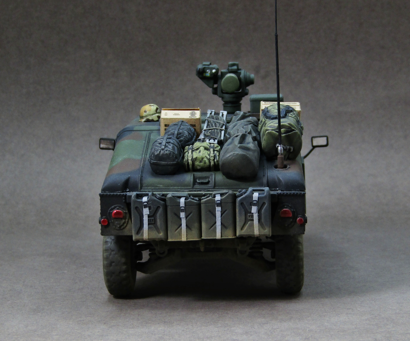 Приветствую коллеги! Представляю на этот раз 35-й масштаб, который захотелось запилить во время изоляции. После сборки автомобиля посмотрел на него и подумал что как-то смотрится чересчур скучновато, поэтому решил "закидать" его прикупленным наборчиком армейского барахла от Тамии. Сам набор от звезды в представлении не нуждается, собирается довольно легко, не понравилась разве что рама (какая-то перекрученная у меня попалась). Грунтовал серой Ганзой 1200, Красил с прешейдингом и патафиксом акрилами от AK (NATO Green, NATO Brown, NATO Black). Данный камуфляж мне давненько хотелось попробовать изобразить, поэтому собственно и взялся за эту работу. Пачкал пигментами Zip maket на Тамиевском разбавителе X-20. Смывал Тамиевской чёрной смывкой. Поворотники, стоп-сигналы и светоотражатели красил витражными лаками. Модель на финише покрывал матовым лаком от revell. Приятного просмотра коллеги...