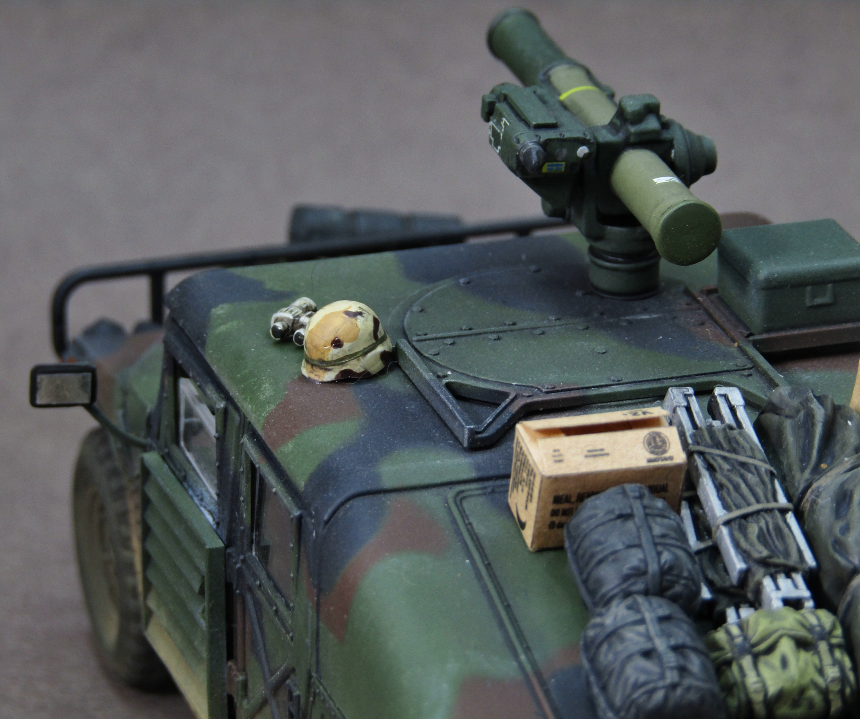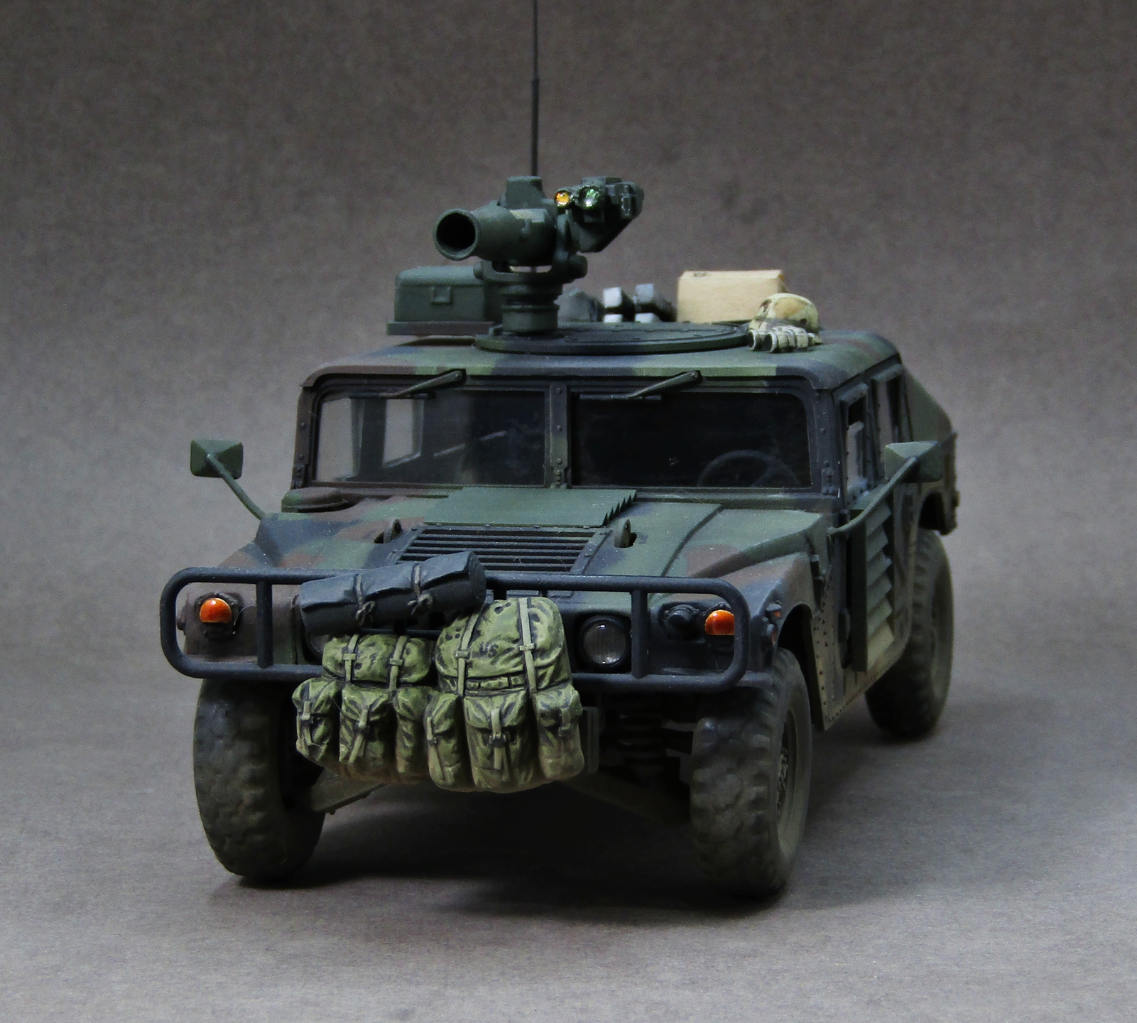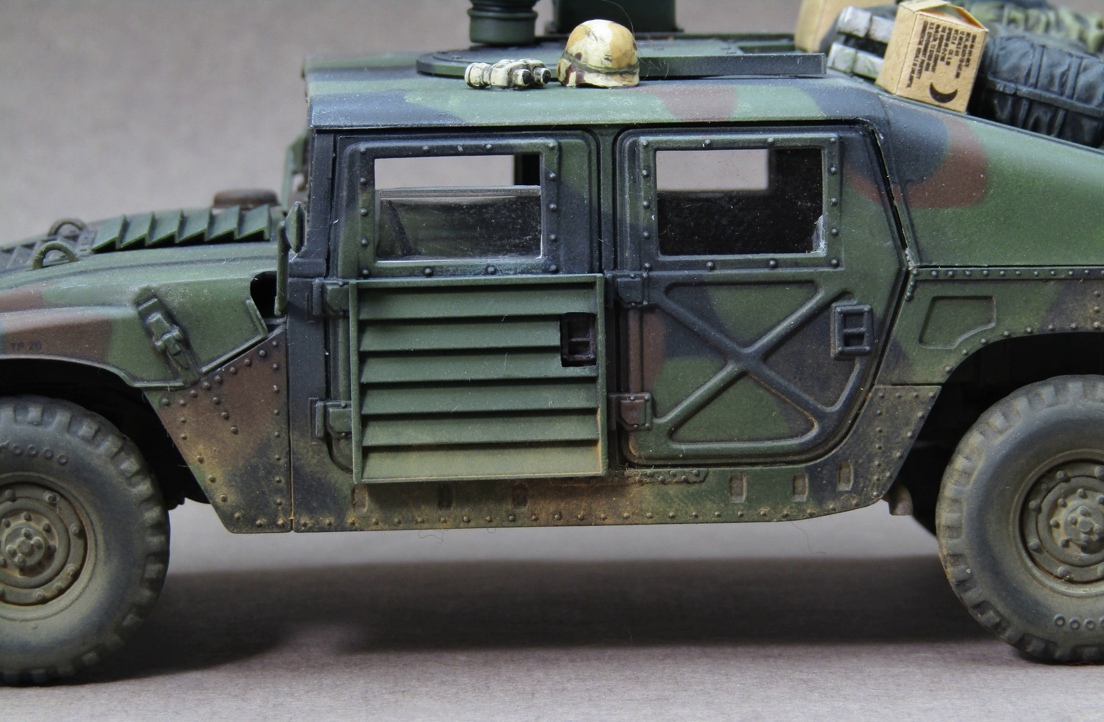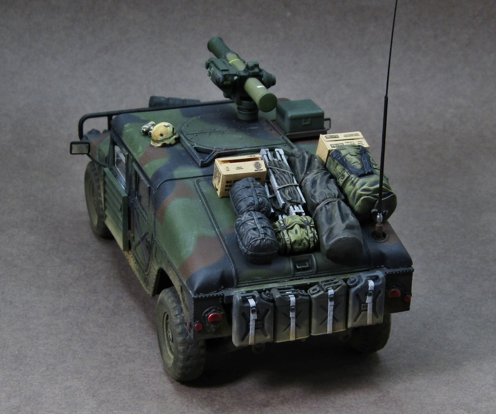 Приветствую коллеги! Представляю на этот раз 35-й масштаб, который захотелось запилить во время изоляции. После сборки автомобиля посмотрел на него и подумал что как-то смотрится чересчур скучновато, поэтому решил "закидать" его прикупленным наборчиком армейского барахла от Тамии. Сам набор от звезды в представлении не нуждается, собирается довольно легко, не понравилась разве что рама (какая-то перекрученная у меня попалась). Грунтовал серой Ганзой 1200, Красил с прешейдингом и патафиксом акрилами от AK (NATO Green, NATO Brown, NATO Black). Данный камуфляж мне давненько хотелось попробовать изобразить, поэтому собственно и взялся за эту работу. Пачкал пигментами Zip maket на Тамиевском разбавителе X-20. Смывал Тамиевской чёрной смывкой. Поворотники, стоп-сигналы и светоотражатели красил витражными лаками. Модель на финише покрывал матовым лаком от revell. Приятного просмотра коллеги...