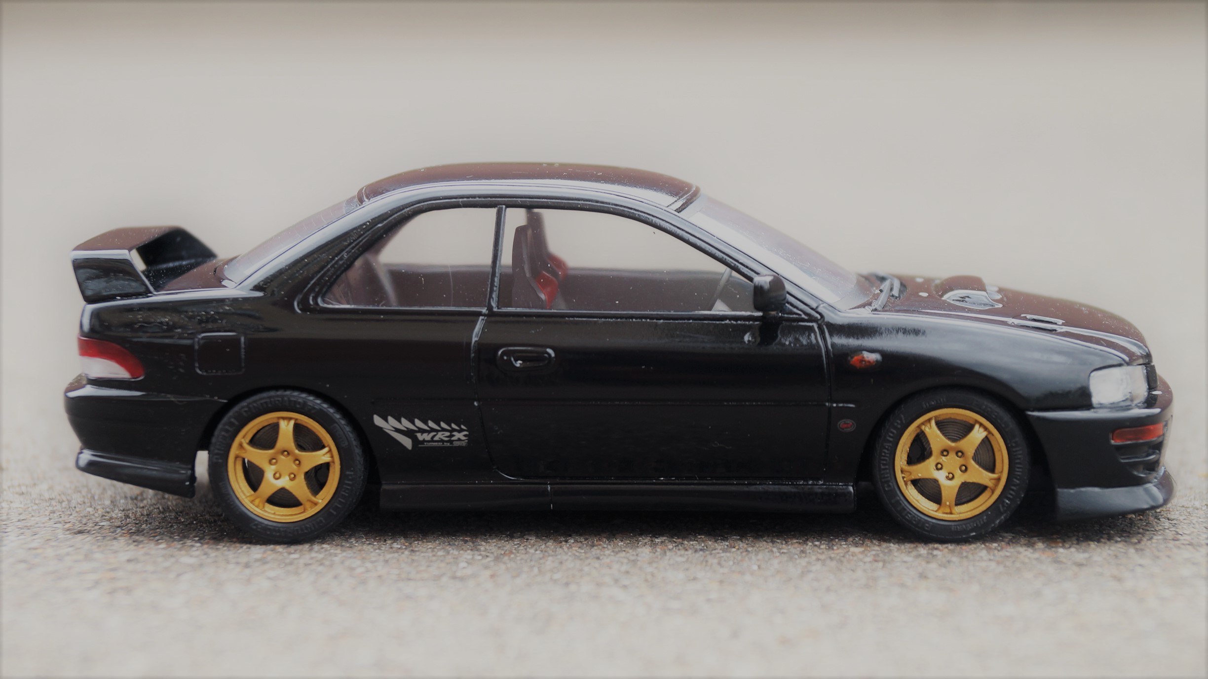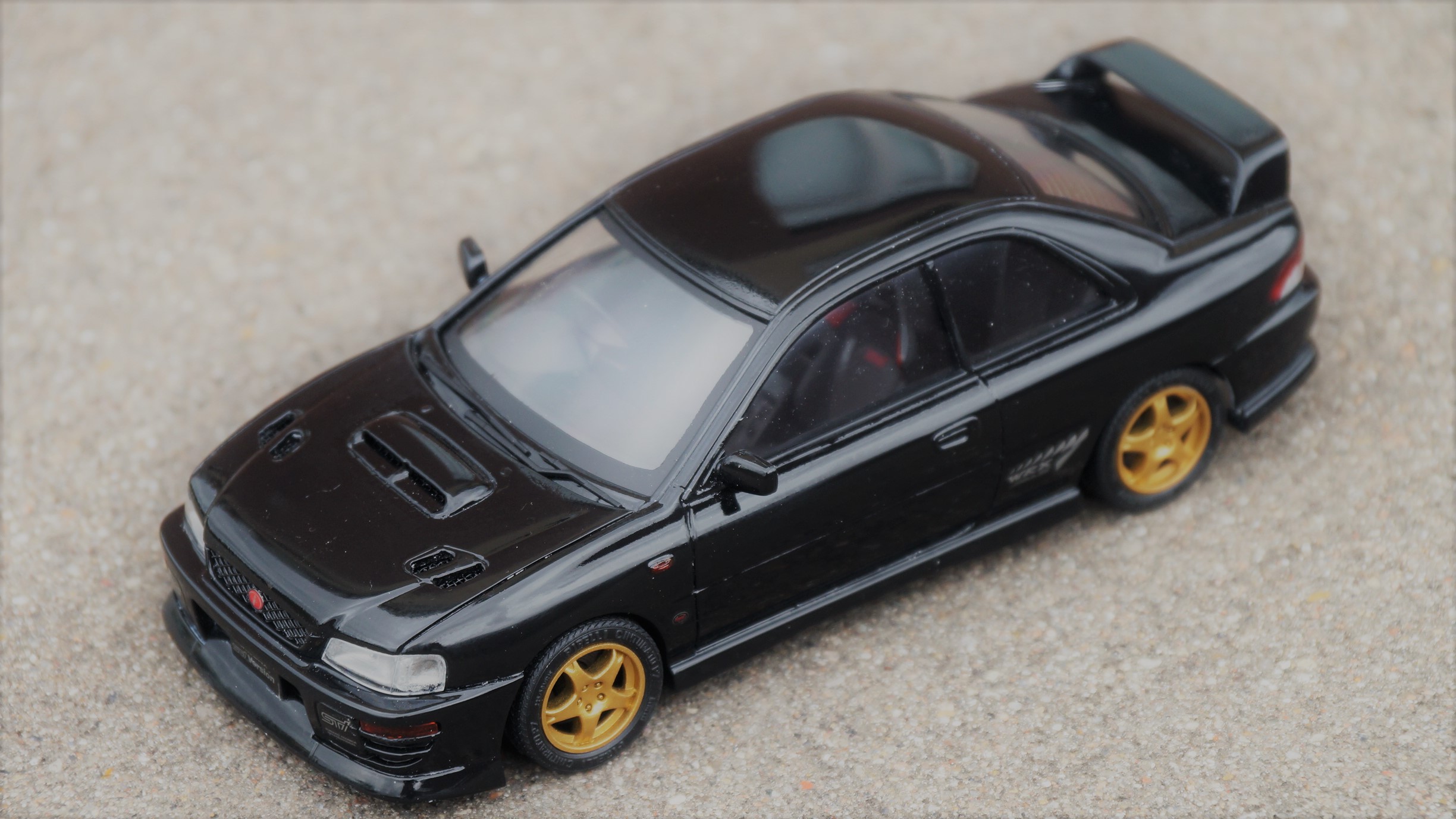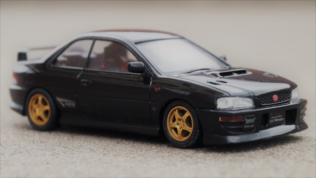 Т.е. перед нами первое поколение знаменитого заряженного автомобиля WRX STi, лимитированная версия Type-R, выпускавшаяся с 1997 по 1998 год (было выпущено 2999 автомобилей).