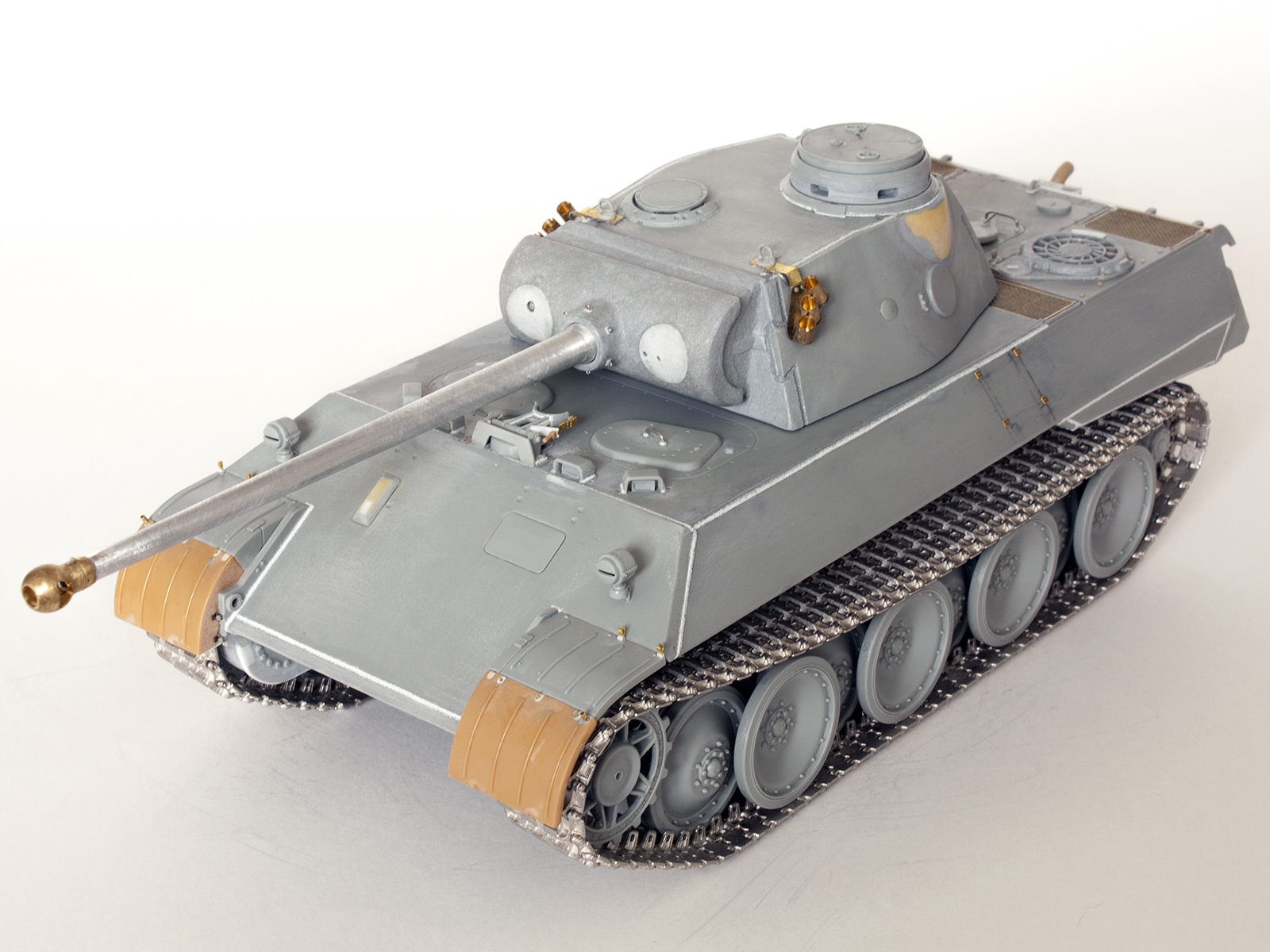 - VBS0504 Voyager Model WWII German KwK42 L/70 Gun Barrel Test Type (Panther D V2, VK3002, TIGER I H2) – точёный ствол с однокамерным дульным тормозом для прототипов танков «Пантера» и «Тигра» с башней для 7,5 см пушки – добротное изделие, претензий не возникло;
