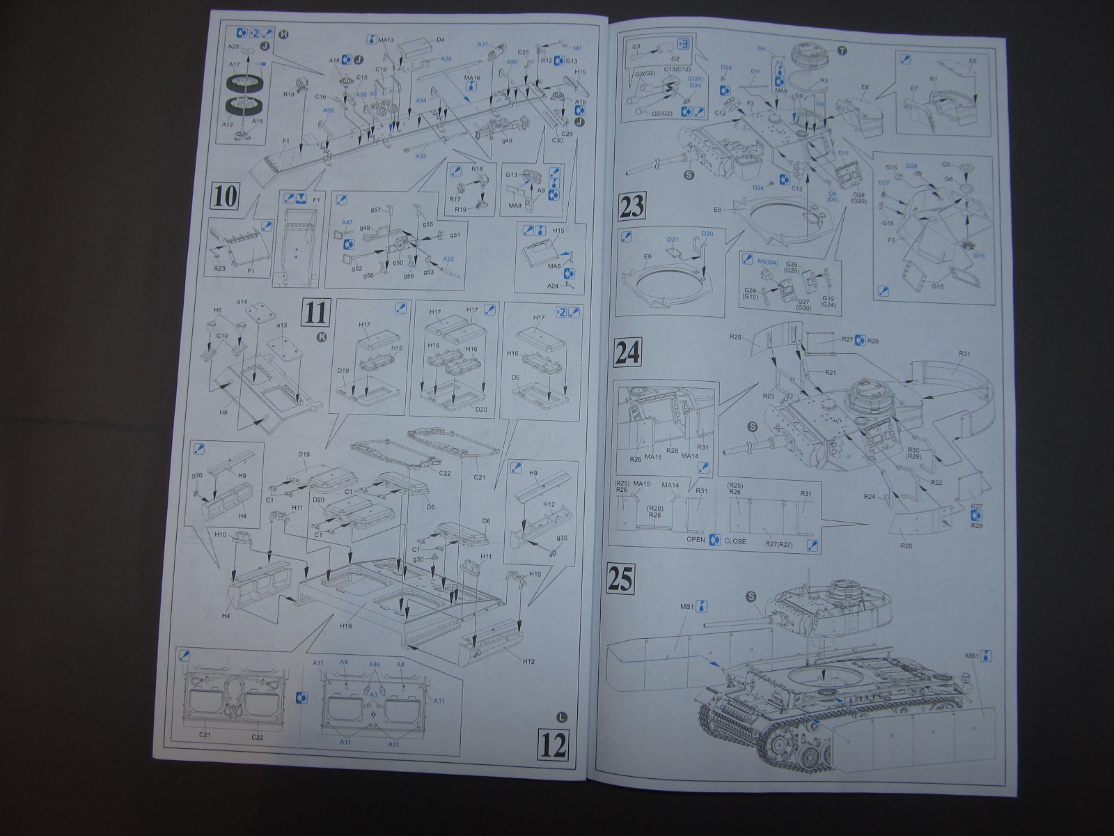 Инструкция информативна и понятна. Опять же судя по инструкции, после сборки танка останется довольно немало полезных зап.частей. Дается семь вариантов окраски с типами нанесения камуфляжа и нанесения тактических знаков: шесть вариантов окраски машины, применительно к Курской битве (3-й полк 2 ТД; 3 ПГД "Totenkopf"- 2 варианта; 1 ПГД "LAH" ; 6 ТД; 4 полк 11 ТД) и один вариант машины неопознанного подразделения применительно к Сицилии 1943 года.