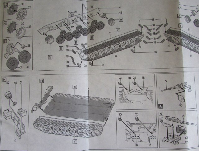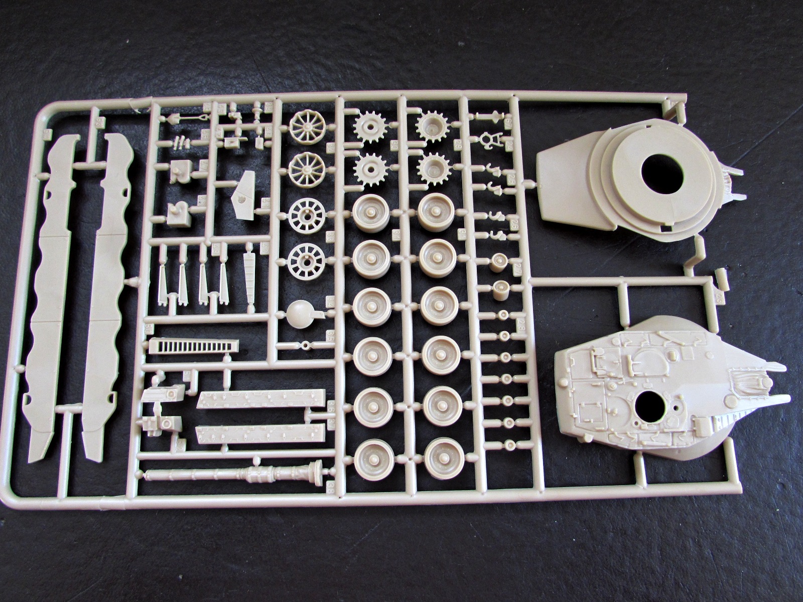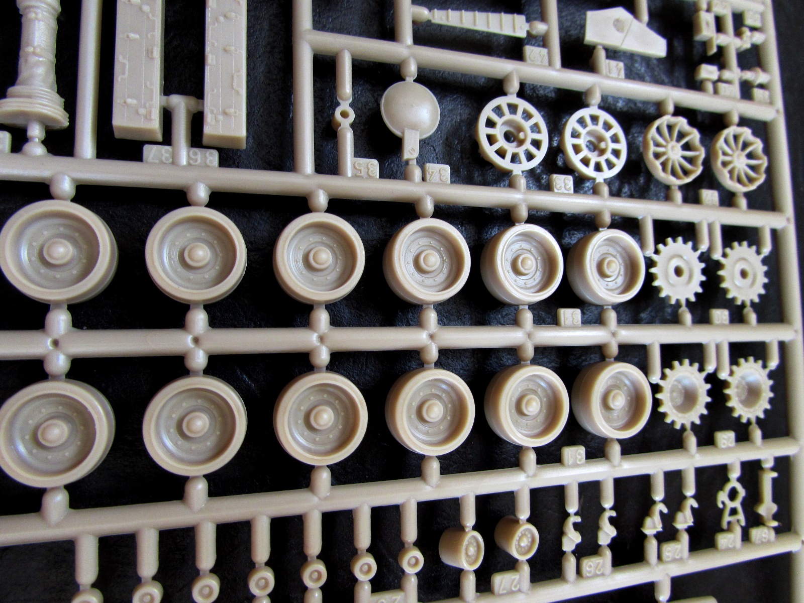 Явно самая слабая часть модели. Во-первых, катки даны традиционно для моделей послевоенной БТТ от этой фирмы отвратно - одной деталью. Менять их на Григорова или Ревелл просто необходимо.
