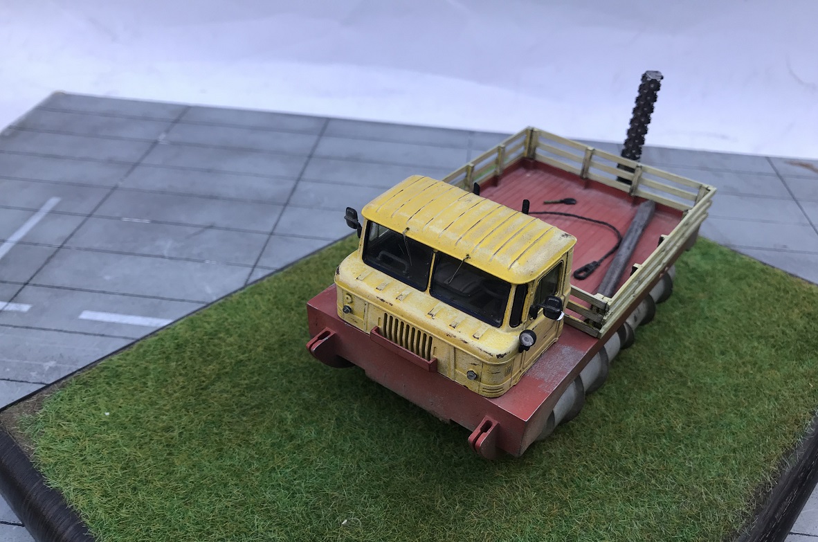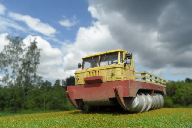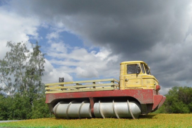 Еще одна новинка от AVD Models- шнекоход ледорез . Модель полностью отлита из смолы, но так как имеет кабину от Газ 66 часть деталей кабины и остекление взяты из набора Газ, потому отлиты они из пластика. Остекление штатное из пластика. Сборка очень простая,но я перепутал немного и приклеил наоборот задний бурчик, пришлось переклеить), смола почти совсем без облоя.в обще качество порадовало! Приятного просмотра!