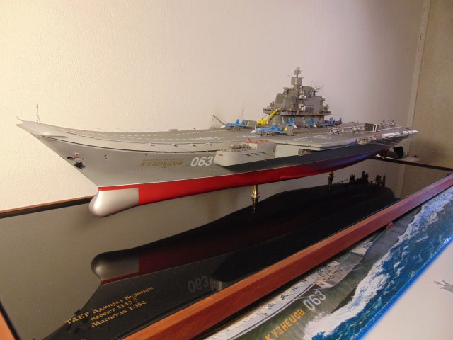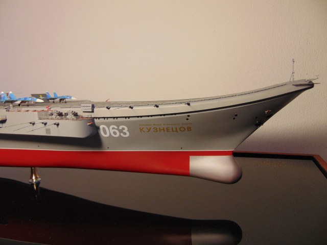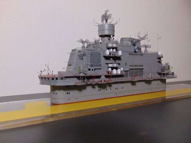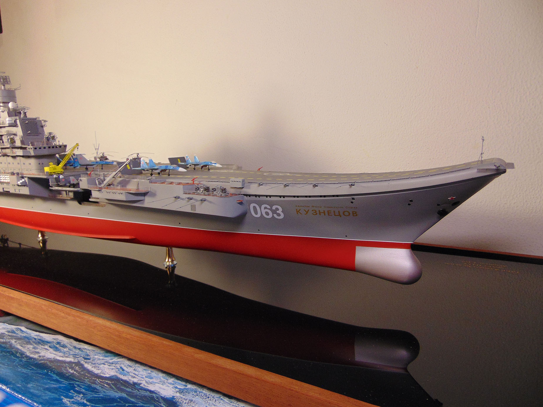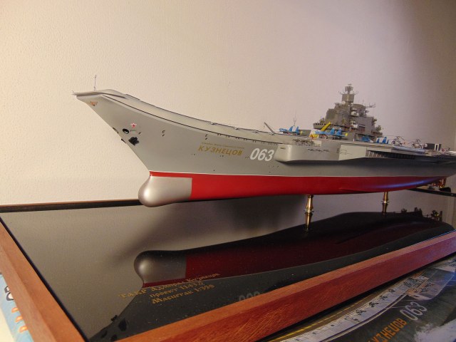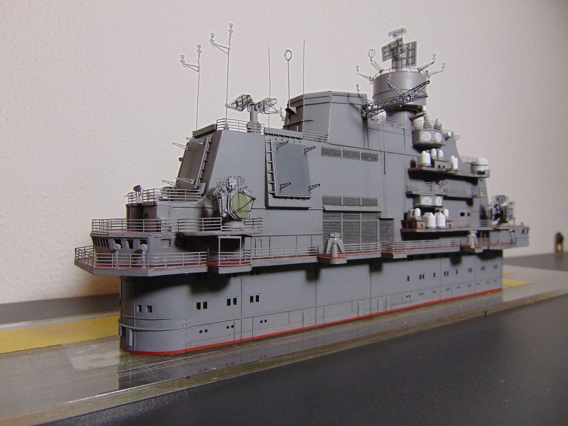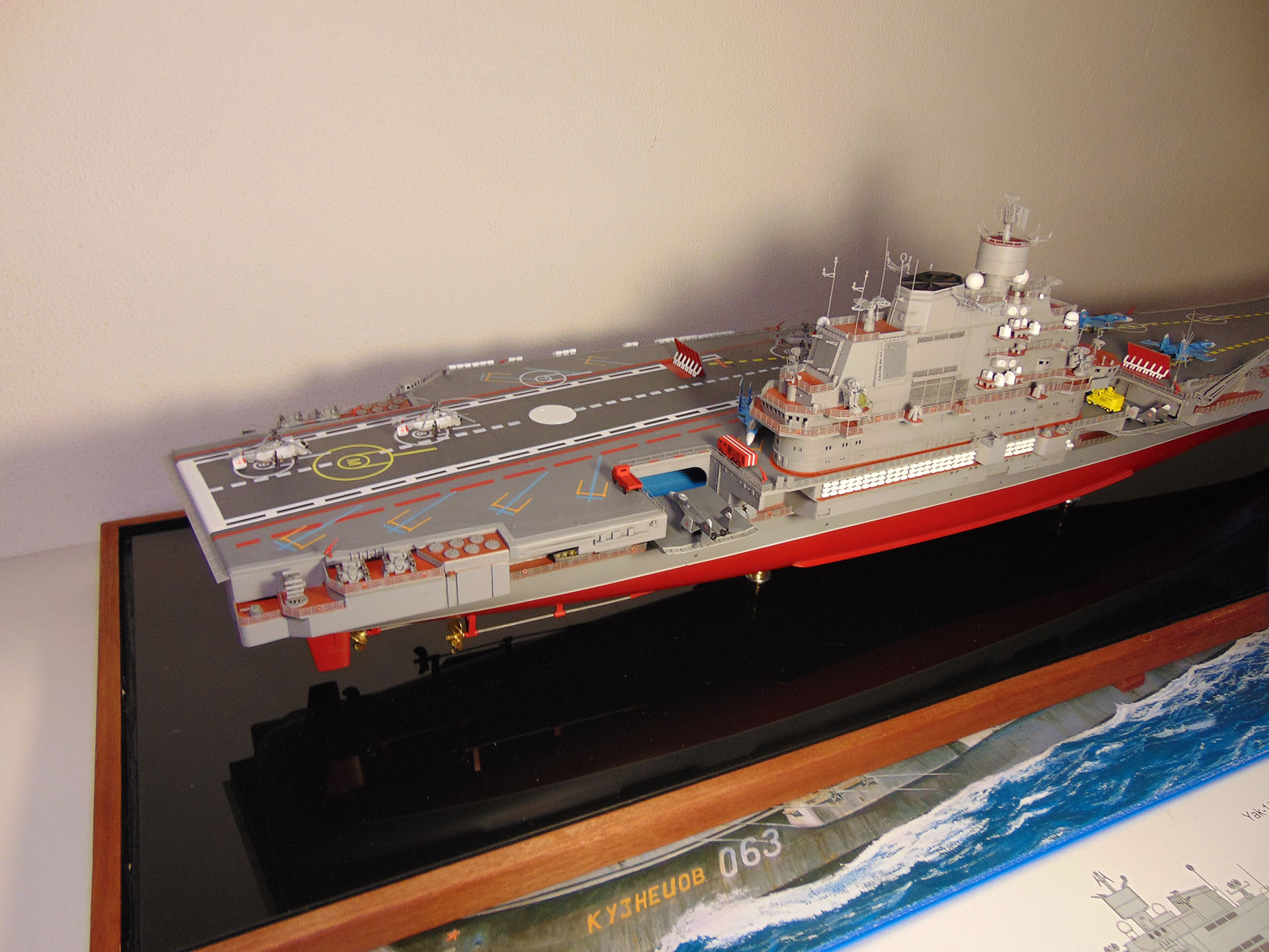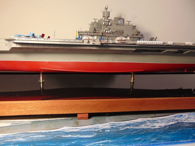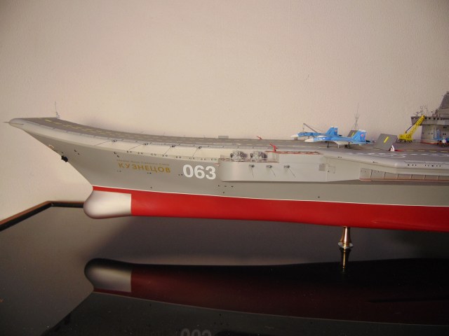 А щели на стыках все равно видны, не хватило шпаклевки значит, вопрос к карабелам - расположение сушек в разные стороны по отношению к острову нормальное явление? Так же готовые к пуску все катапульты тоже сомнительно и тем более открытый щиток перед которым базируются вертолеты мало правдоподобно. В остальном - неплохой экспонатный вариант.