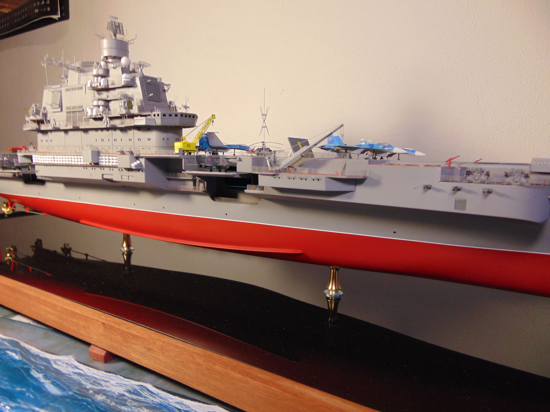 Приветствую всех от души, многоуважаемые коллеги и господа "примкнувшие"!!! Прошу разрешения представить вашему вниманию очередной шАдевр производимый нашими "вирусологами" из "поднебесной" (фирмой "Трубач"...) Тяжелый авианесущий крейсер "Кузькин отец"...Жаль Хрущёв не дожил...(хотя он не любил "авианосцы"..."большую дубинку" империализма.) Шо таки сказать за ту модель??? Если, кто планирует её в перспективе...то сразу запасайтесь шпаклёвкой!! Данный КIТ рекордсмен по щелям и отвратительной стыкуемости!!! Модель делалась почти три месяца, по хорошо проверенной временем, и отлично зарекомендовавшей себя технологической схеме: "ЕСЛИ ХОЧЕШЬ ПОРАБОТАТЬ, ЛЯЖЬ ПОСПИ И ВСЁ ПРОЙДЁТ!!!" (как всё-же чуден мир моделизма....Возьмёшь, бывало аэрограф в одну руку!!! А другой откроешь холодильник, а там "пятишка" холоднющего нефильтрованного пива, а к нему большая миска дальневосточной Корюшки...и "метущаяся" душа сразу вспоминает слова опера Сени Галкина из "Бандитского Петербурга"...-"Ибо слаб человек! И в грехопадении немощен!" Ладно, это так,небольшое лирическое отступление...) Итак: Кроме "ведра" шпакли,краски Ганза,лак то же их...Смывка- Масло+очищенный уайтспирит, Фототравление-"МикроДизайн", Севастополь.Стойки,колпак и подмакетник-самиздат....Пока размещаю в "личных",после нормальной фотосессии,попрошусь в прихожку...Сейчас немного пробных фоток,для "затравки"...Поехали!!!