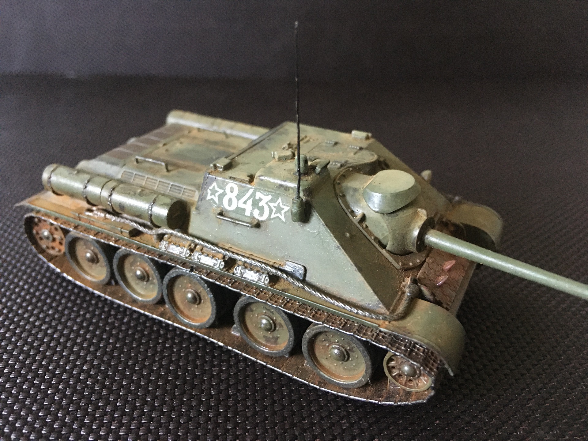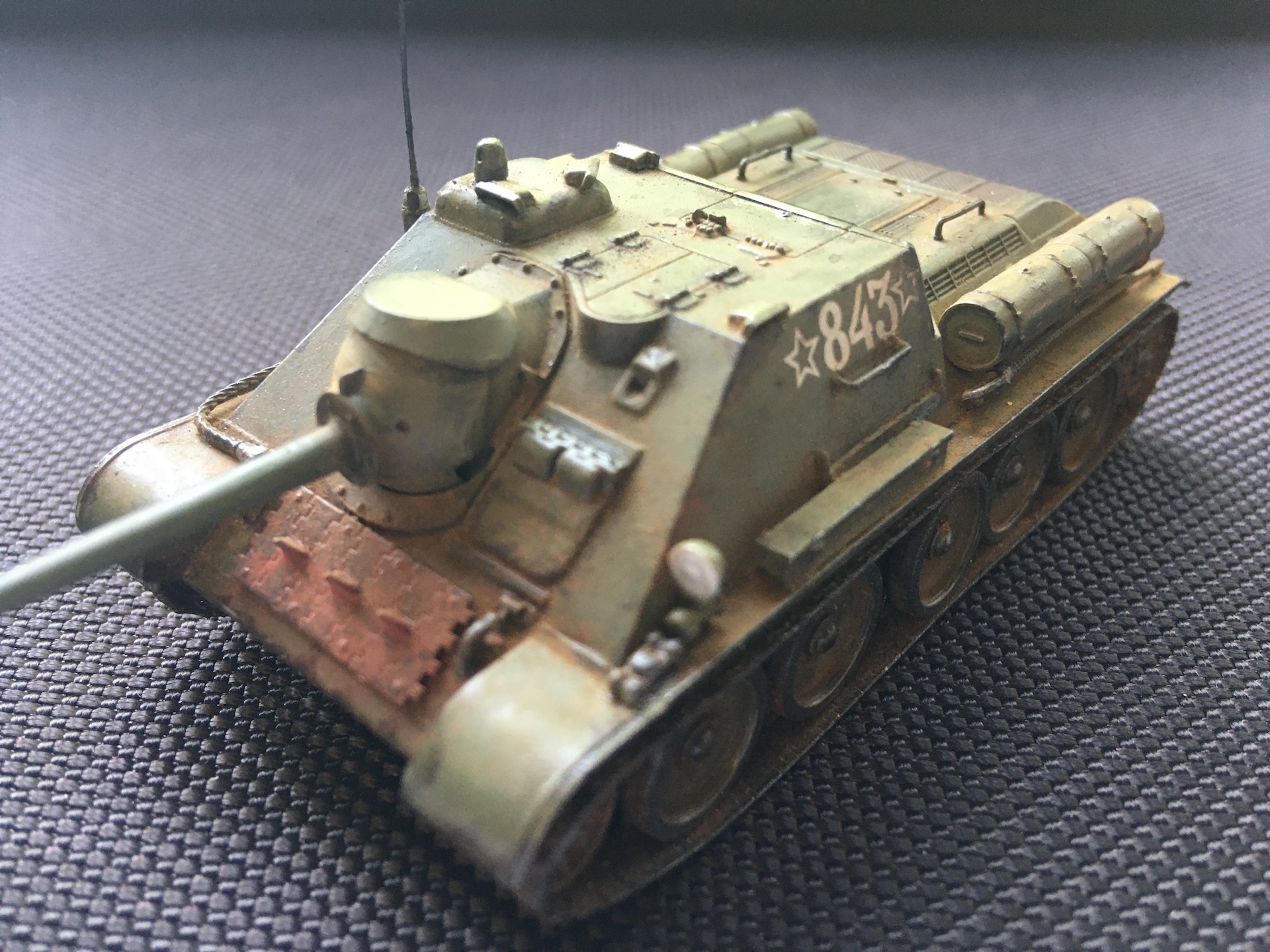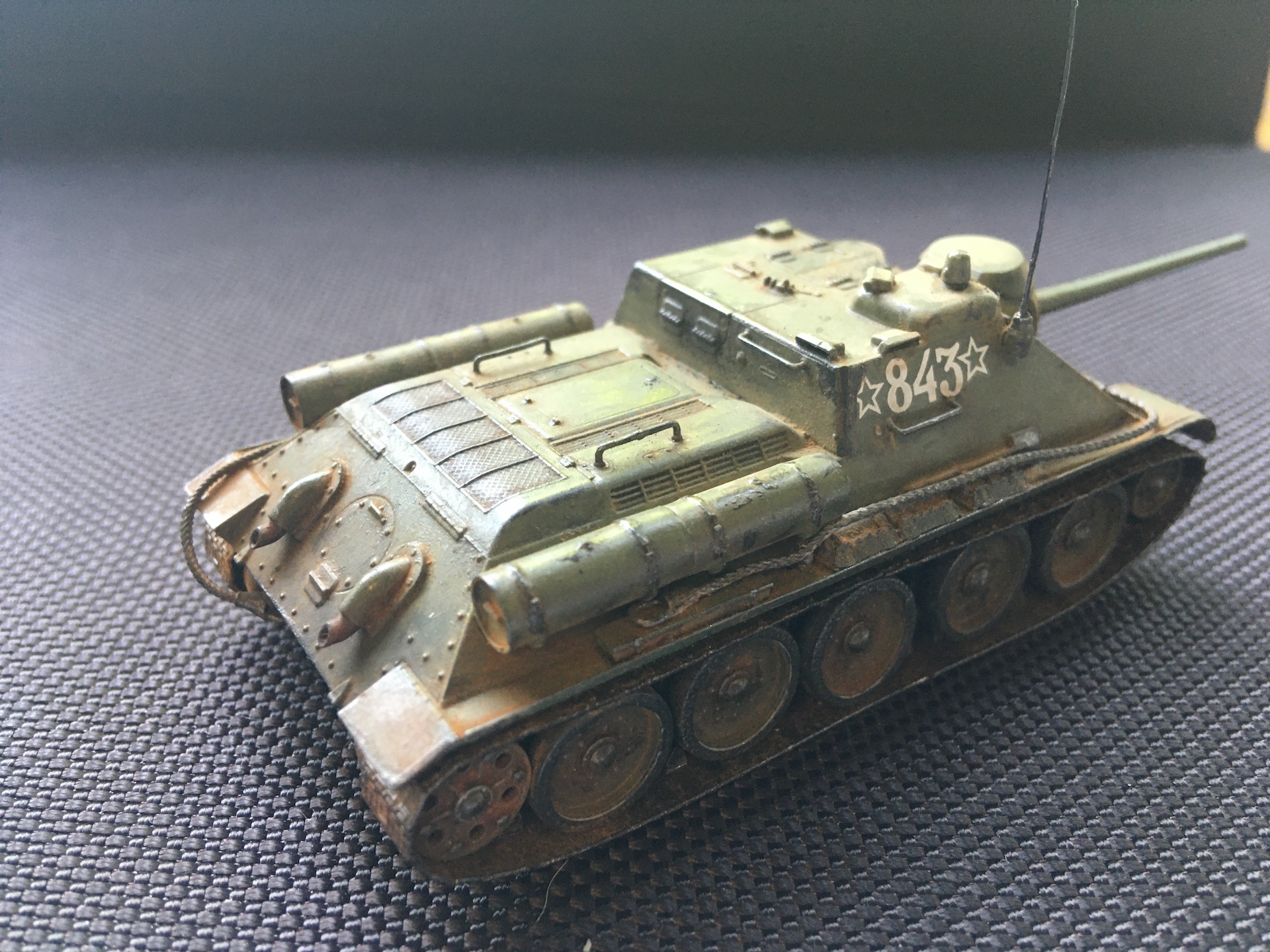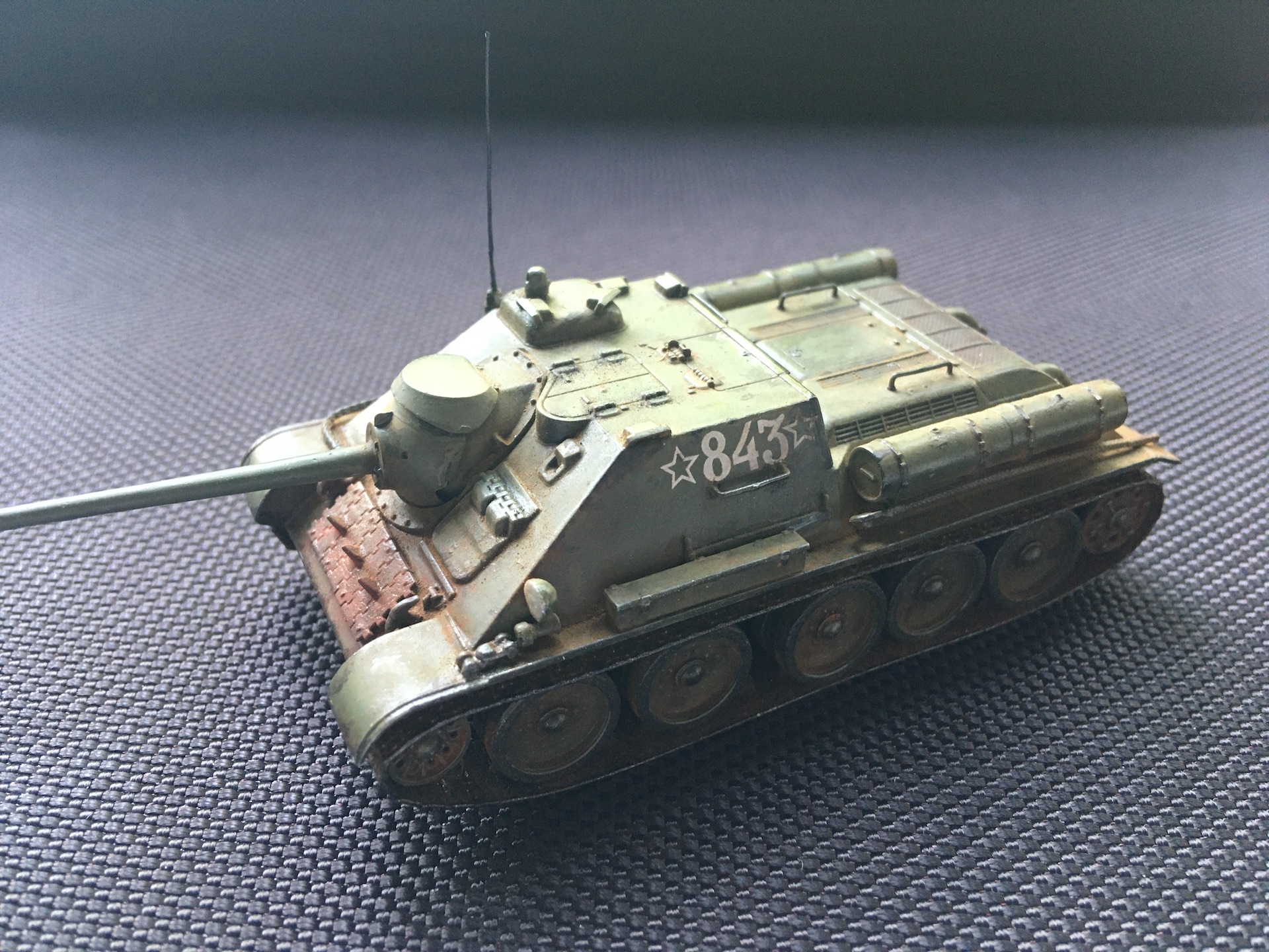 На самом деле она не предполагалась такой ободранной, но после того как неудачно махнул кисточкой на люке МТО пришлось дообдирать до более-менее гармоничного вида.