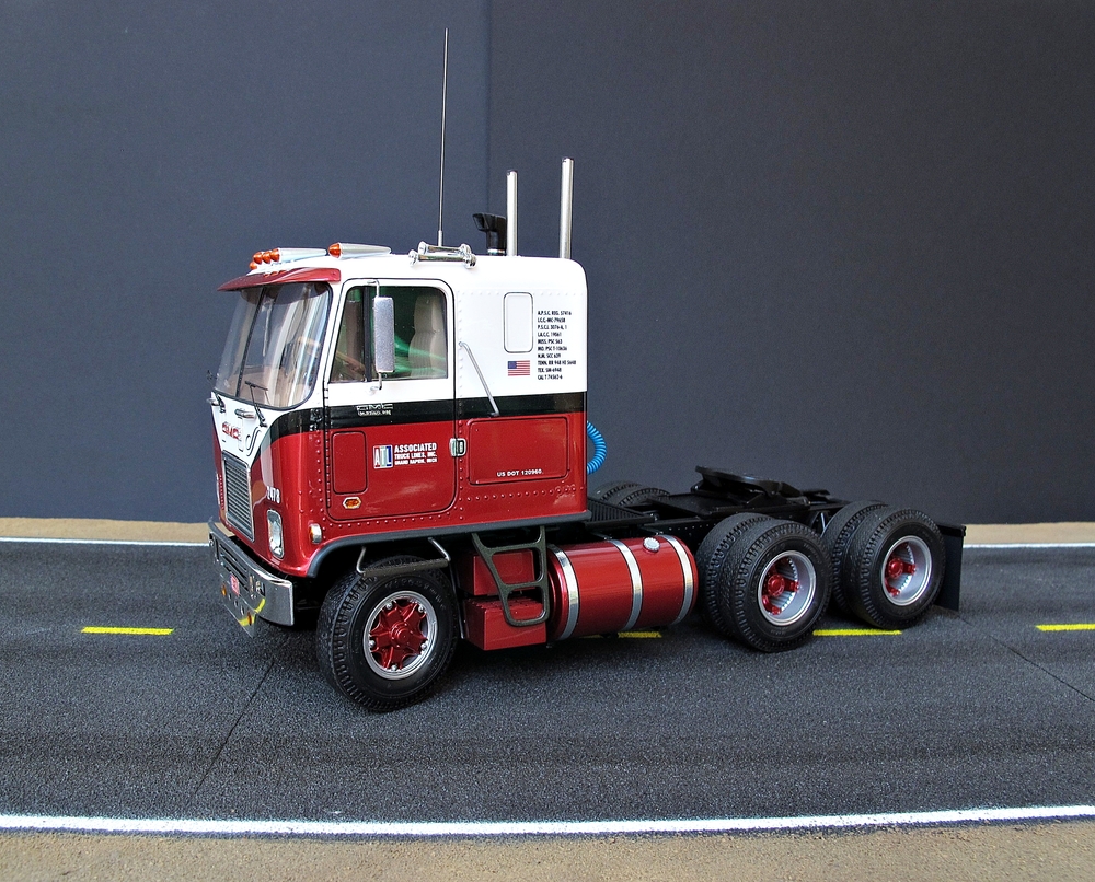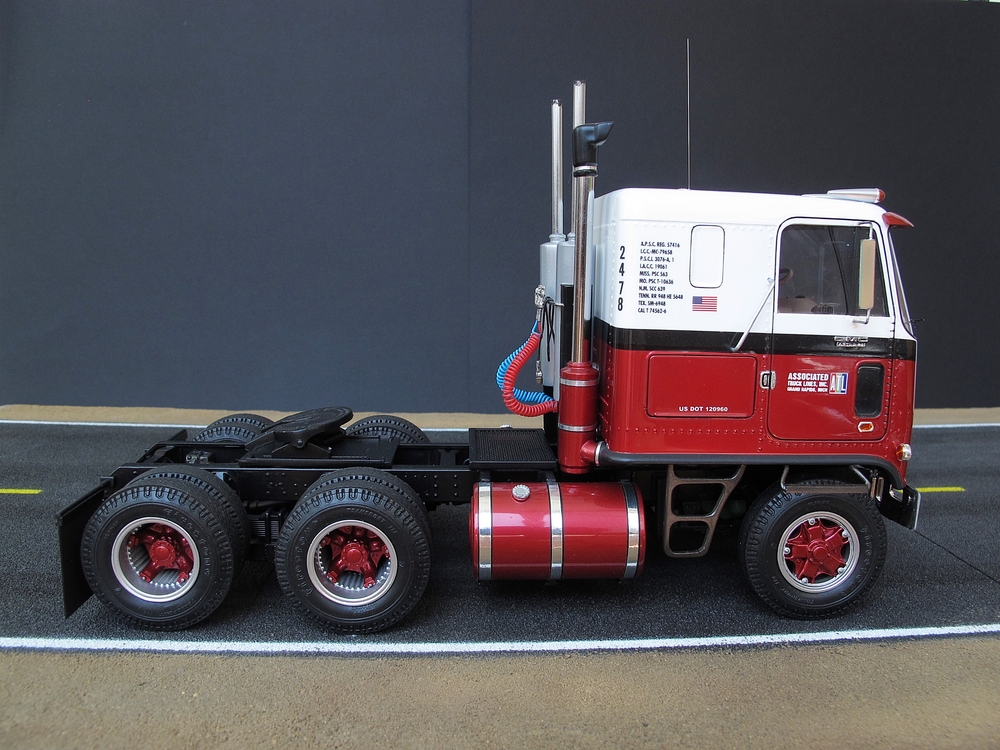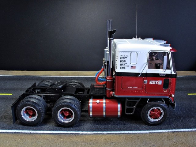 Представляю на ваш суд свою крайнюю работу. GMC Astro 95 от АМТ.Сборка традиционно в основном из коробки ,хотя к АМТ этот термин не очень применим,так как почти каждую деталь приходится в той или иной степени дорабатывать. Из "глобального" сделаны поворотными колеса и опущена на 4 мм кабина(этот момент обсуждается во всем грузовом модельном сообществе и является косяком самого кита).Покраска ,профессиональные авто краски и 2к авто лак.
