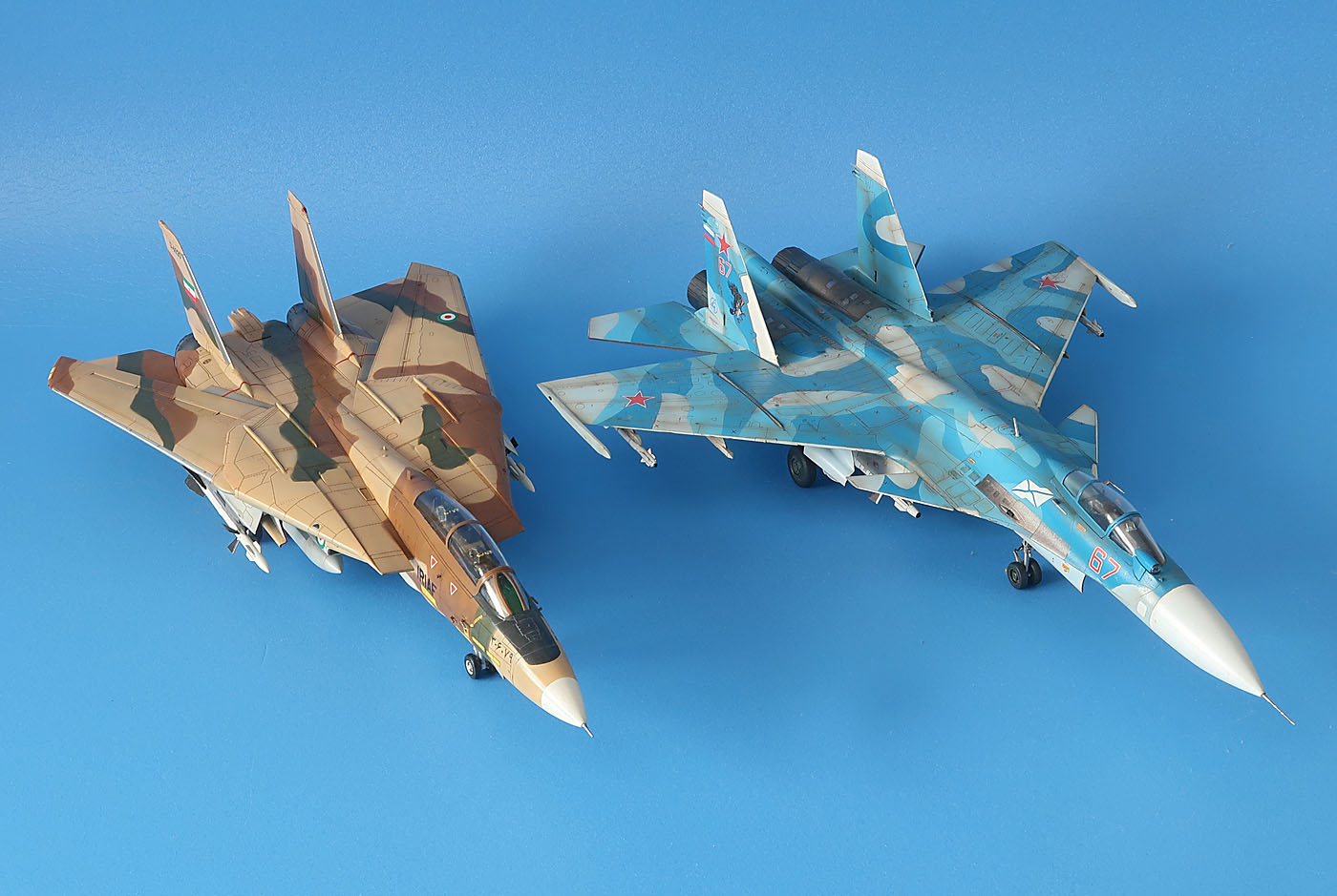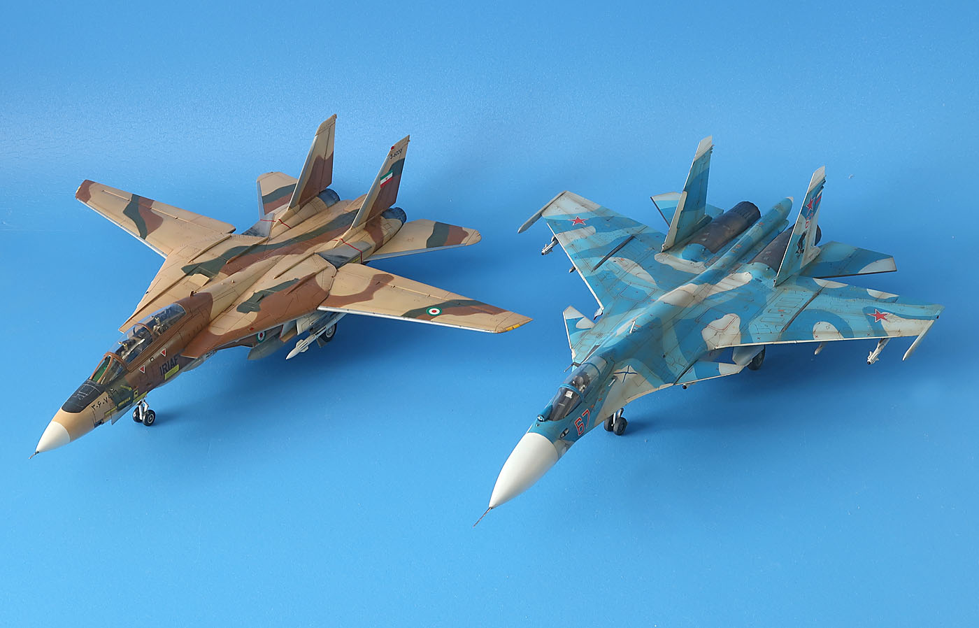 Потому выбрал Иран. Из трех вариантов иранского окраса - выбрал ранний песчаный, причем методом исключения - ибо новый песчаный уж слишком похож на Су-35С , а серо-голубой - близок по оттенкам к прототипу Т-10-11.