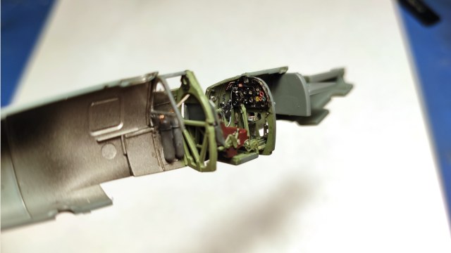Проблем по ходу стройки с набором не возникло никаких. Имея опыт с эдуардовскими FW-190, по подсказке коллег, верхнюю часть крыла сначала приклеивал к фюзеляжу, потому уже нижнюю честь ко всей конструкции. Единственные несколько моментов которые мне не понравились: угол стыковки задней кромки крыла с фюзеляжем, толстовата задняя кромка где закрылки, ступенька которая получается в месте стыковки крышки двигателя и фюзеляжа, перед горловиной бака. В остальном набор выше всяких похвал. Честно говоря после таких моделей не очень хочется возится с расшивкой и накаткой клепки. Постепенно иду на уступки копийности в угоду качеству.