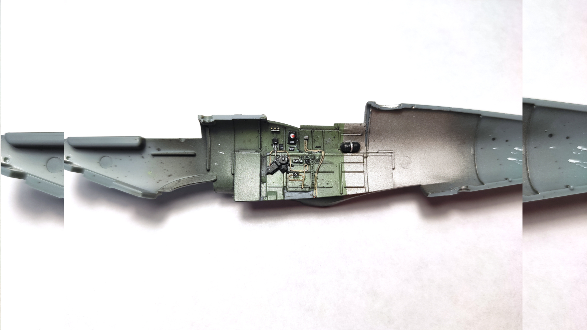 Смывка. Смывка тут черная/коричневая/серая. Плюс продолжил понравившуюся мне на прошлом FW тему с выделением заклёпок местами светлой смывкой. Получается эффект вытертых заклёпок, что очень оживляет модель.