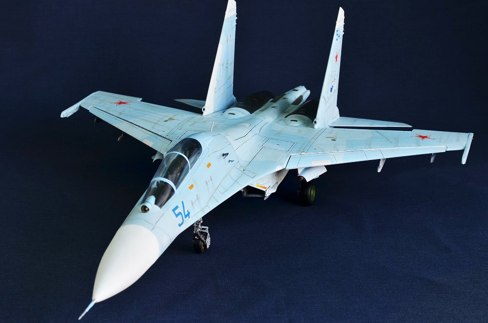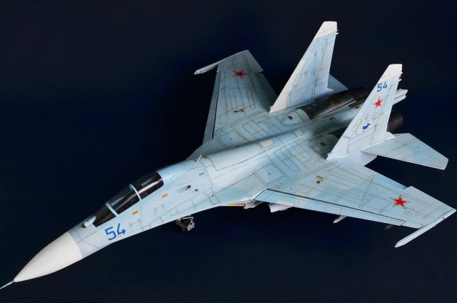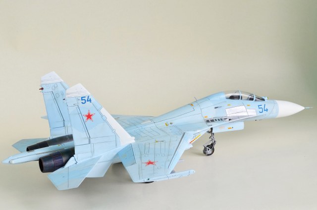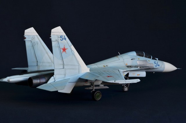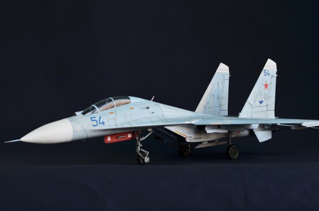 Уже не охота было на нем ничего делать ,в свете выхода линейки моделей Су-27 от G.W.H. , собрал так чтоб коробочка больше не лежала !