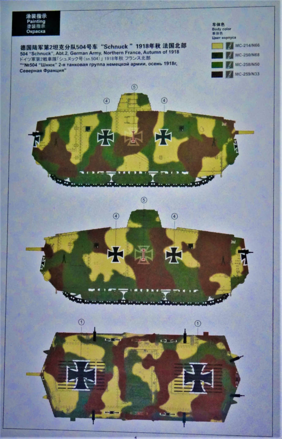 Отпечатана в черно-белом варианте в виде книжечки на 4 языках, в том числе и на русском!!. Инструкция содержит достаточно подробную и объемную историческую справку о танке. Т.к. модель подразумевает наличие полной внутрянки, инструкция показывает подробно все этапы сборки и покраски деталей, что очень удобно и правильно. Как не казалась бы эта модель простой на первый взгляд (сарай на гусеницах), после изучения инструкции я понял, что это далеко не так, одна ходовка чего стоит!? И представляет из себя какой то страшный агрегат сумрачного гения!)) Поэтому модель точно не для начинающих моделистов!